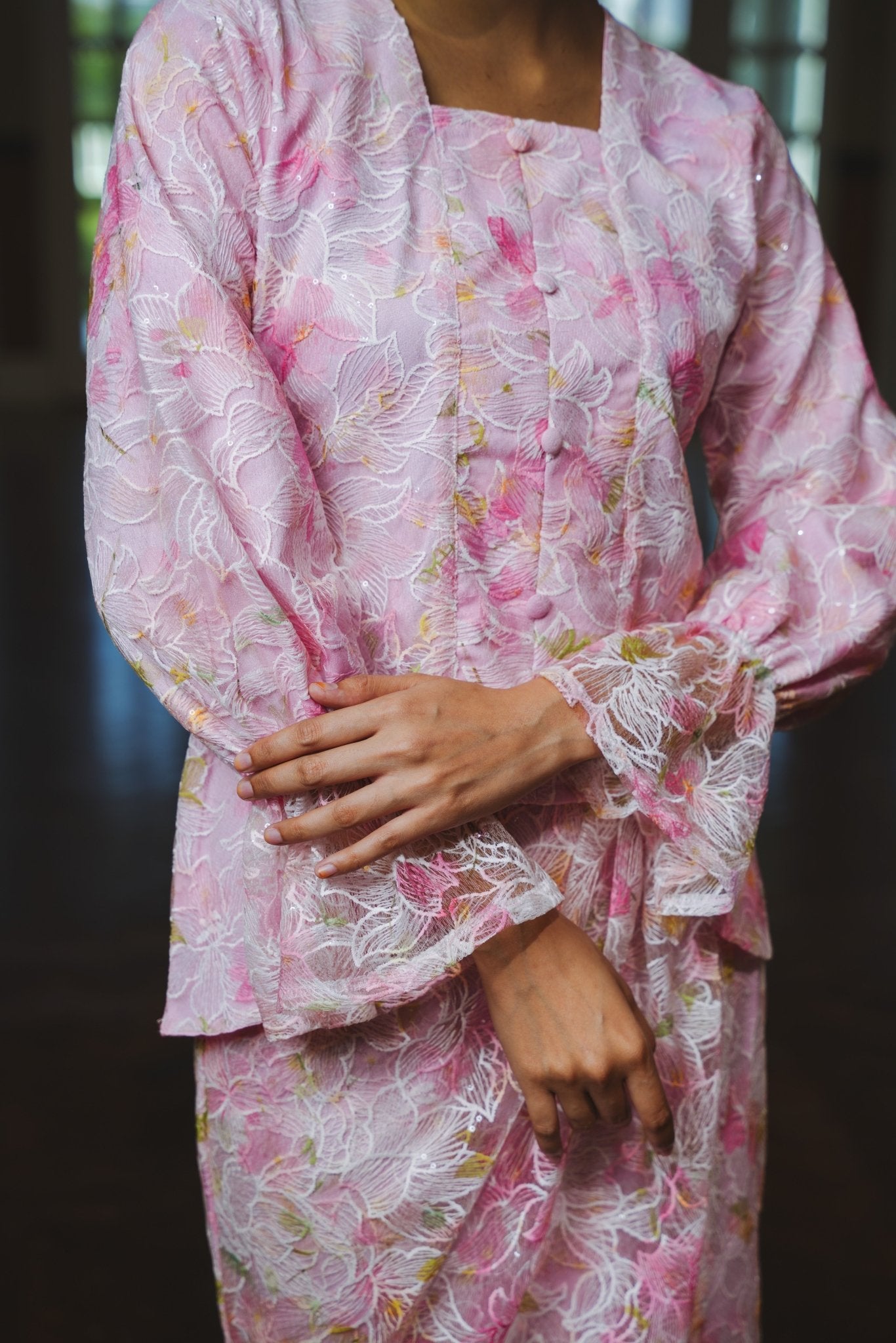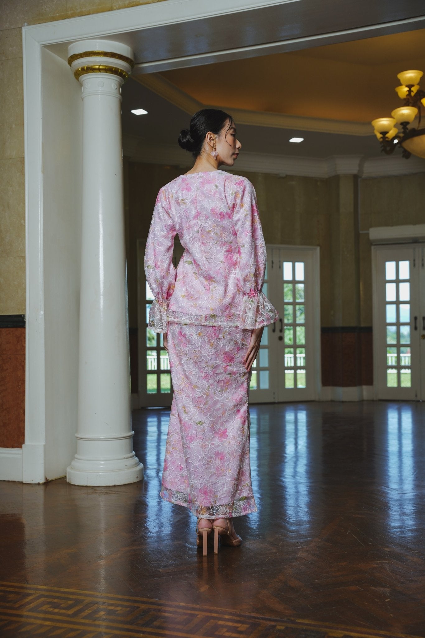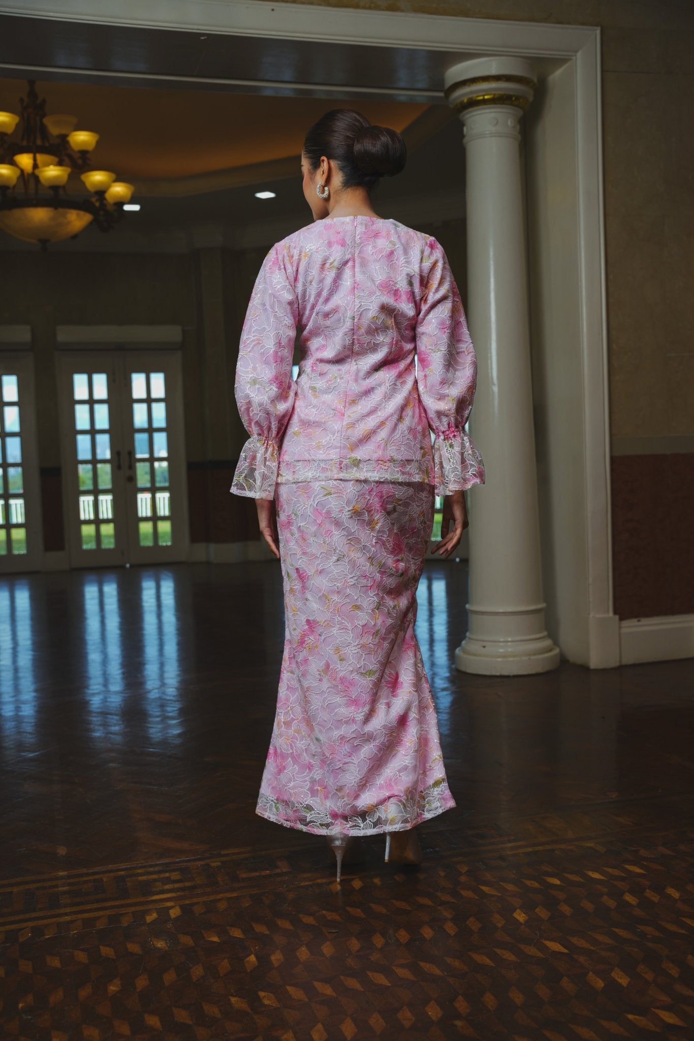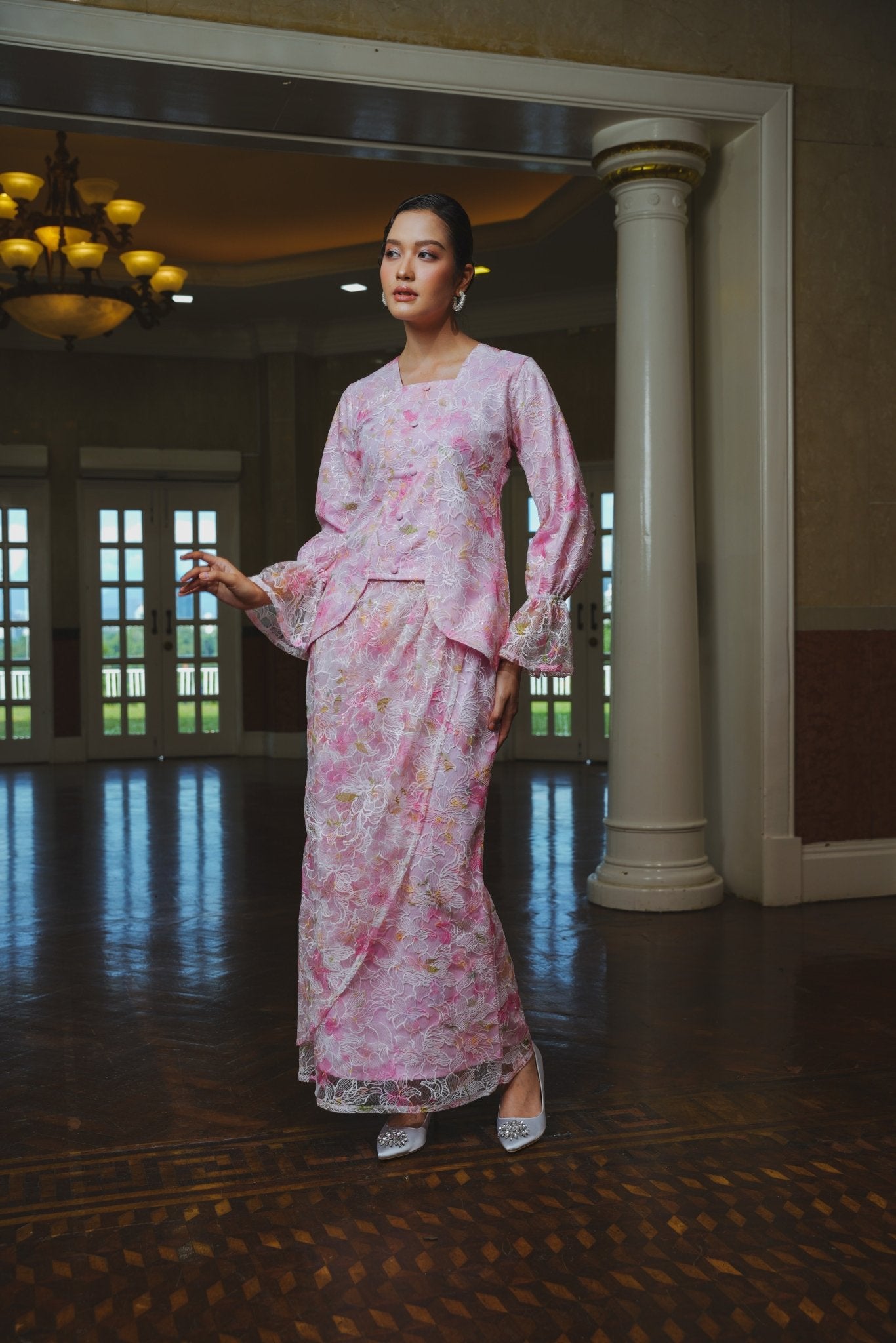 The Lumiere Collection Women Valencia Kebaya Set in Ballerina Pink Lily Lace