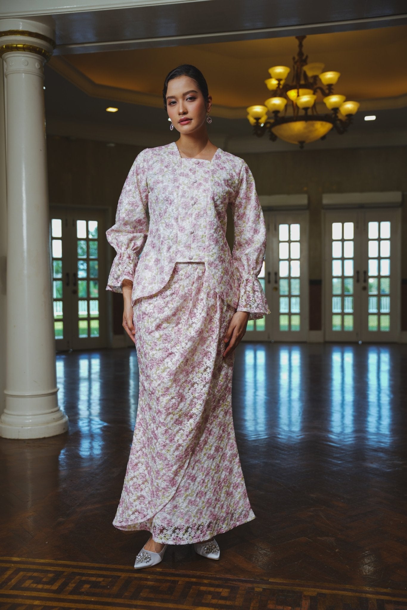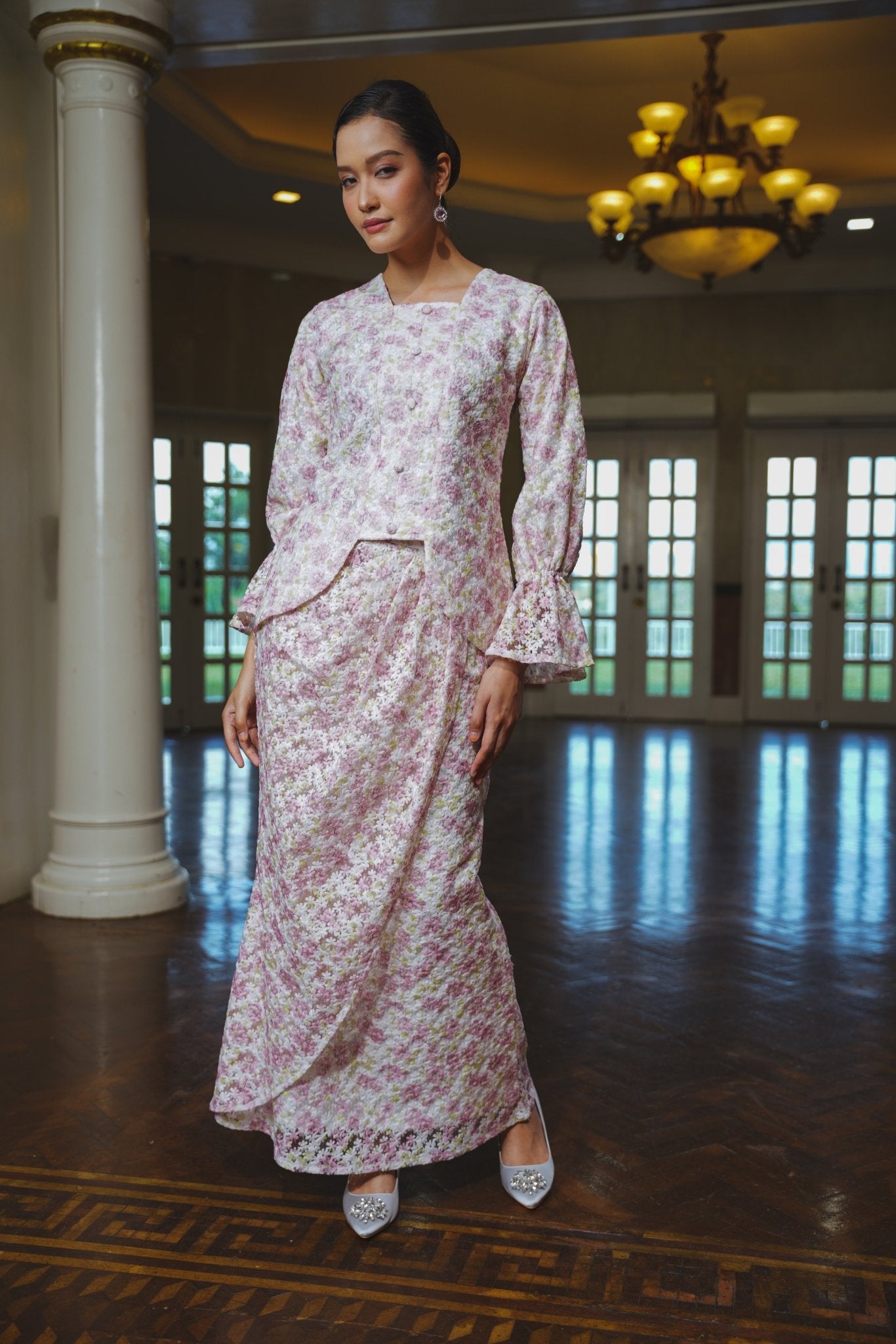 The Lumiere Collection Women Valencia Kebaya Set in Pink Garden Lace