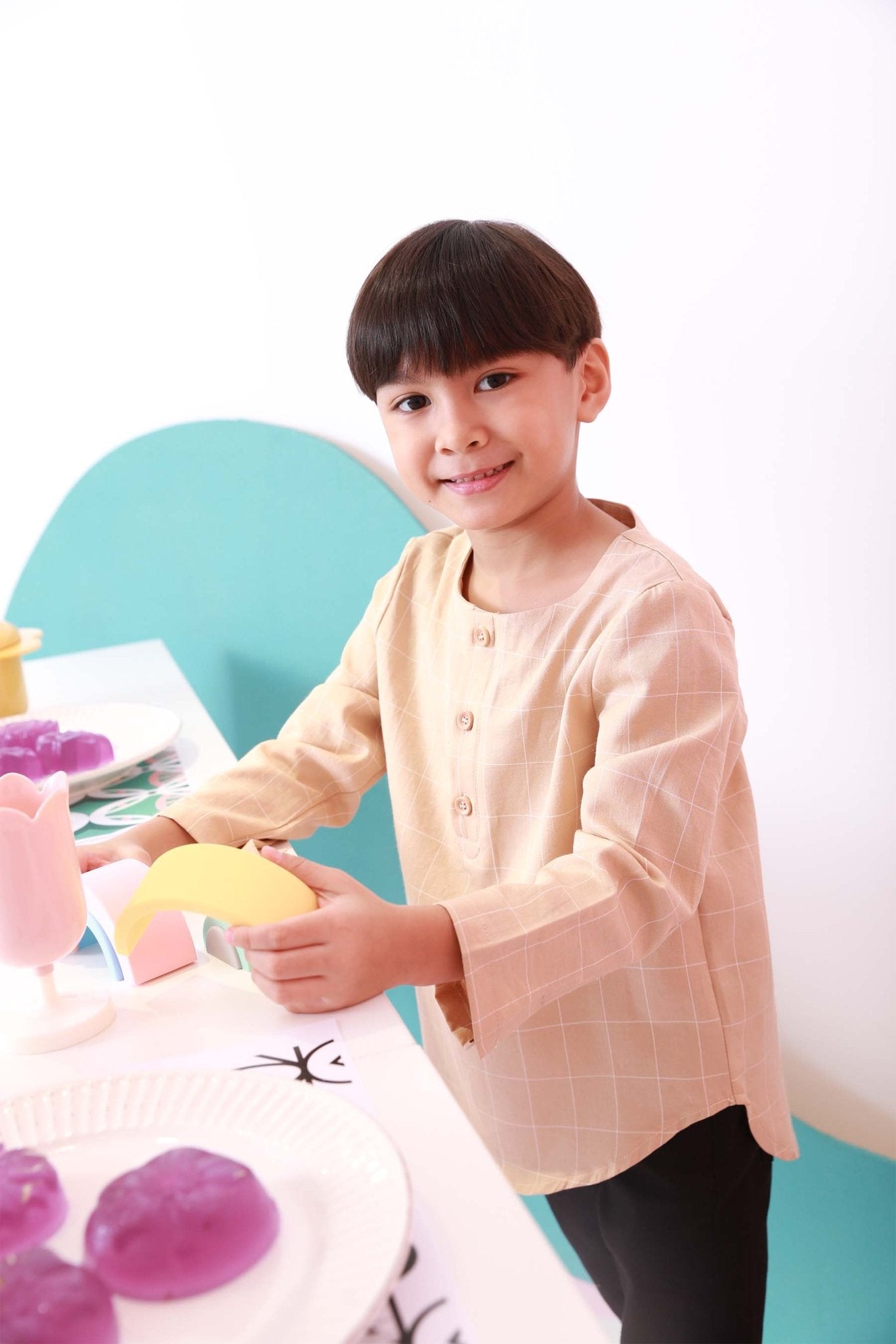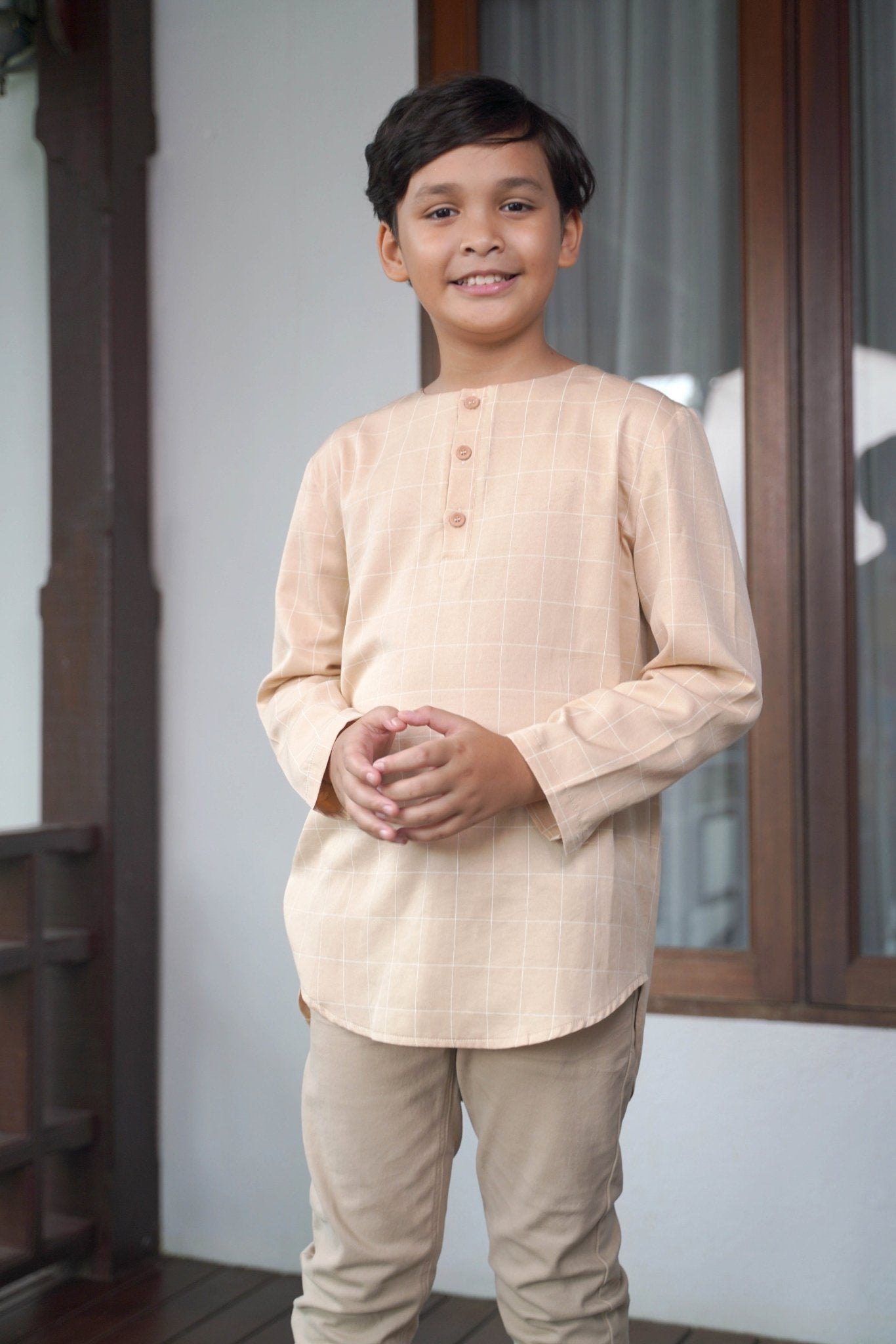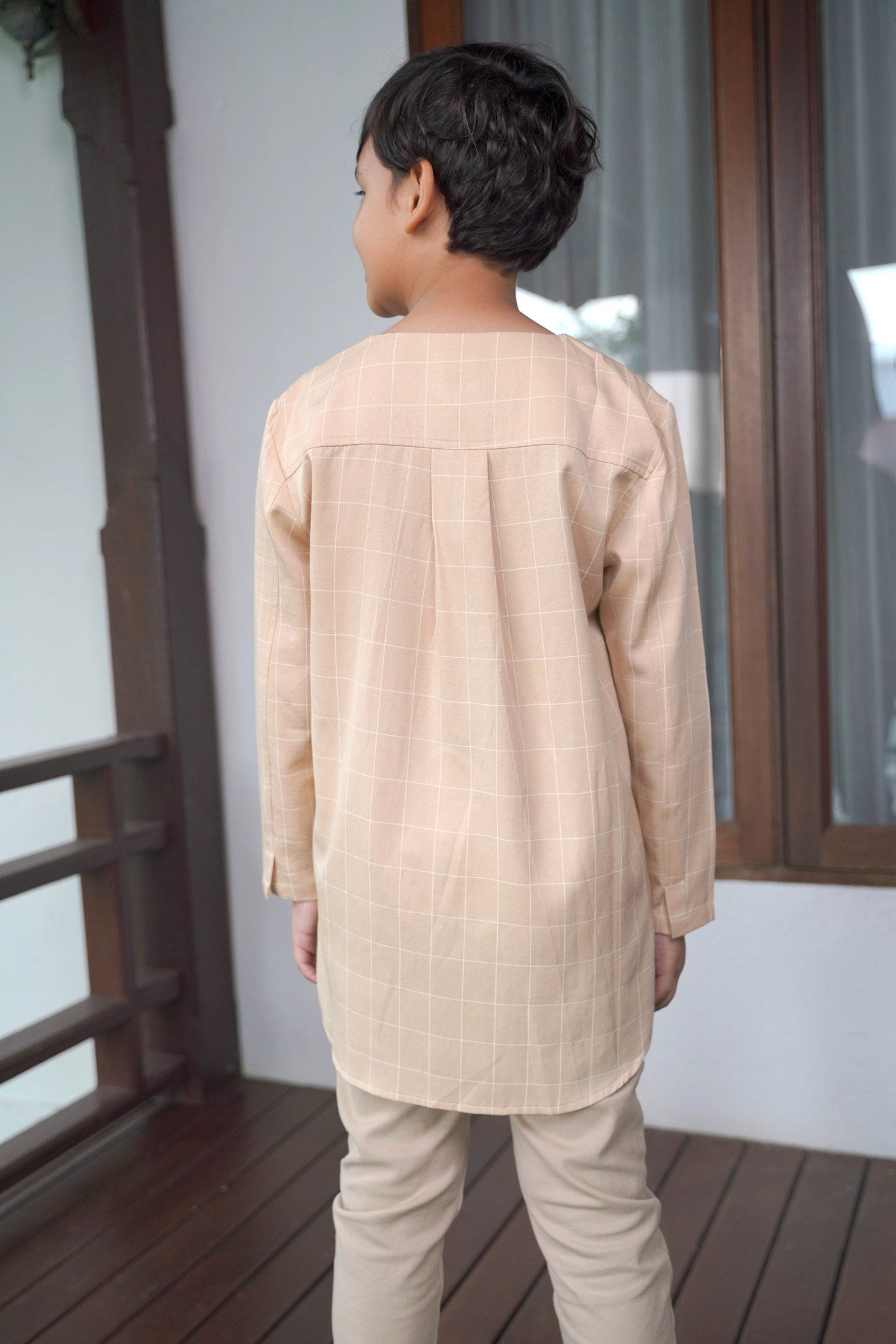 The Nikmat Collection Boy Kurta Top Checked Caramel