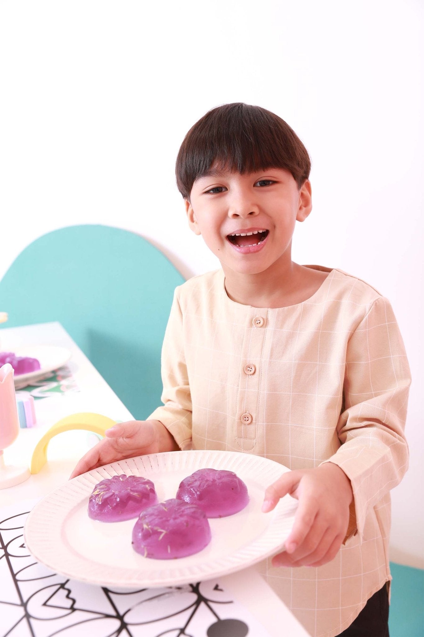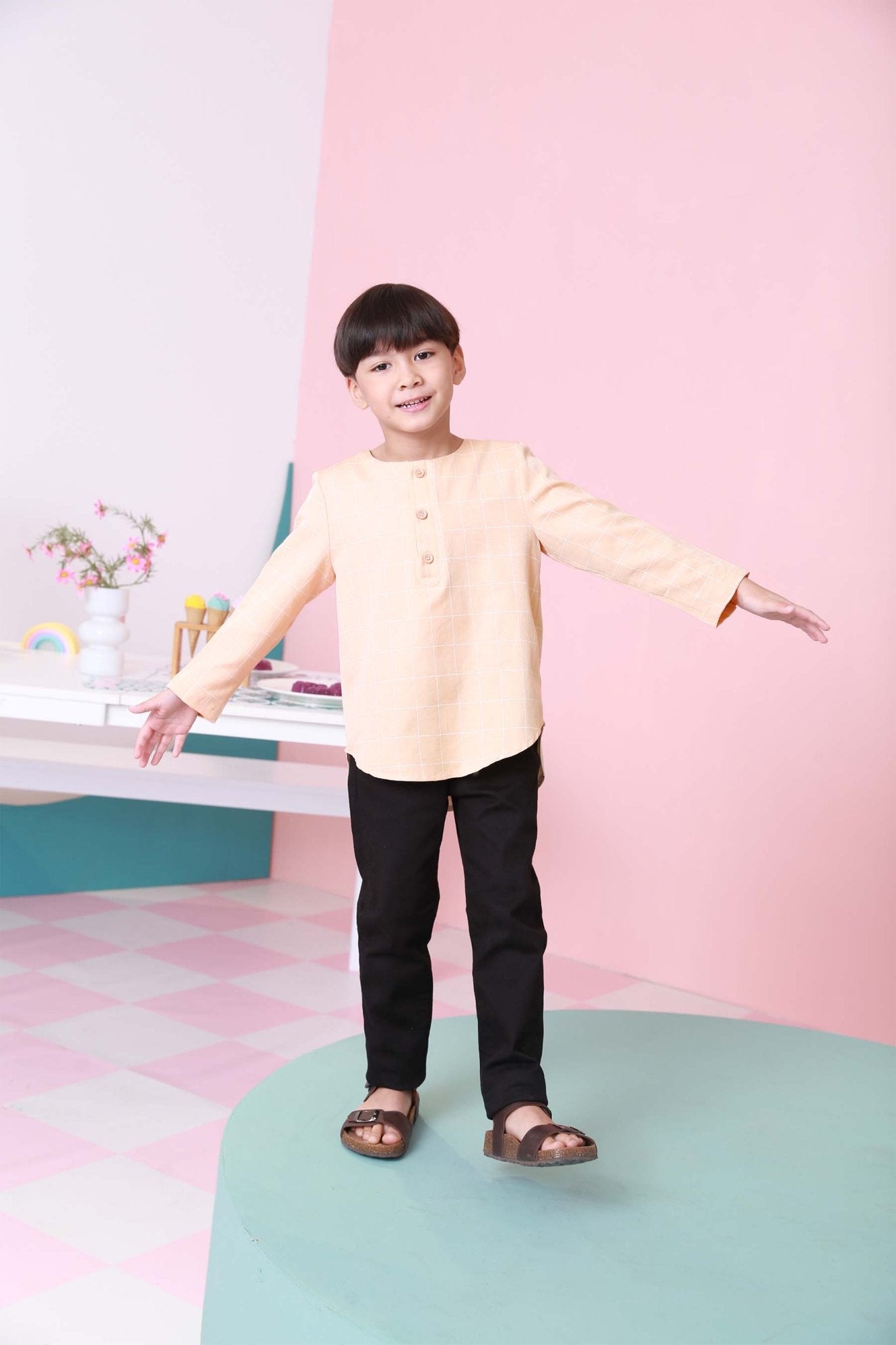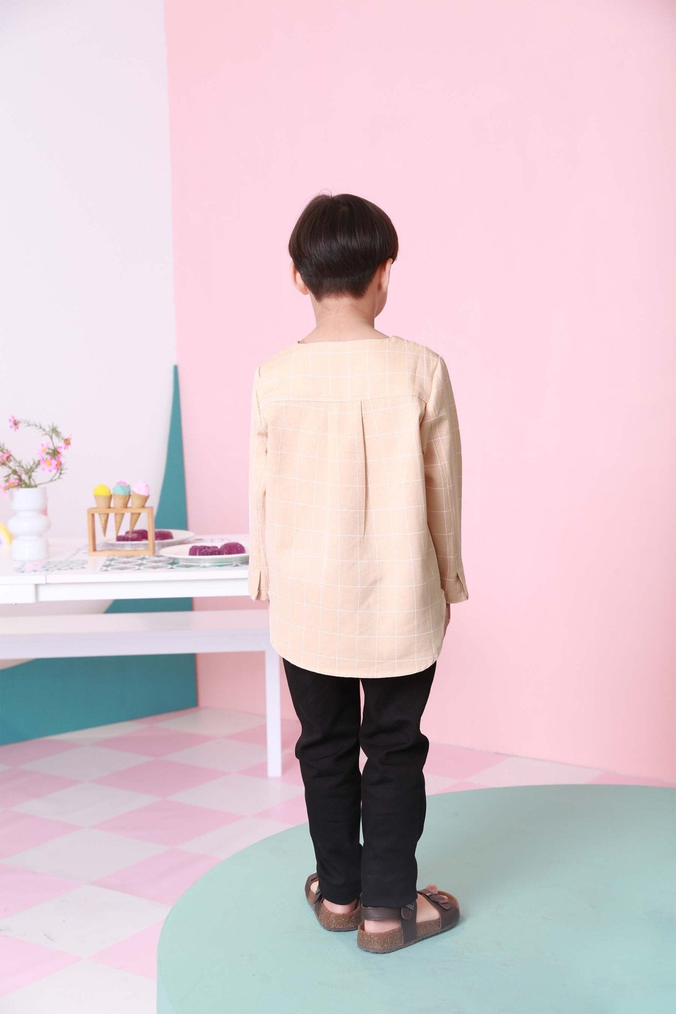 The Nikmat Collection Boy Kurta Top Checked Caramel