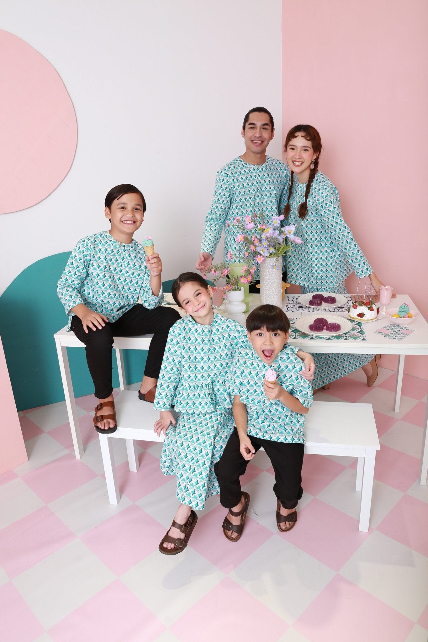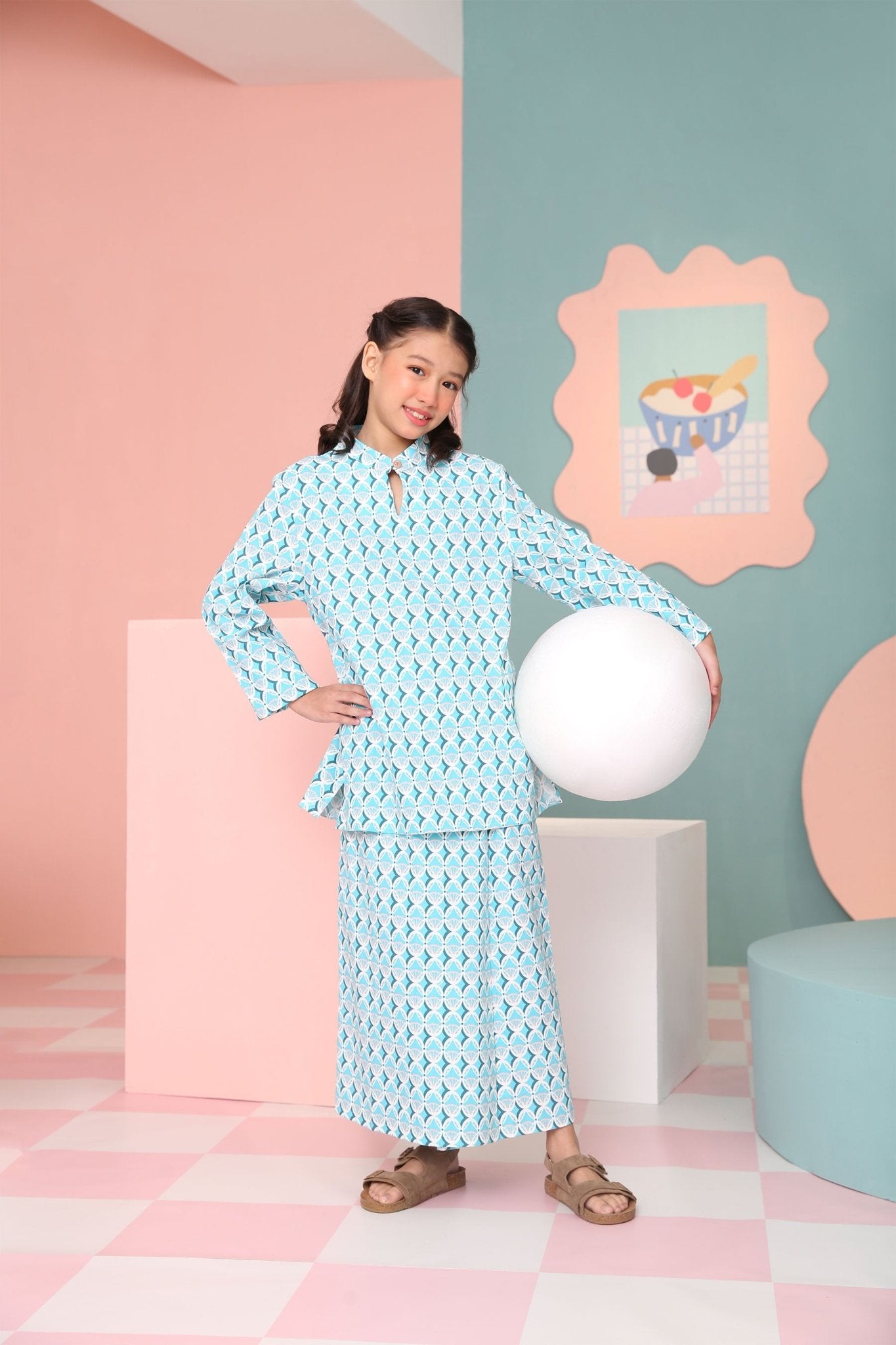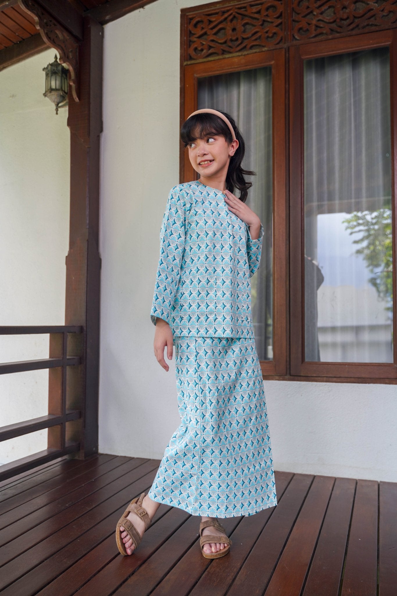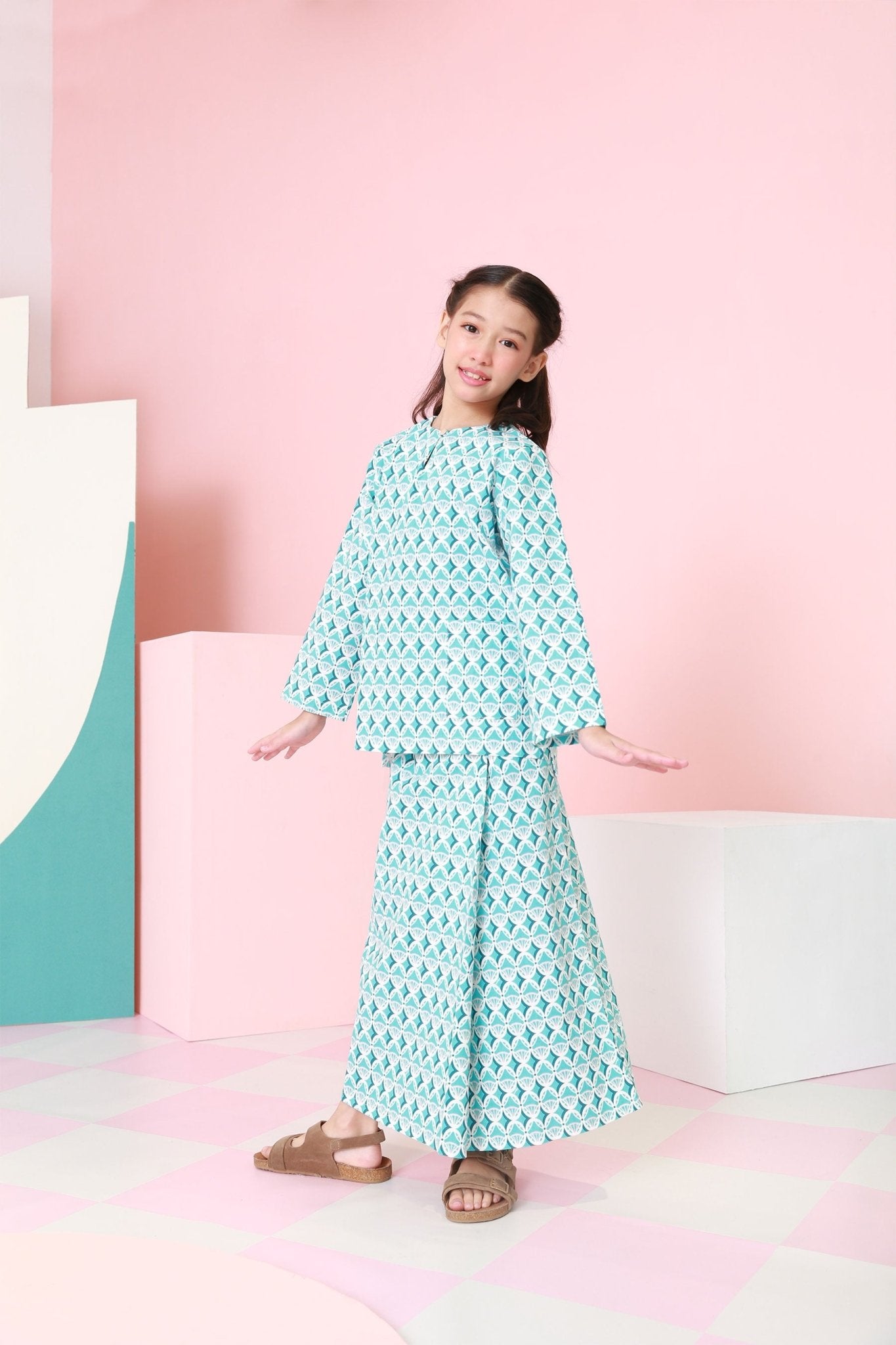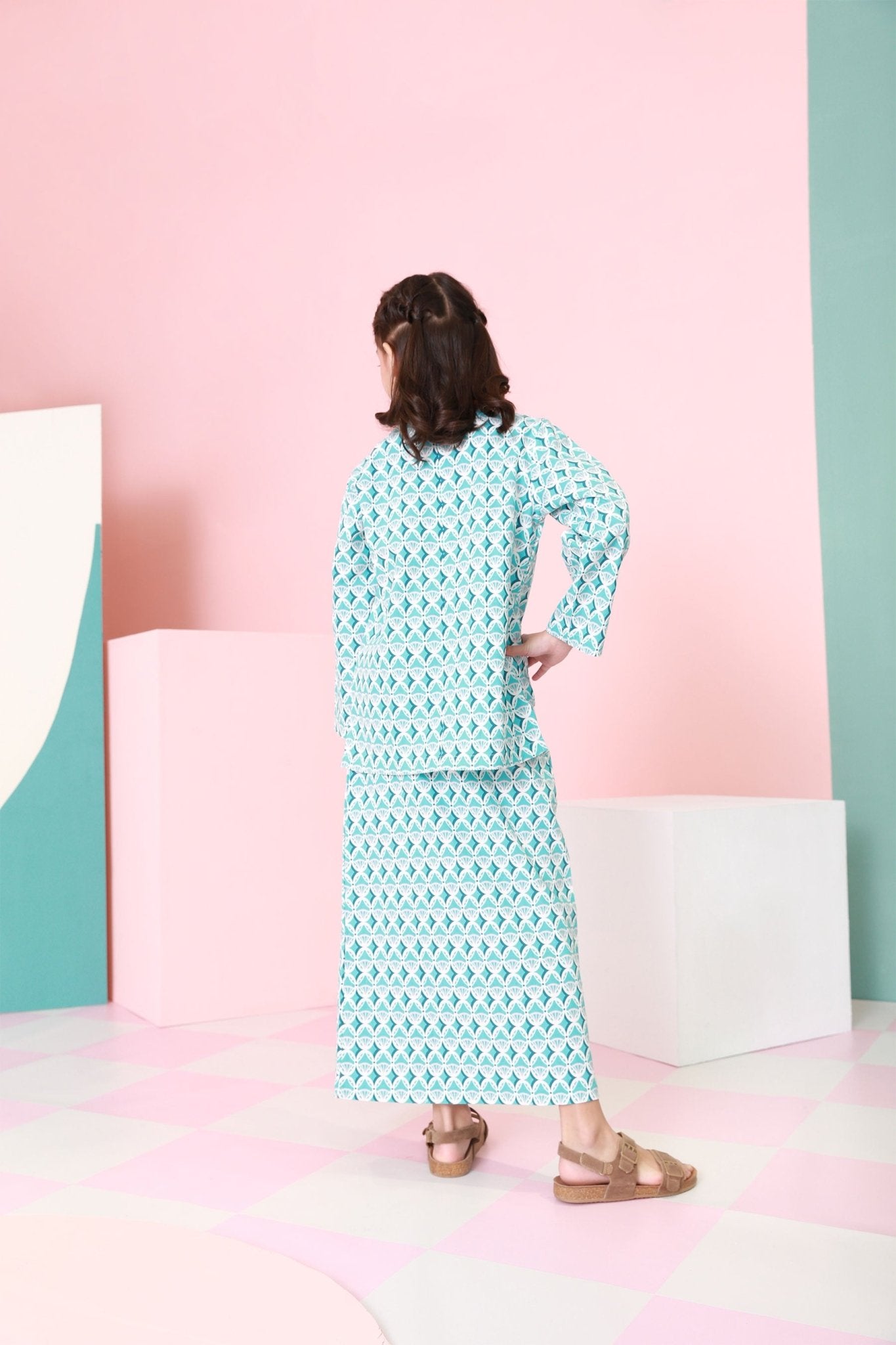 The Nikmat Collection Girl Classic Skirt Mint Drops Print