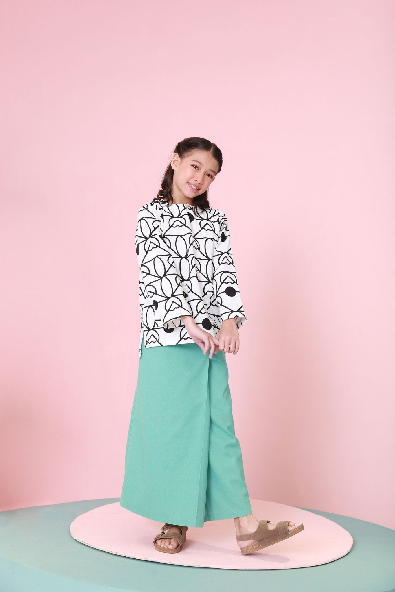 The Nikmat Collection Girl Kurung Top Fuji Print