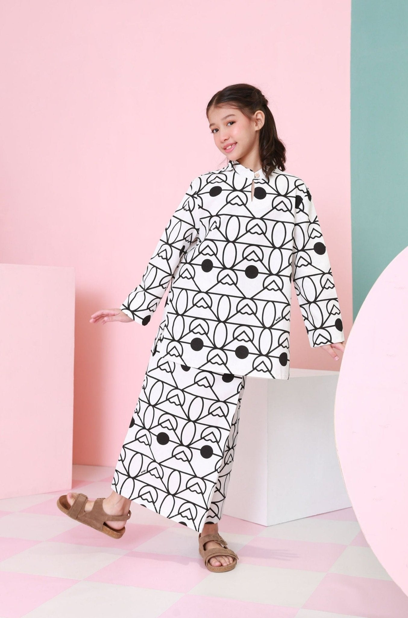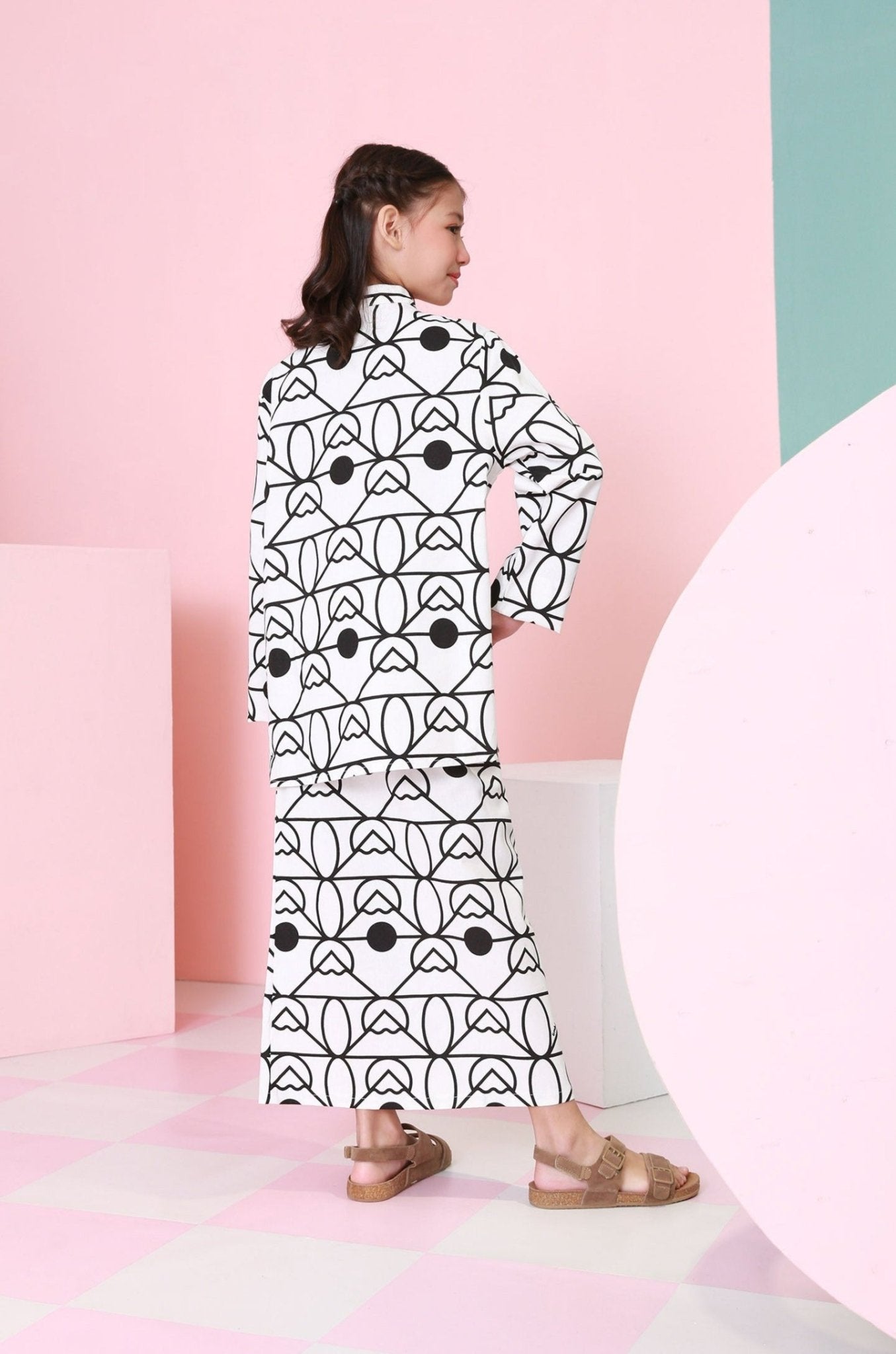 The Nikmat Collection Girl Mandarin Collar Kurung Top Fuji Print