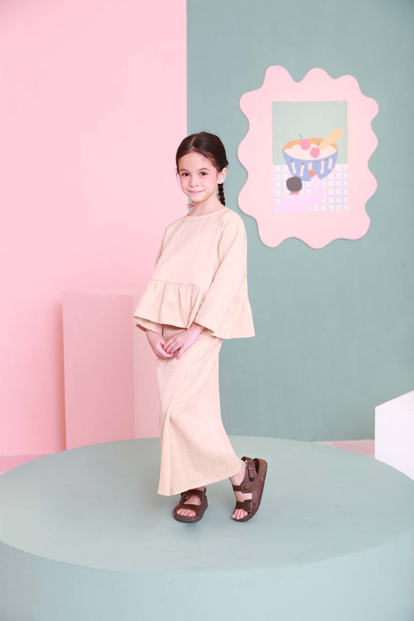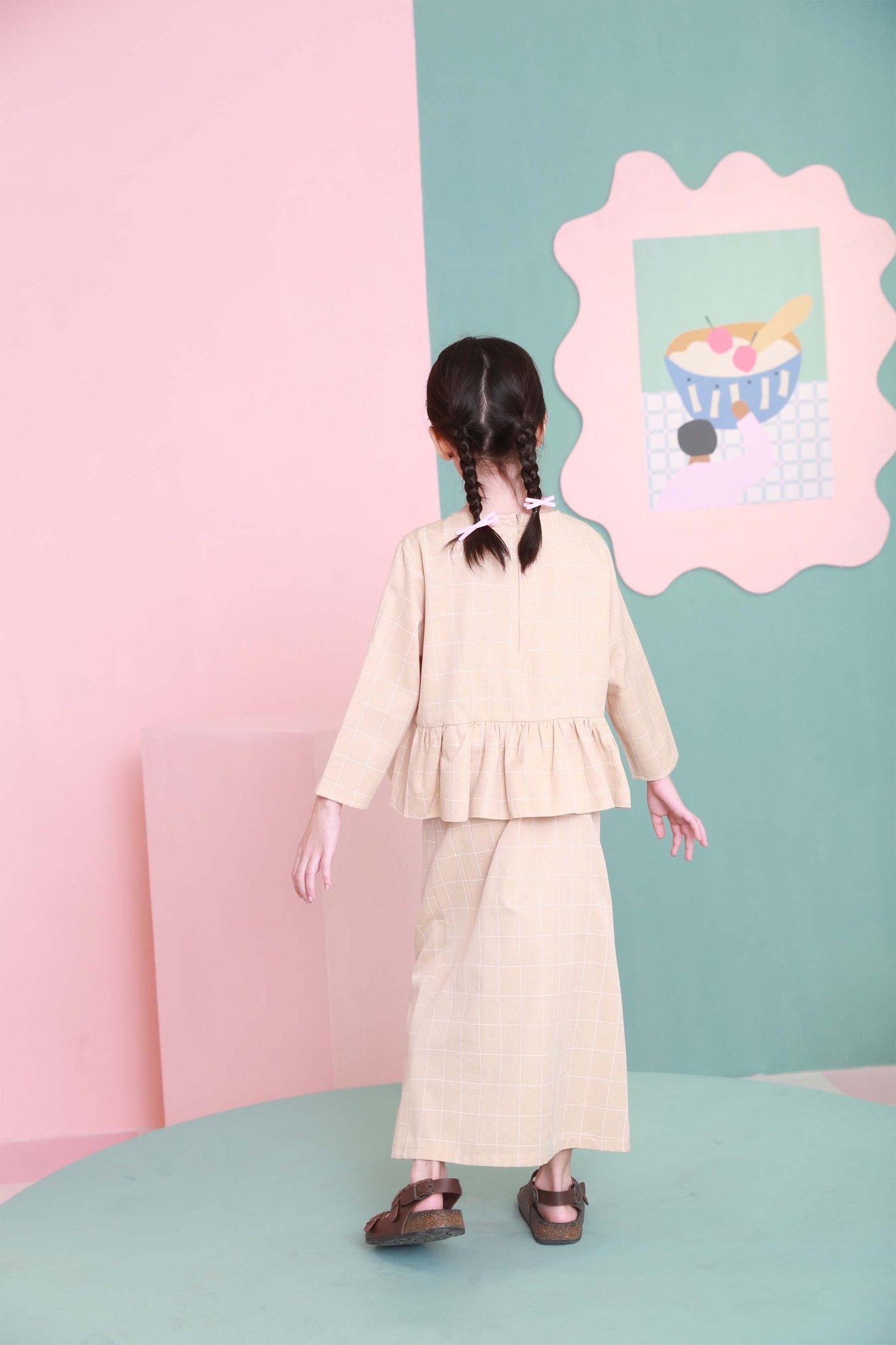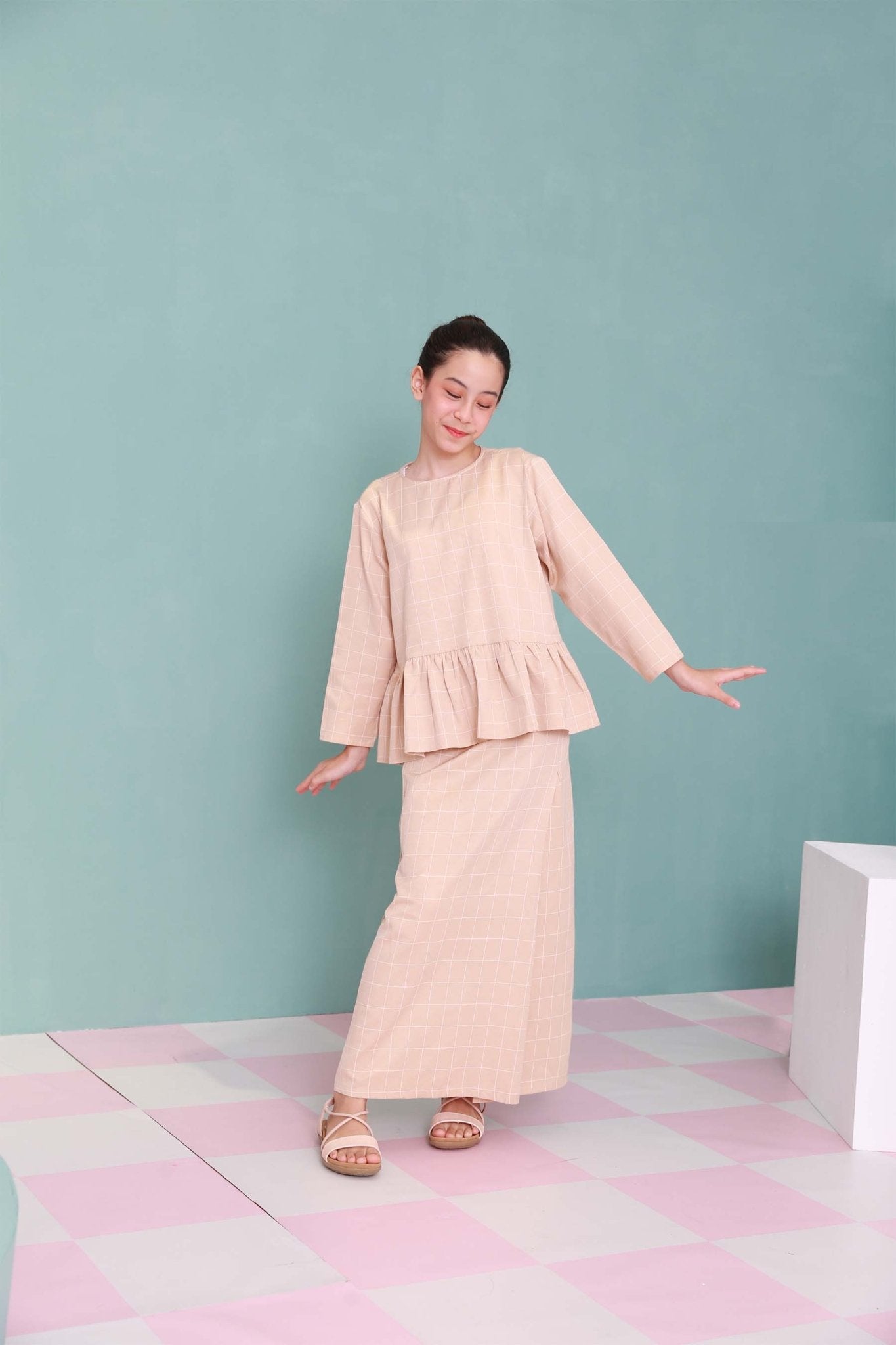 The Nikmat Collection Girl Petit Ruffle Blouse Checked Caramel