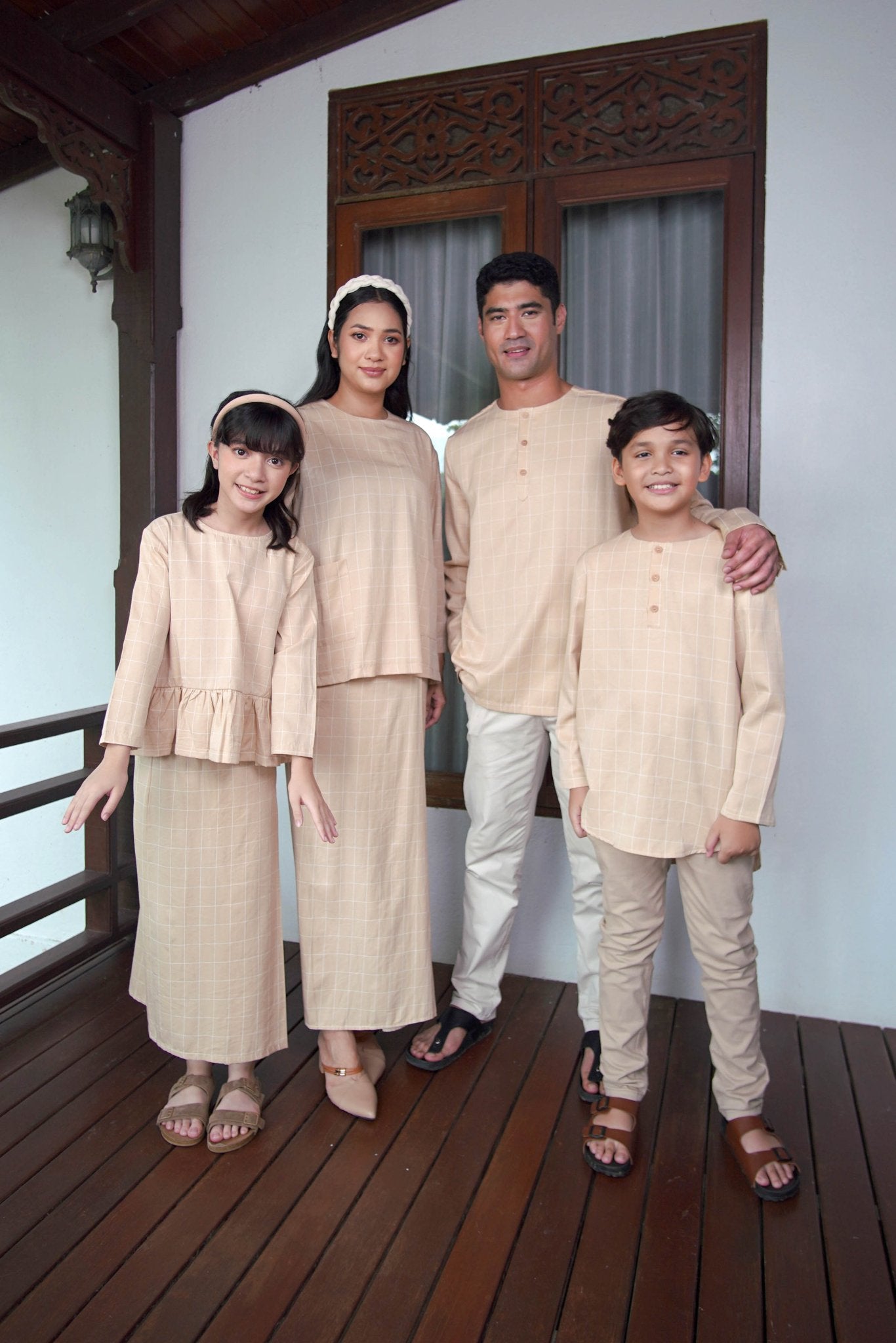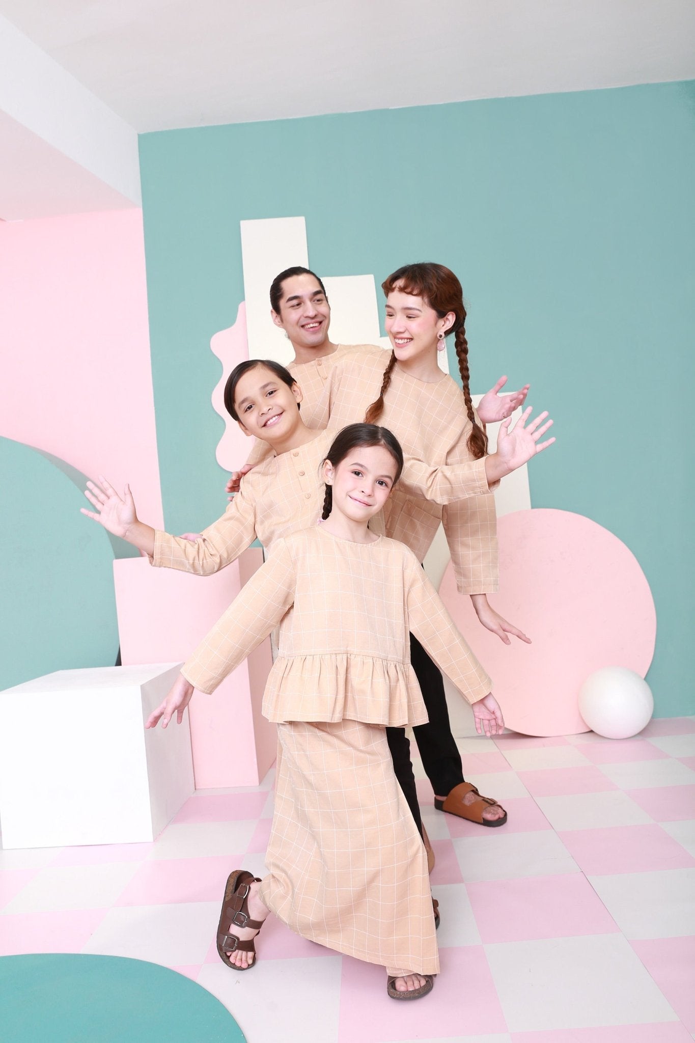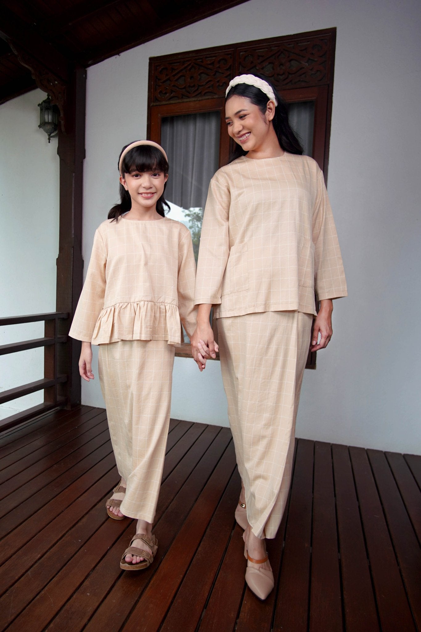 The Nikmat Collection Girl Petit Ruffle Blouse Checked Caramel