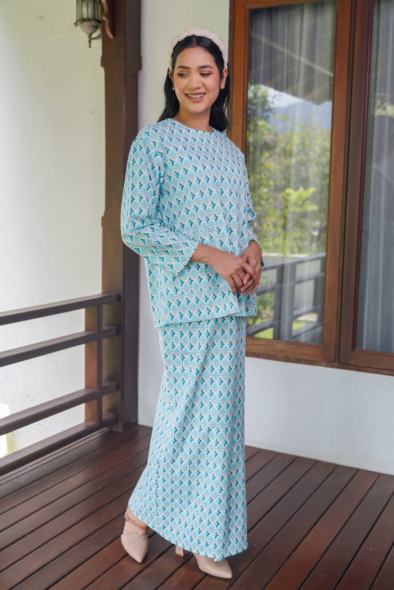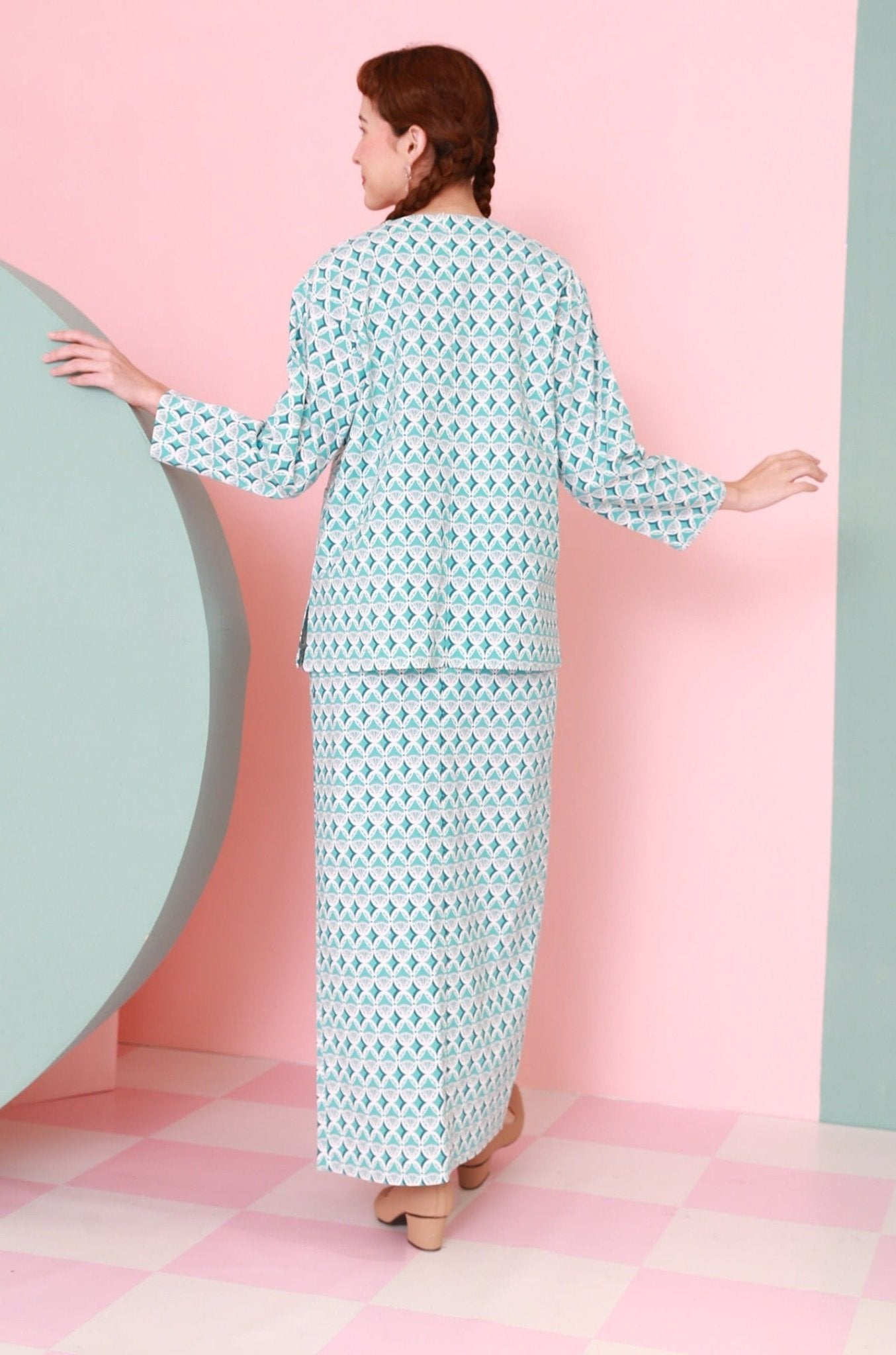 The Nikmat Collection Women Classic Skirt Mint Drops Print
