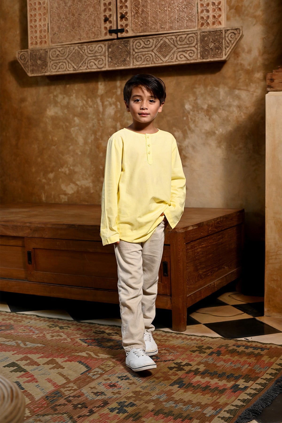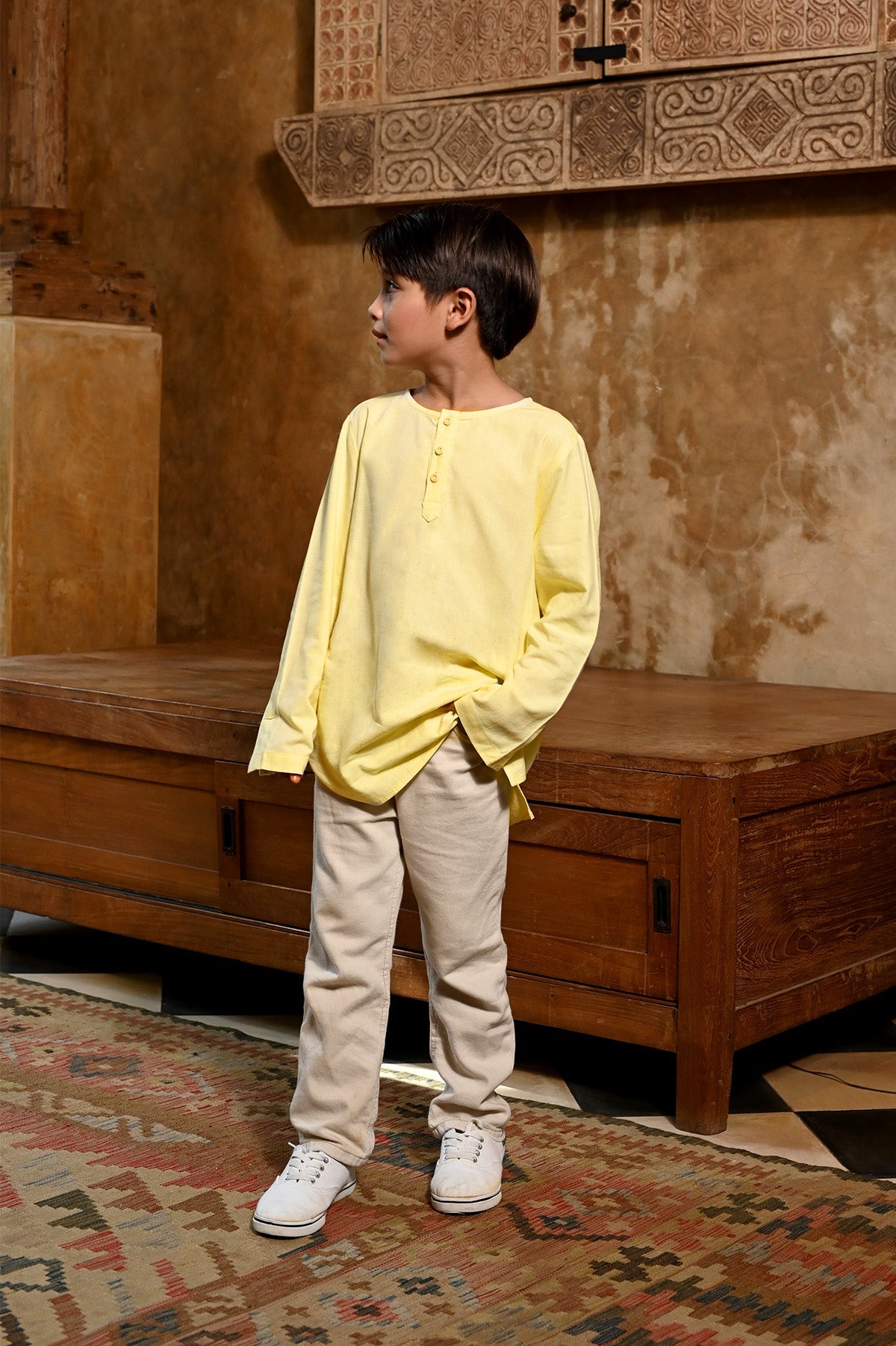 The Nusantara Collection Boy Long Sleeve Kurta Butter Yellow