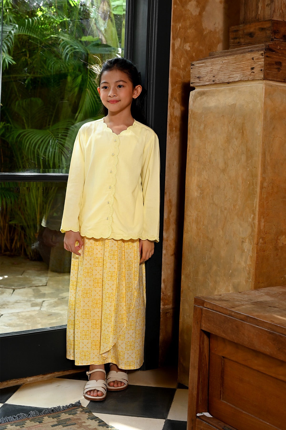 The Nusantara Collection Girl Kebaya Top with Embroidery Butter Yellow