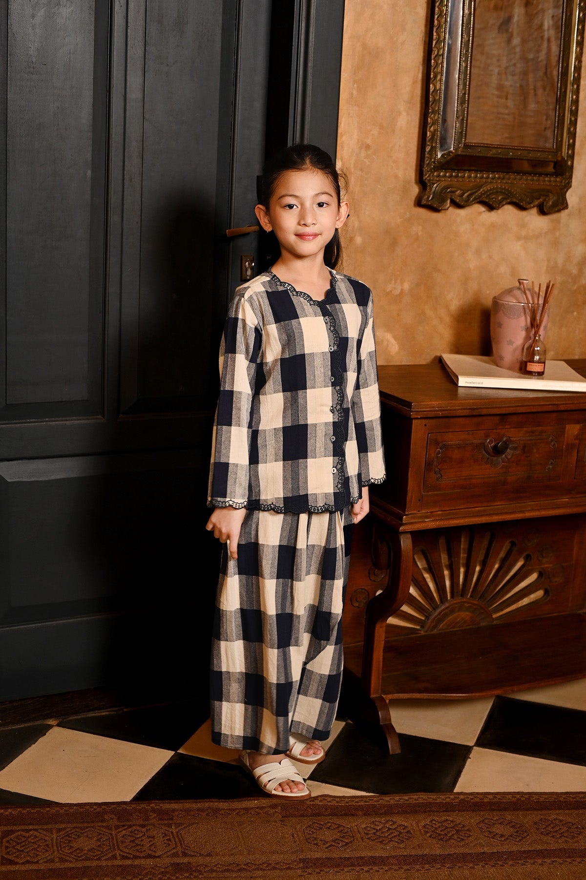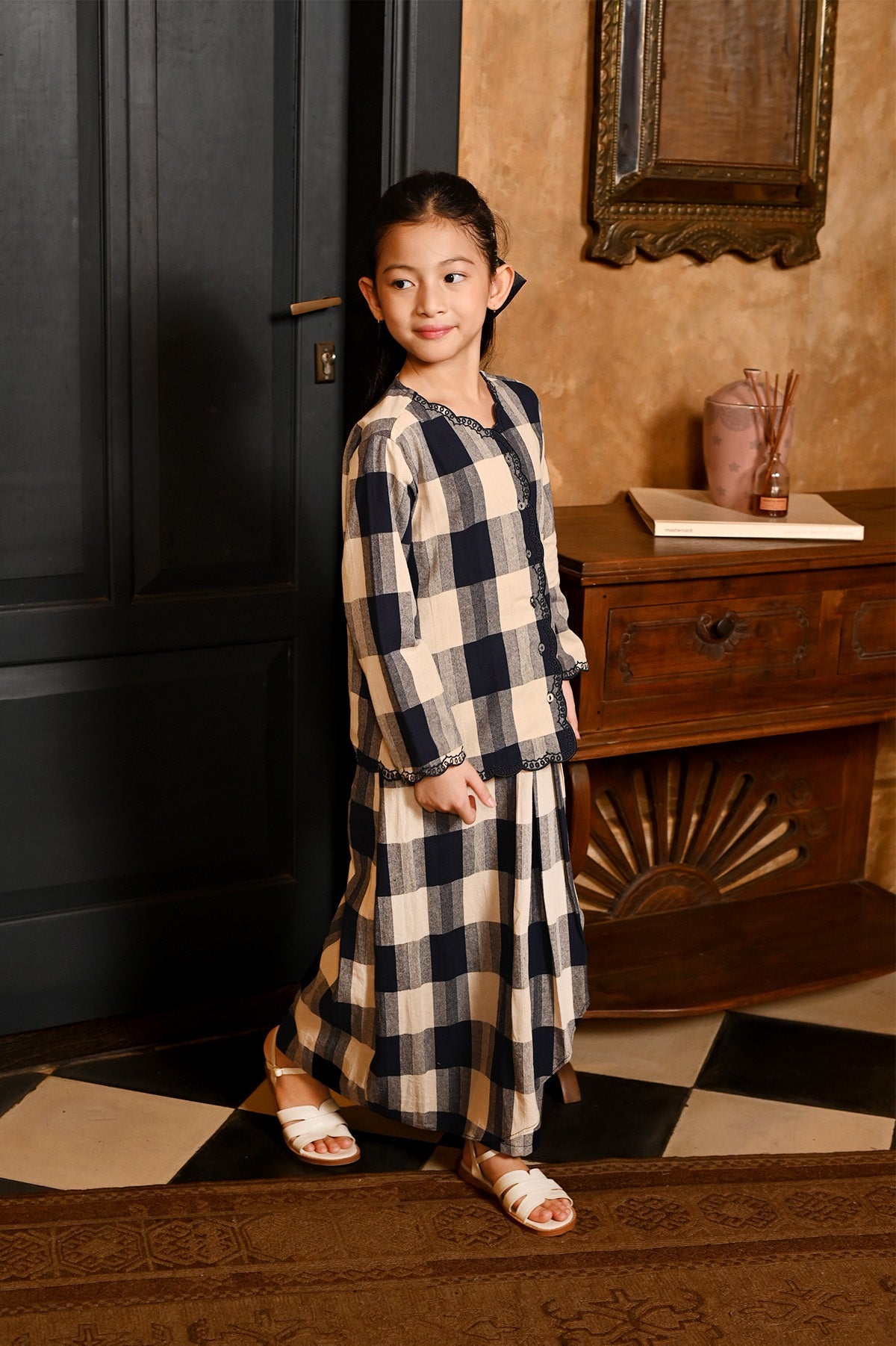 The Nusantara Collection Girl Kebaya Top with Embroidery Checked Navy