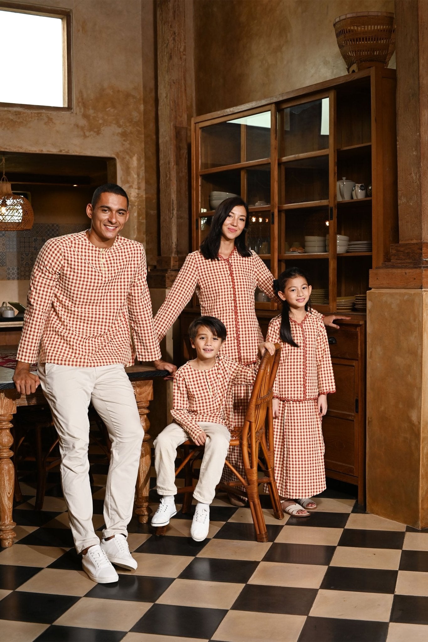 The Nusantara Collection Girl Kebaya Top with Embroidery Checked Red