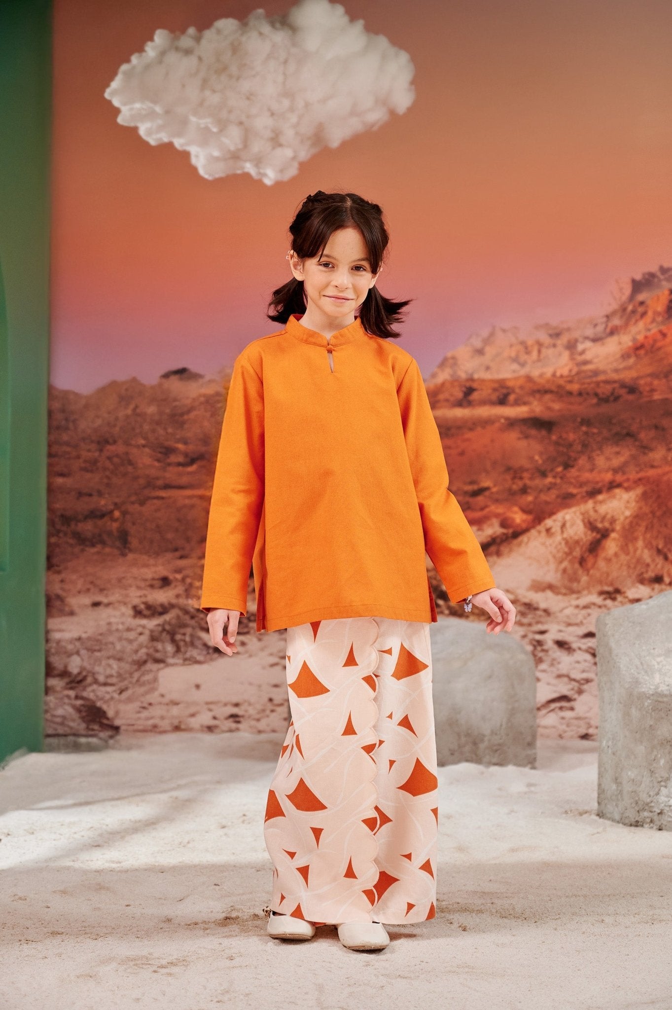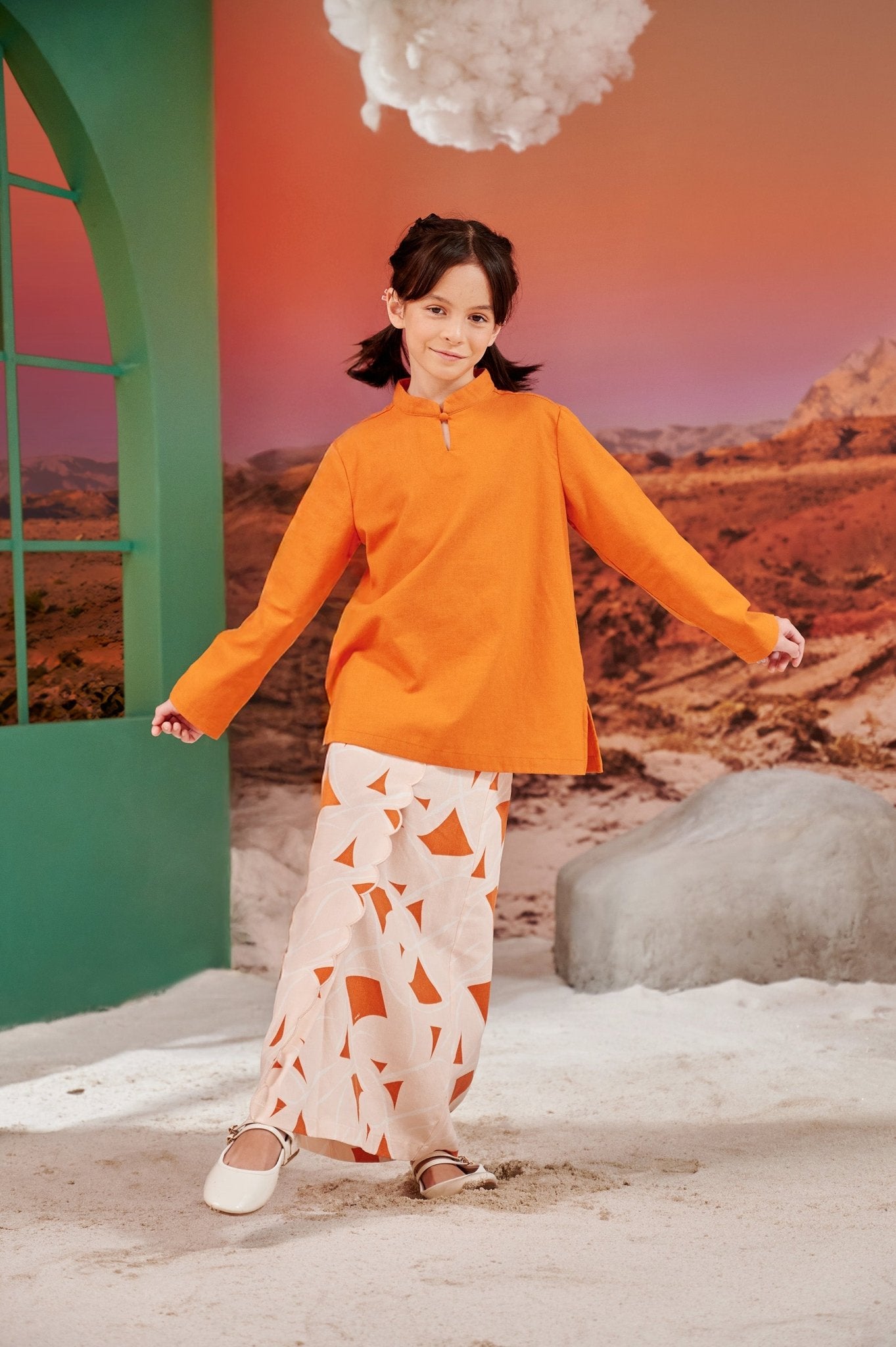 The Oasis Girl Classic Skirt with Scallop Embroidery Desert Print