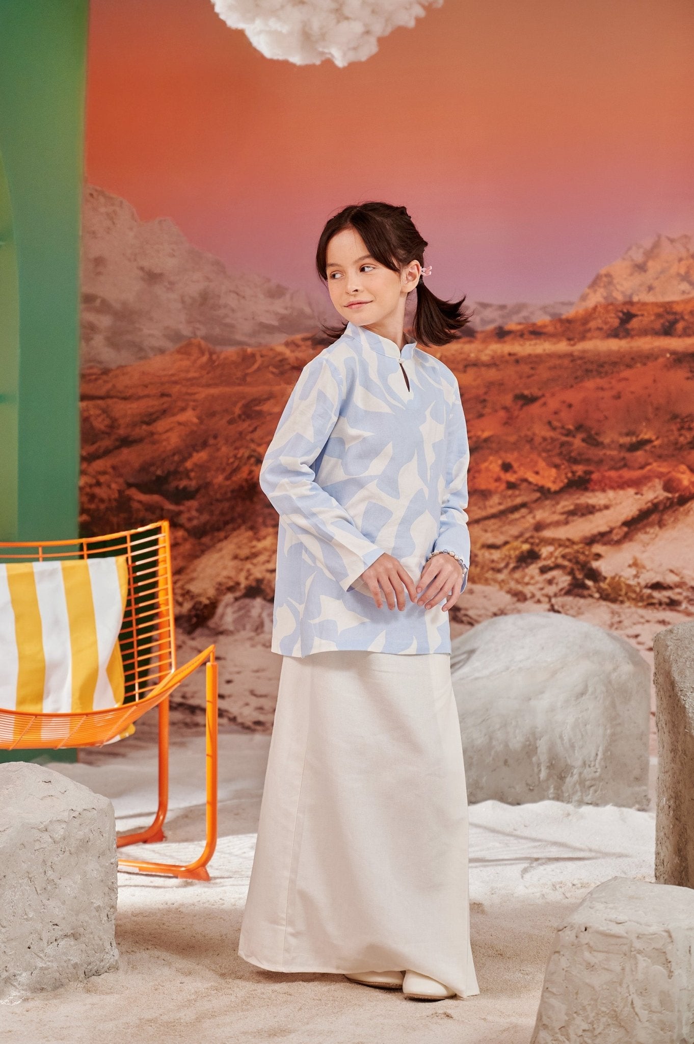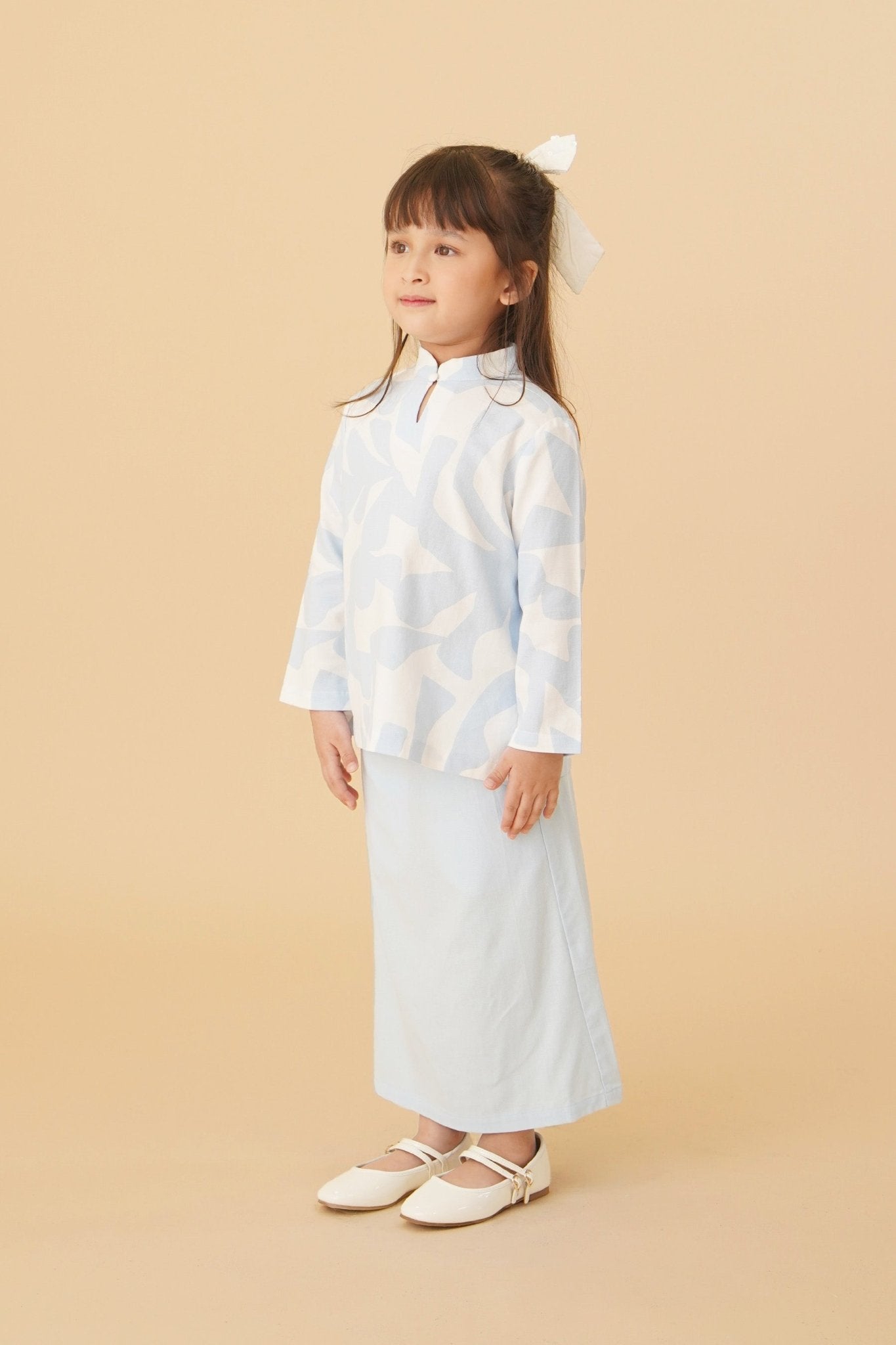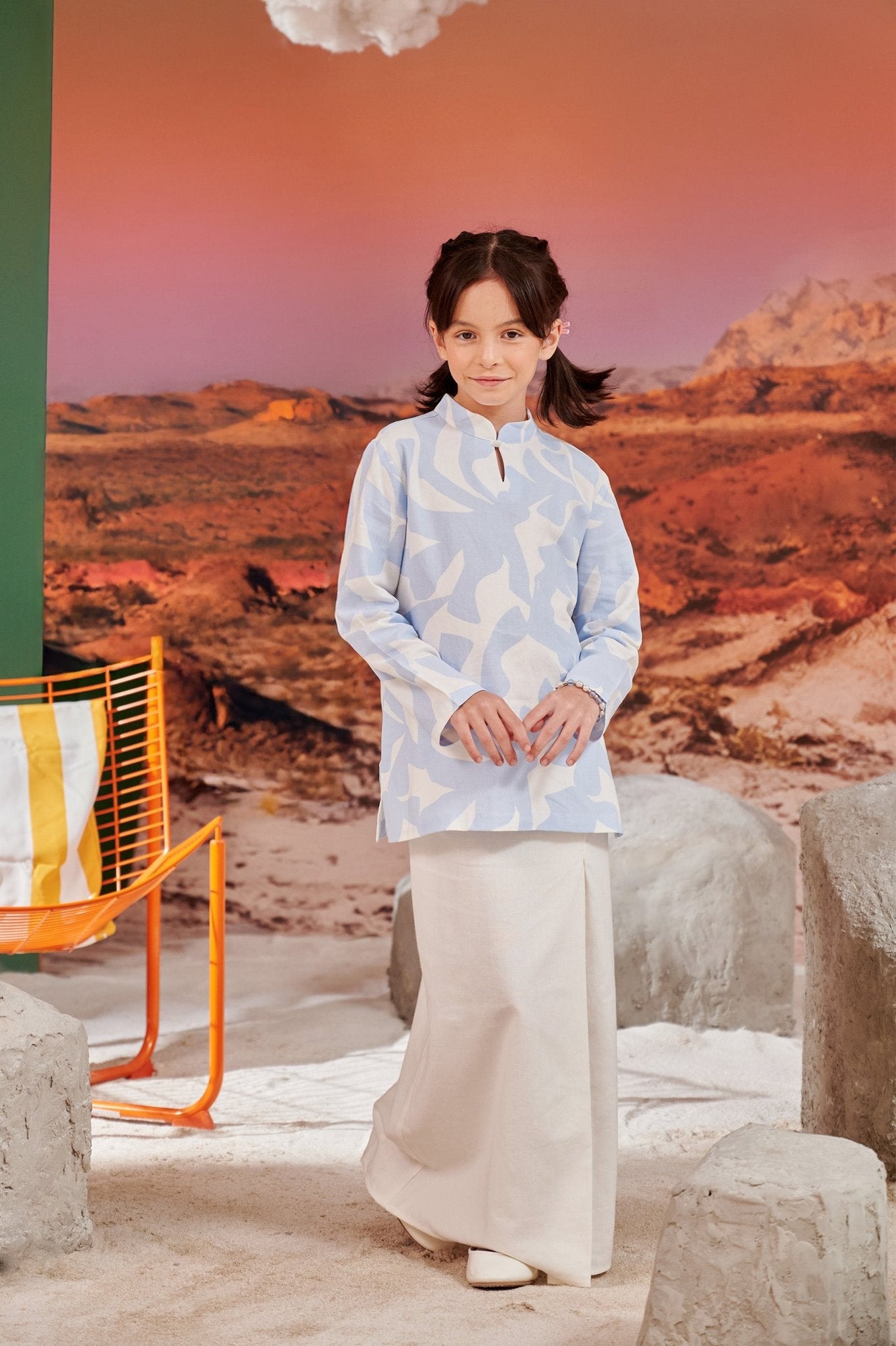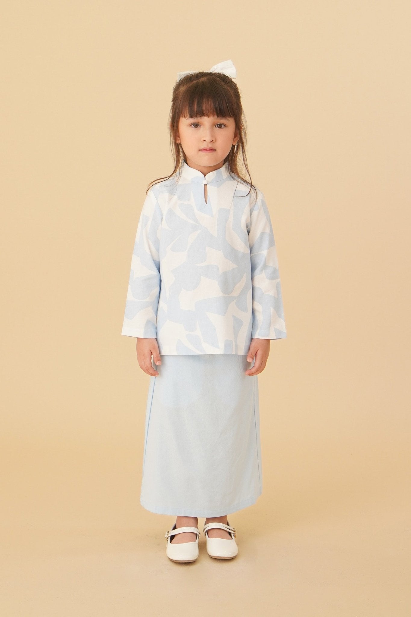The Oasis Girl Mandarin Collar Kurung Top Mirage Print