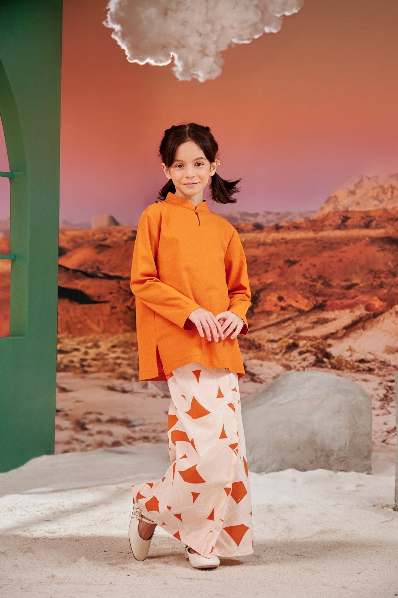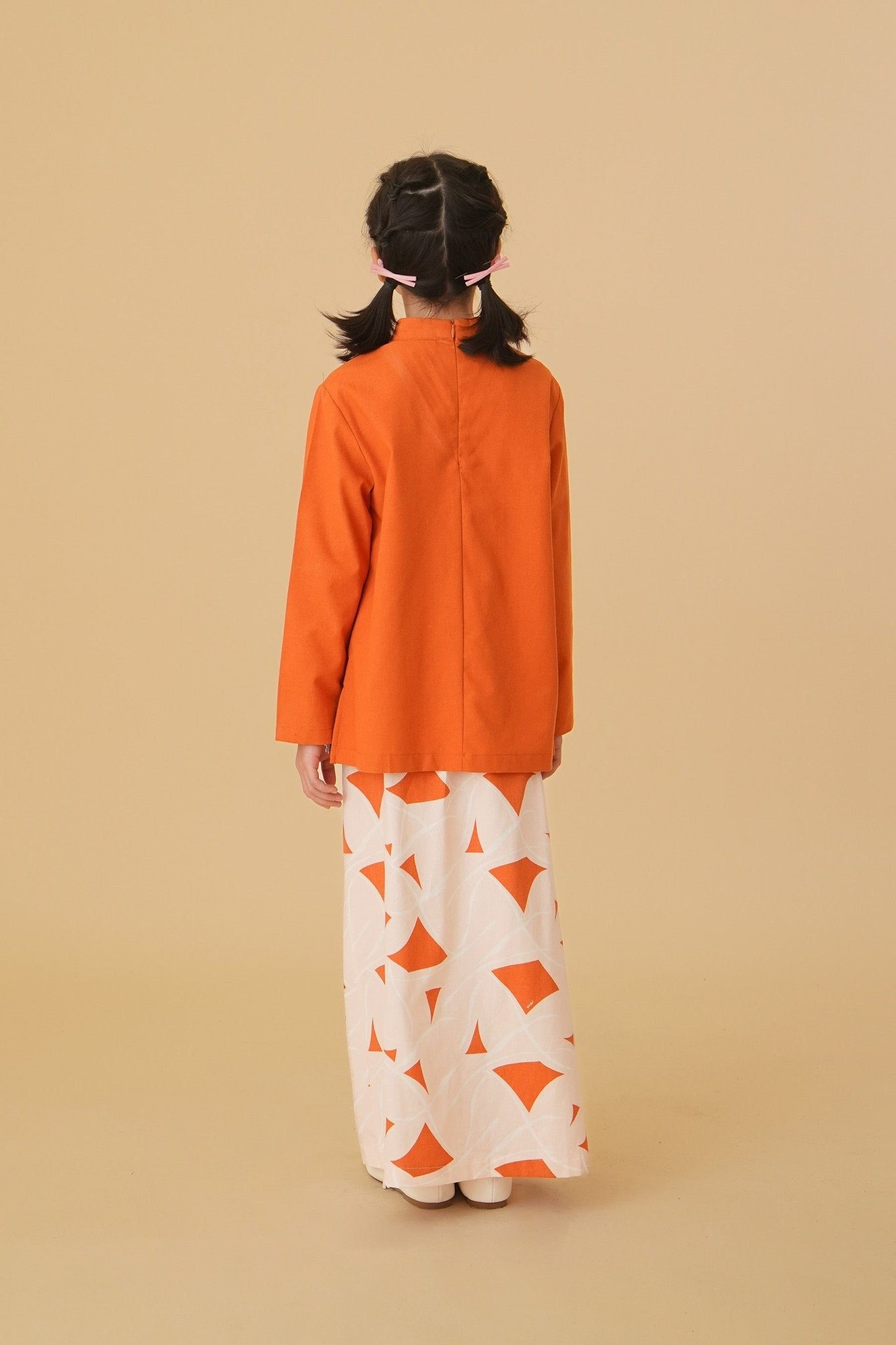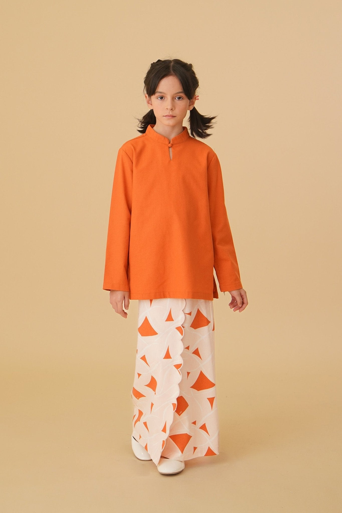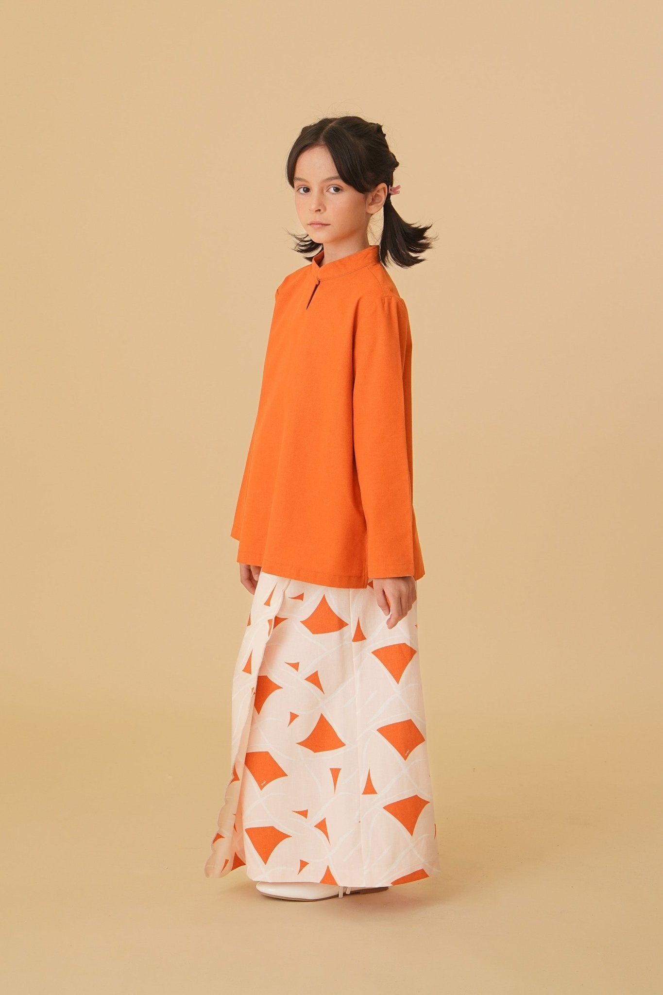 The Oasis Girl Mandarin Collar Kurung Top Orange