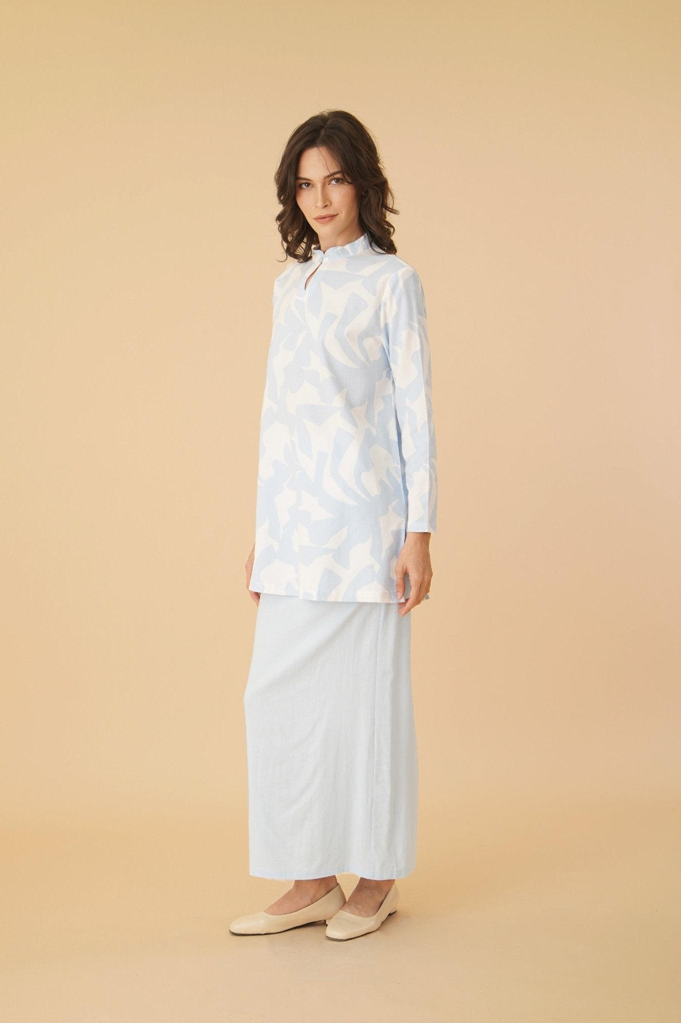 The Oasis Women Column Skirt with Back Pleats Sky Blue