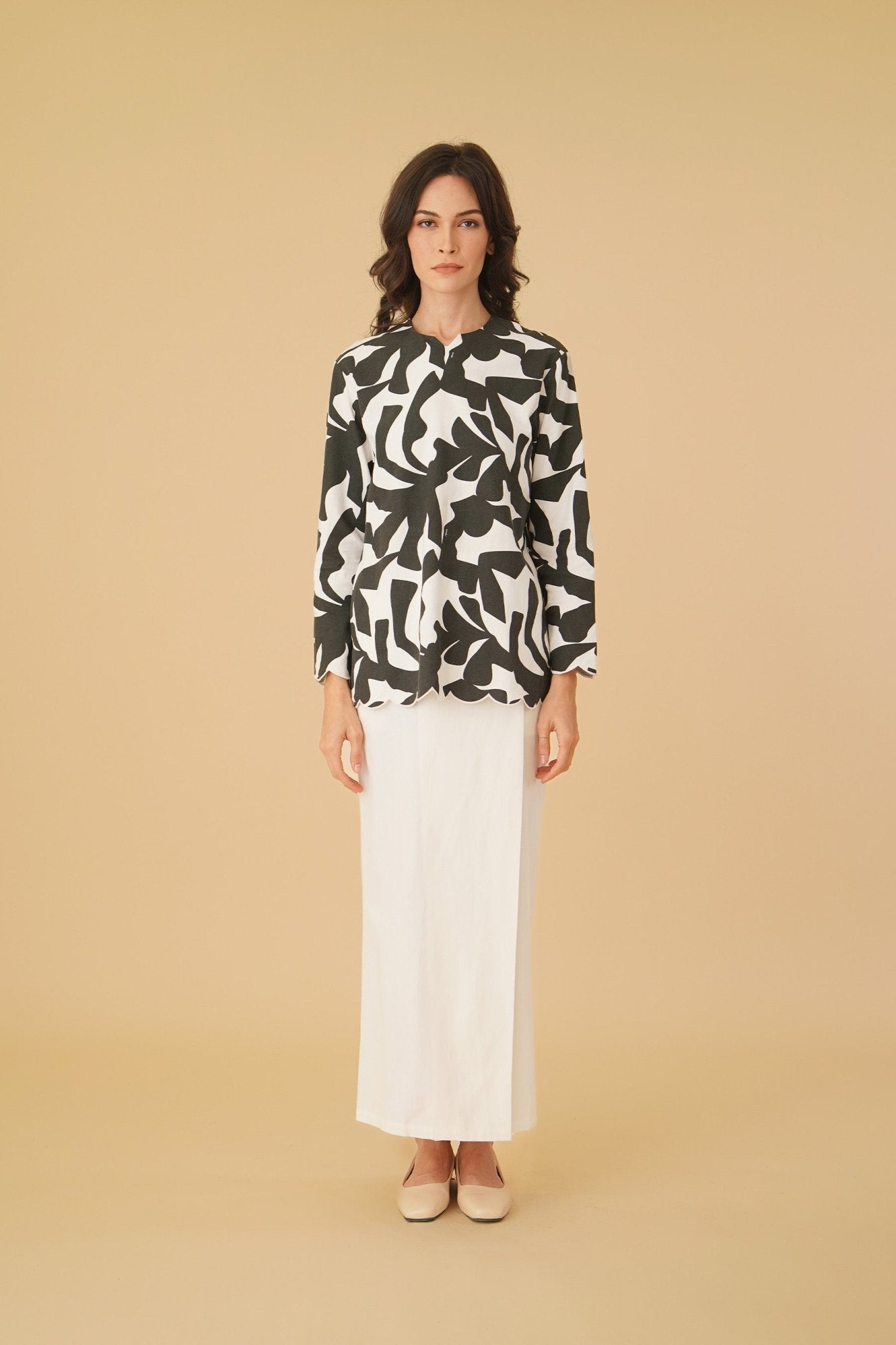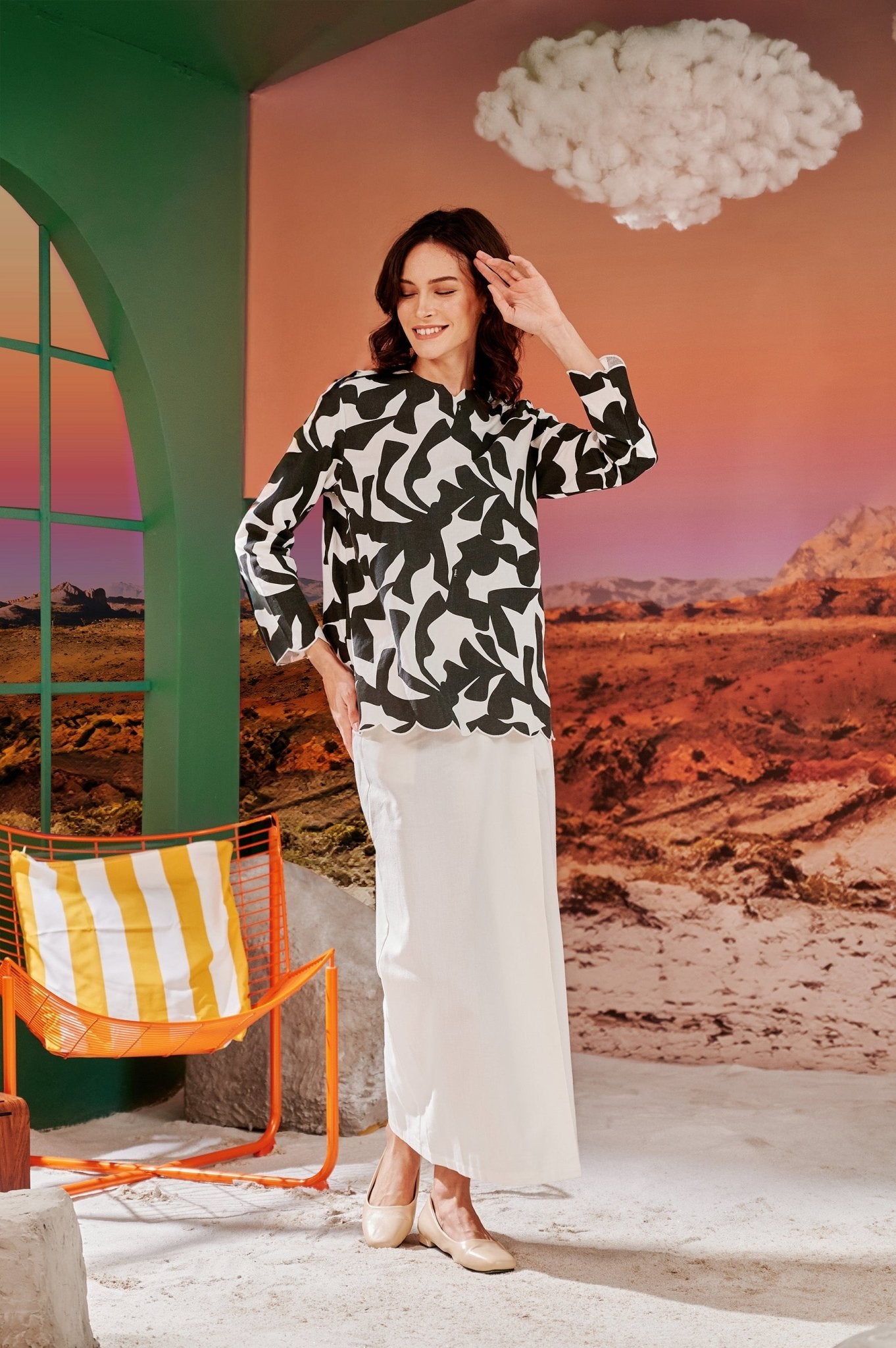 The Oasis Women Kurung Top with Scallop Embroidery Shadow Print