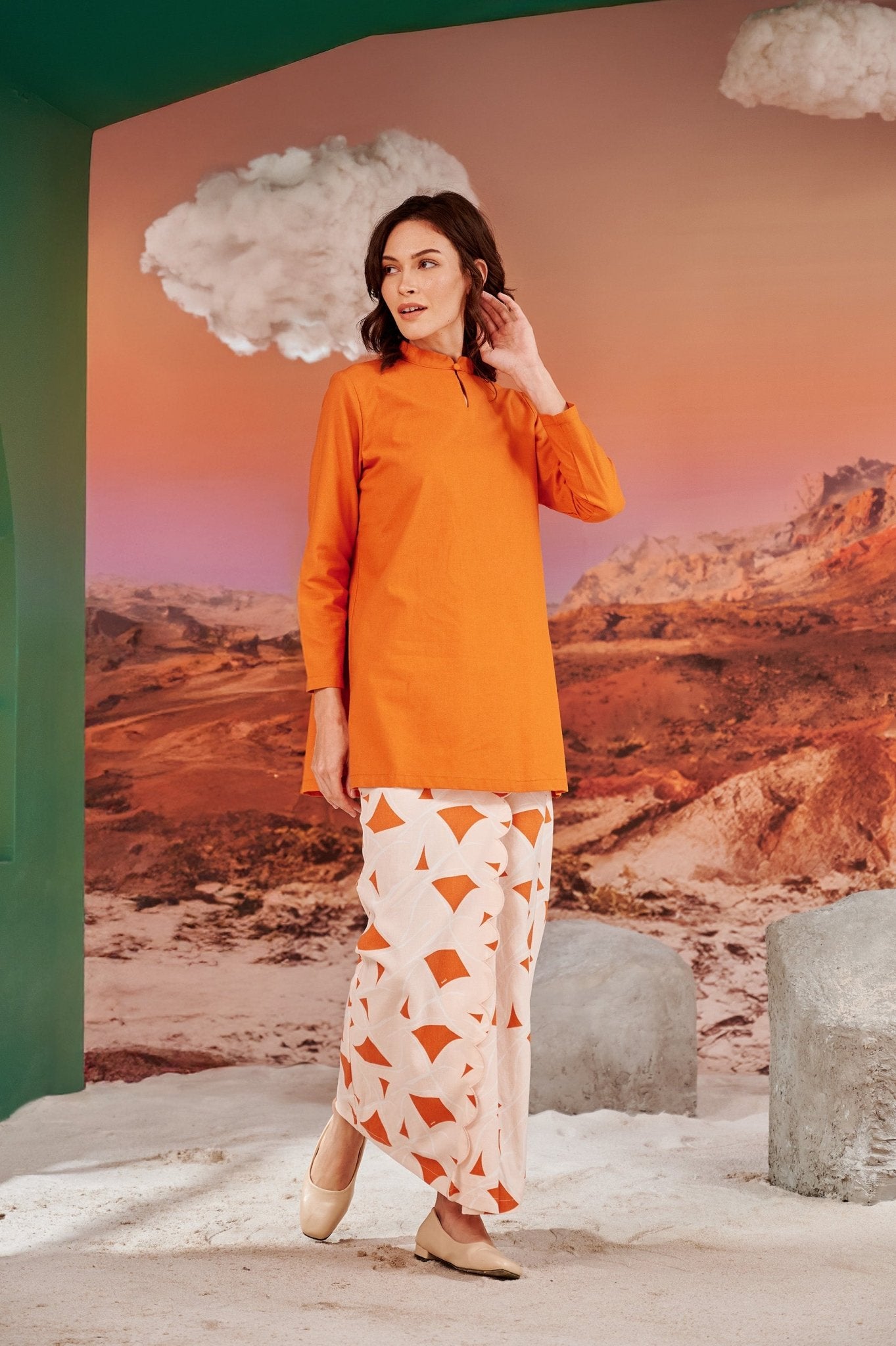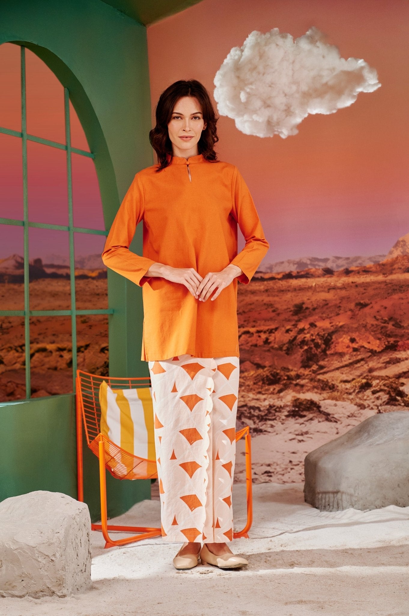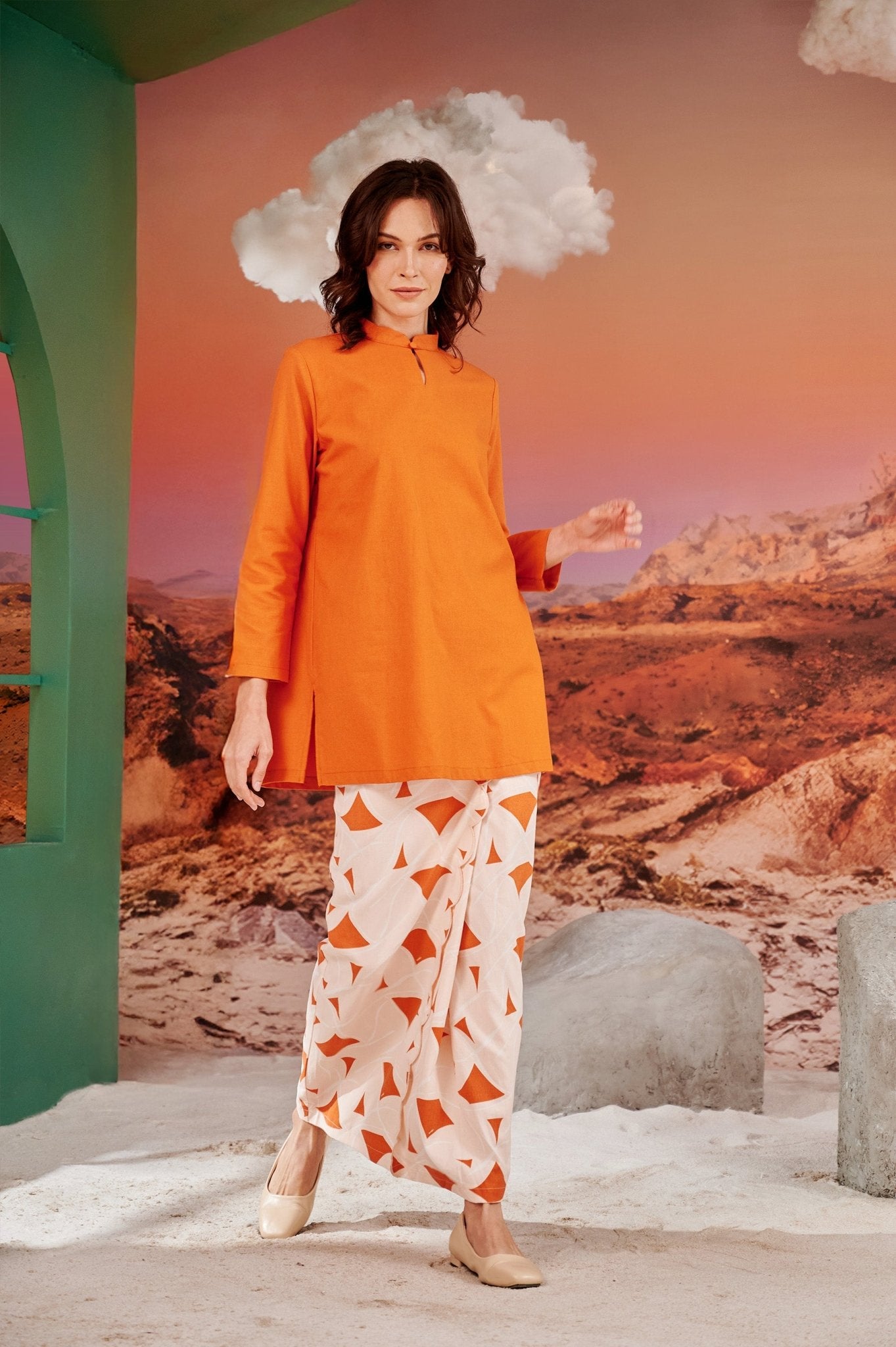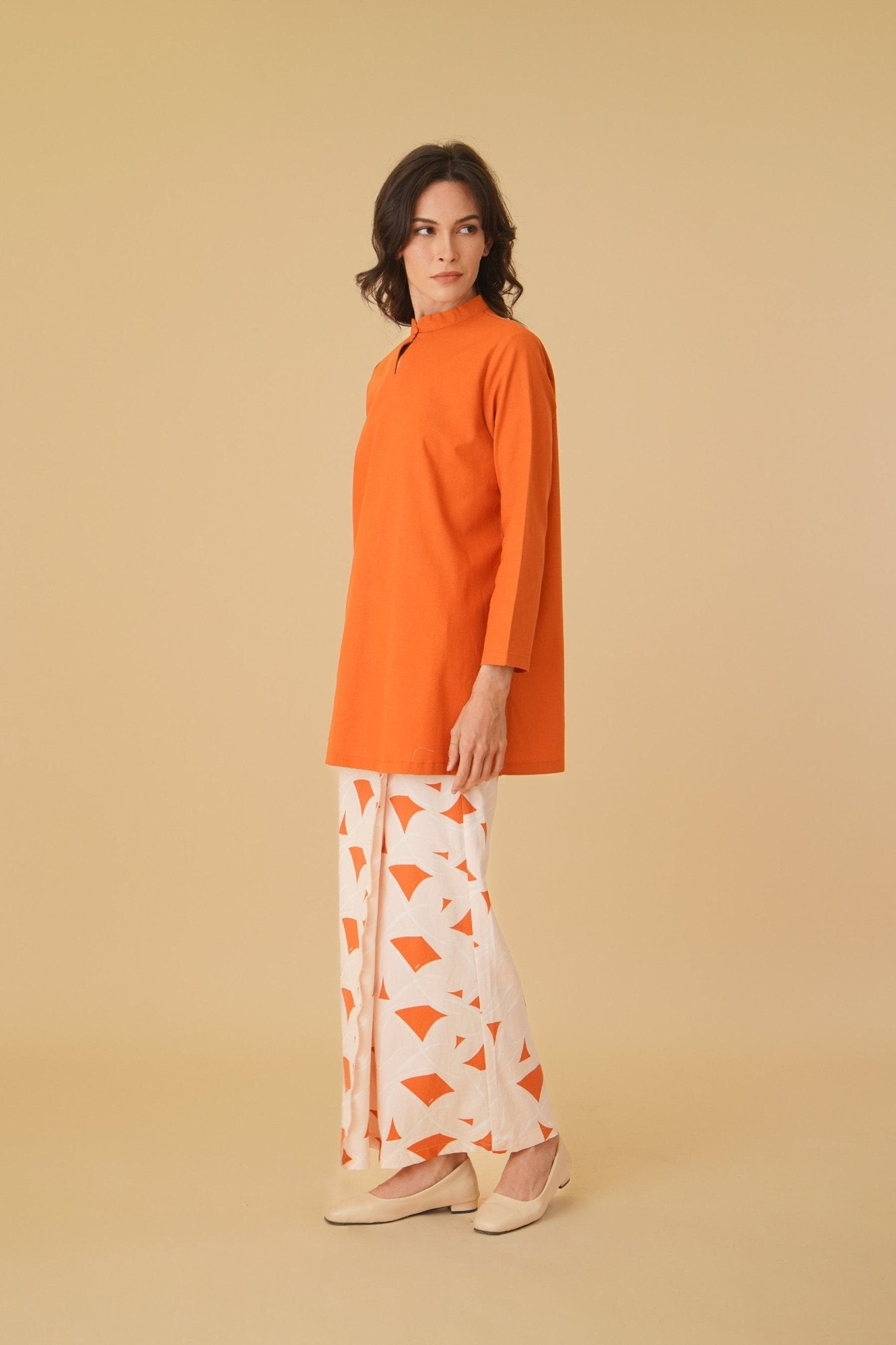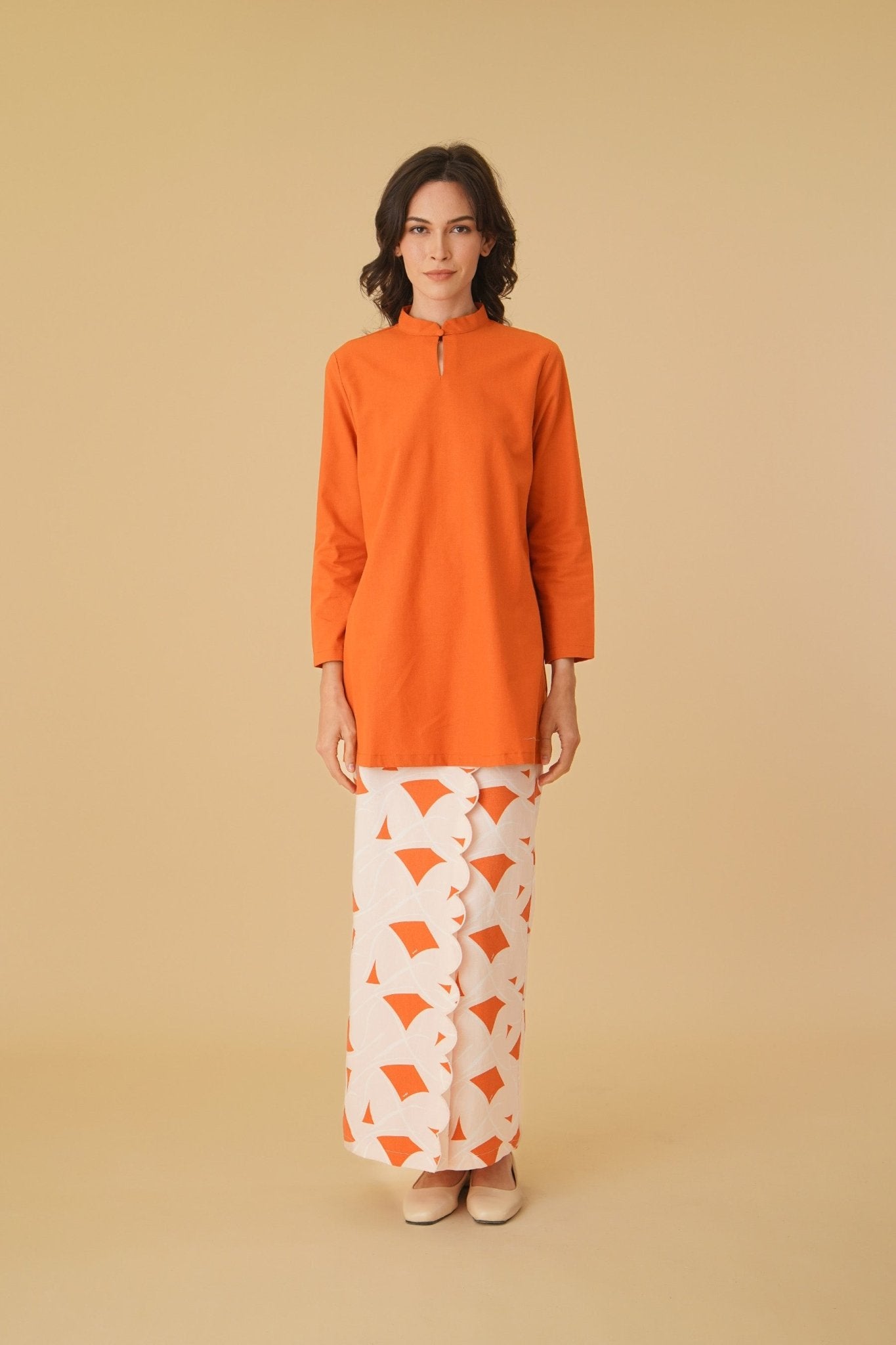 The Oasis Women Mandarin Collar Kurung Top Orange