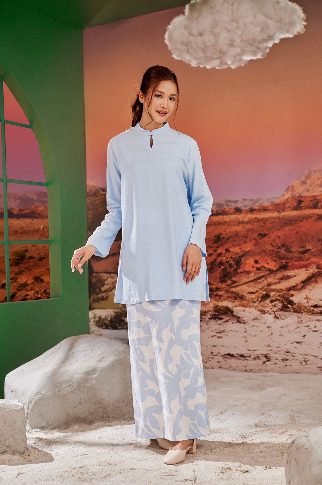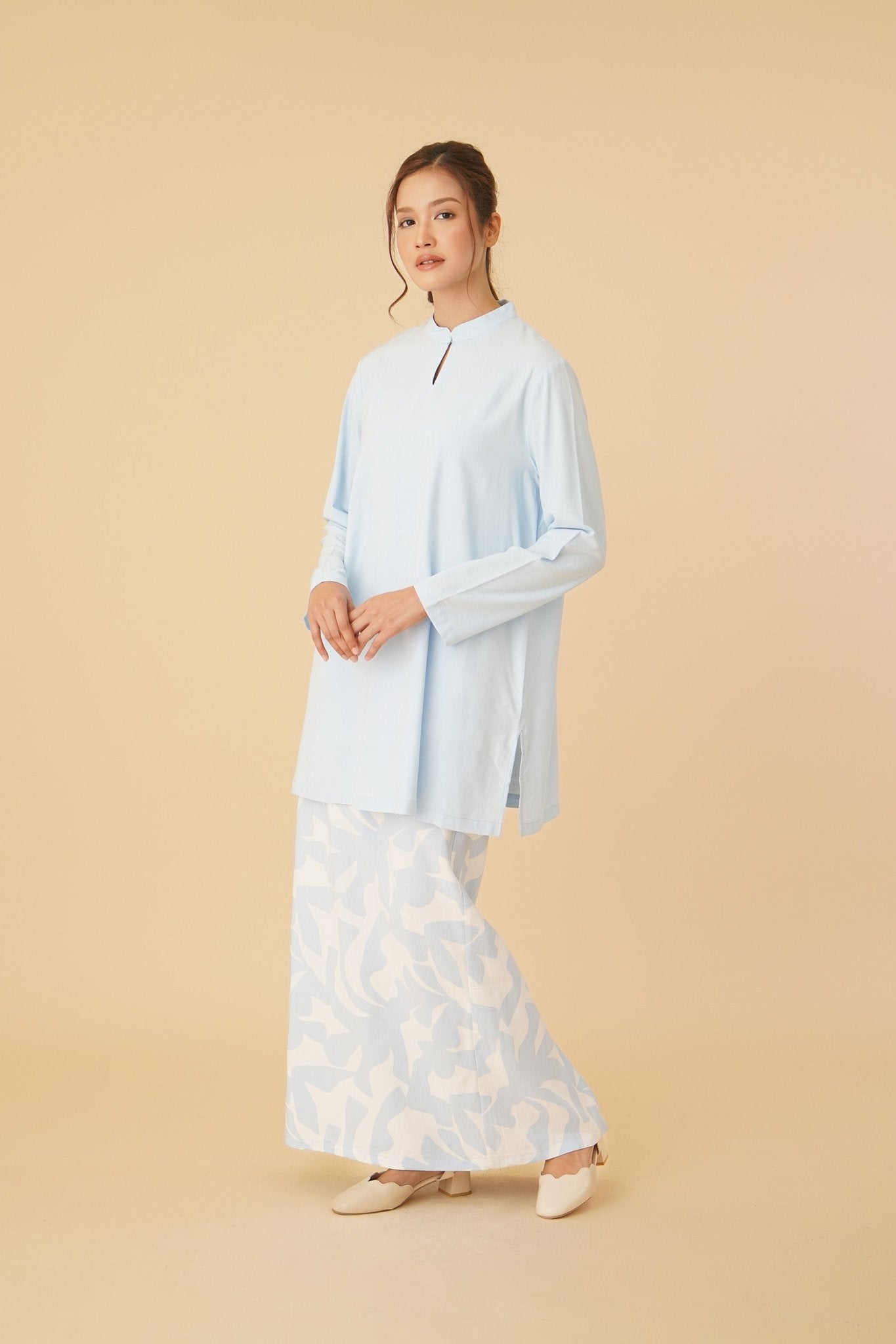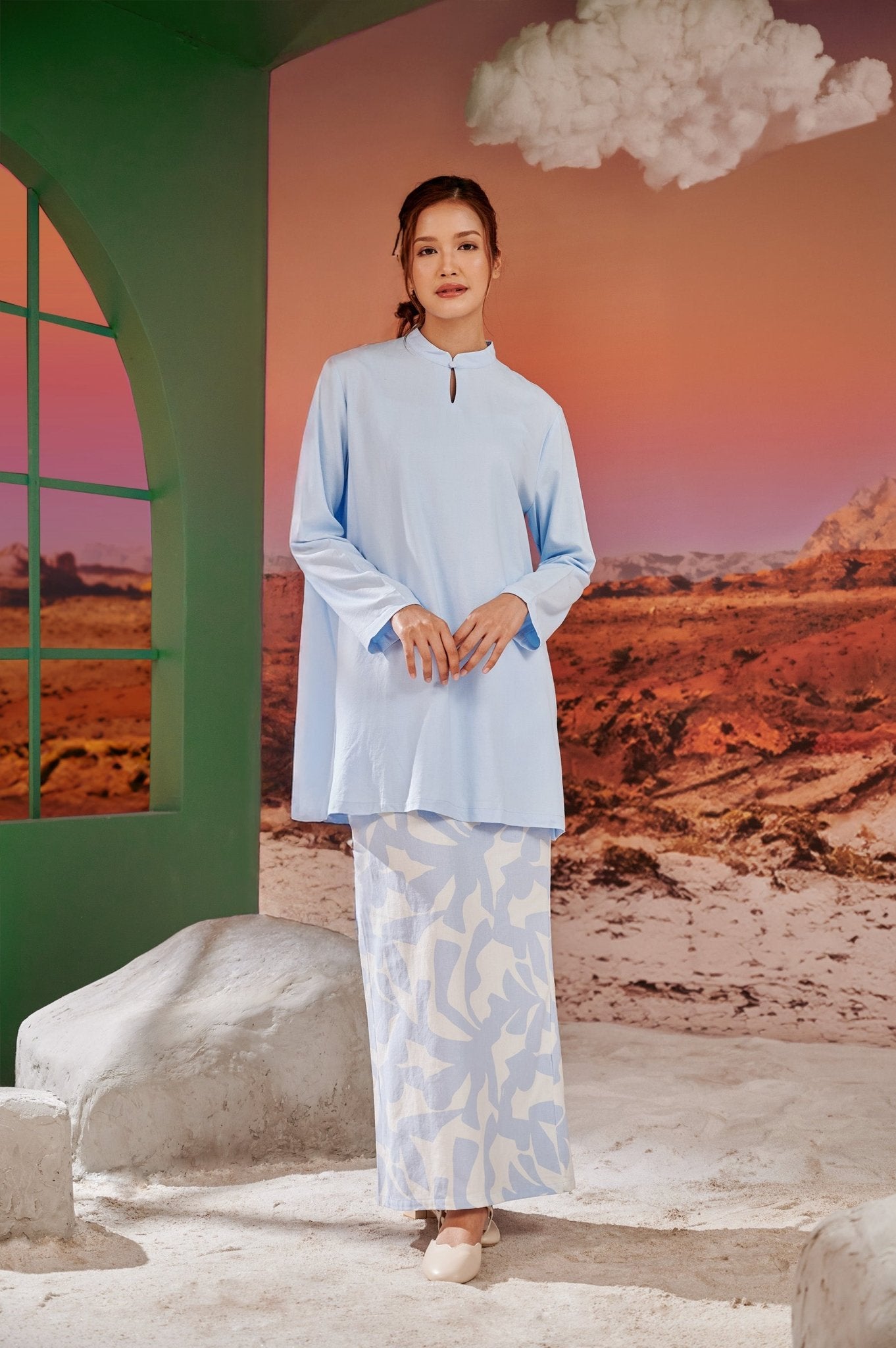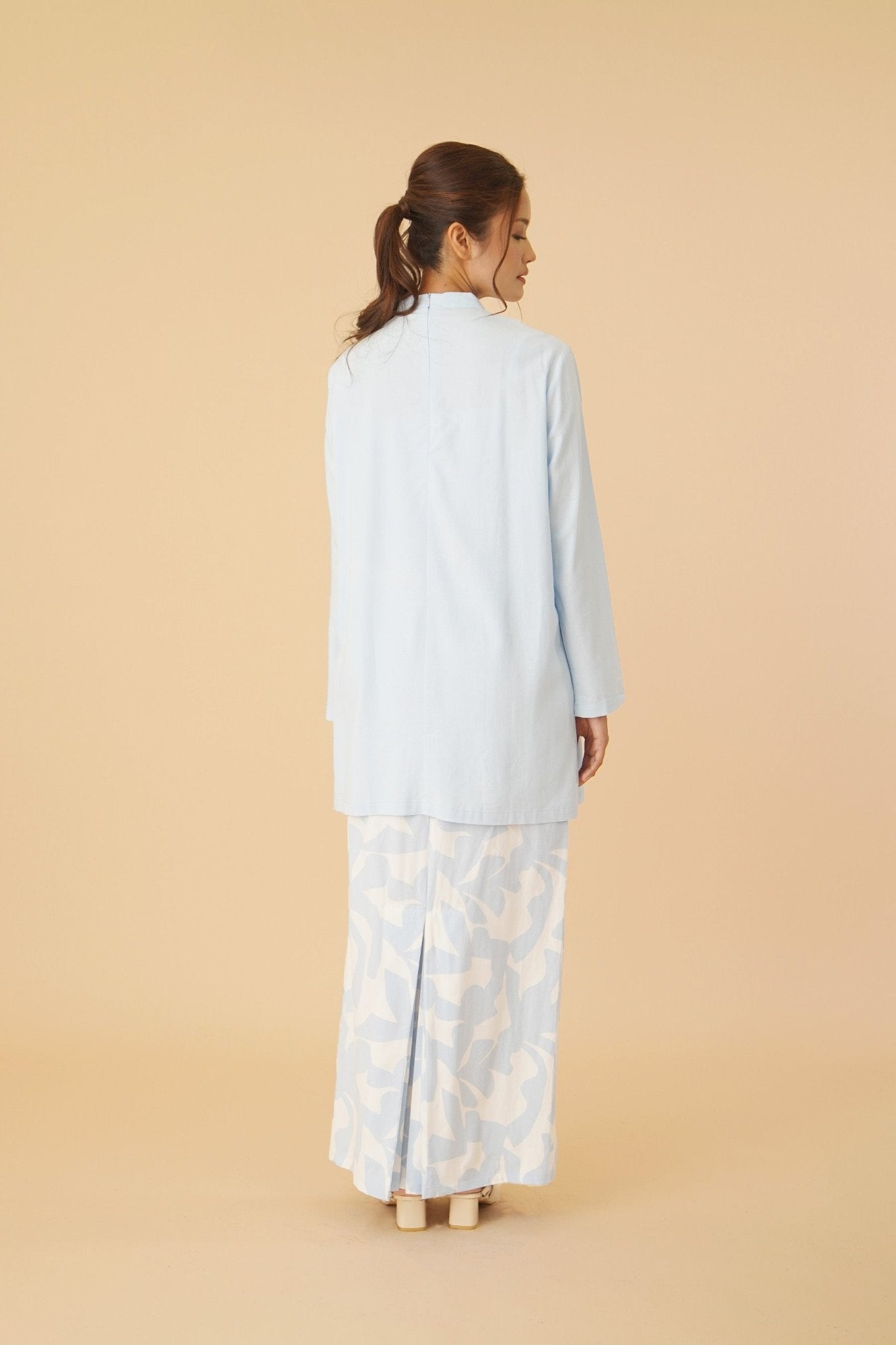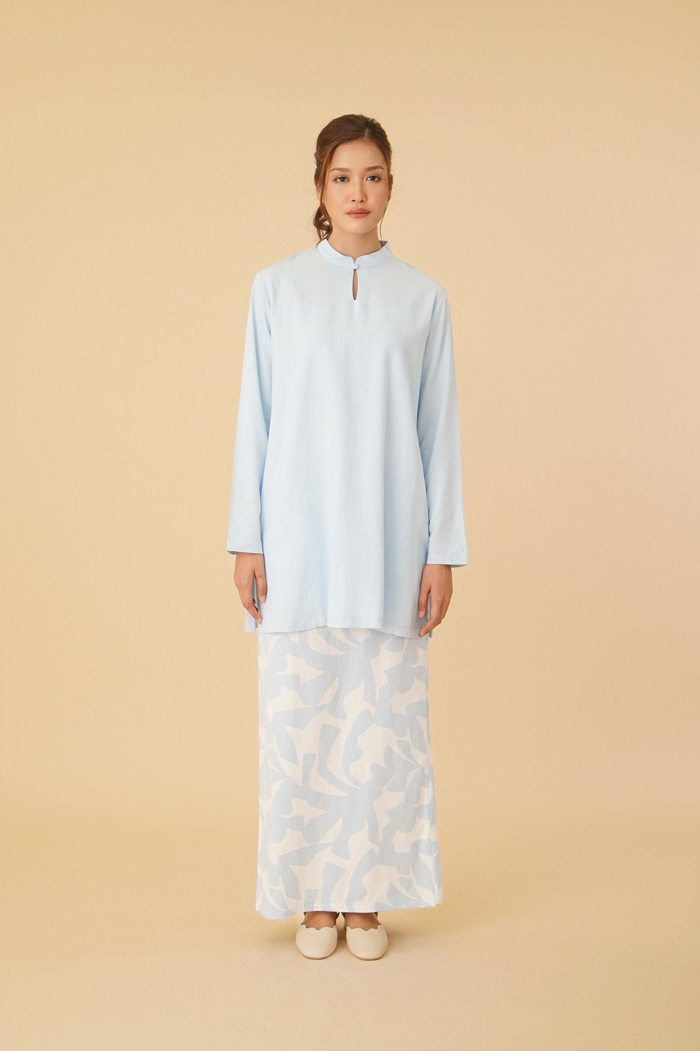 The Oasis Women Mandarin Collar Kurung Top Sky Blue