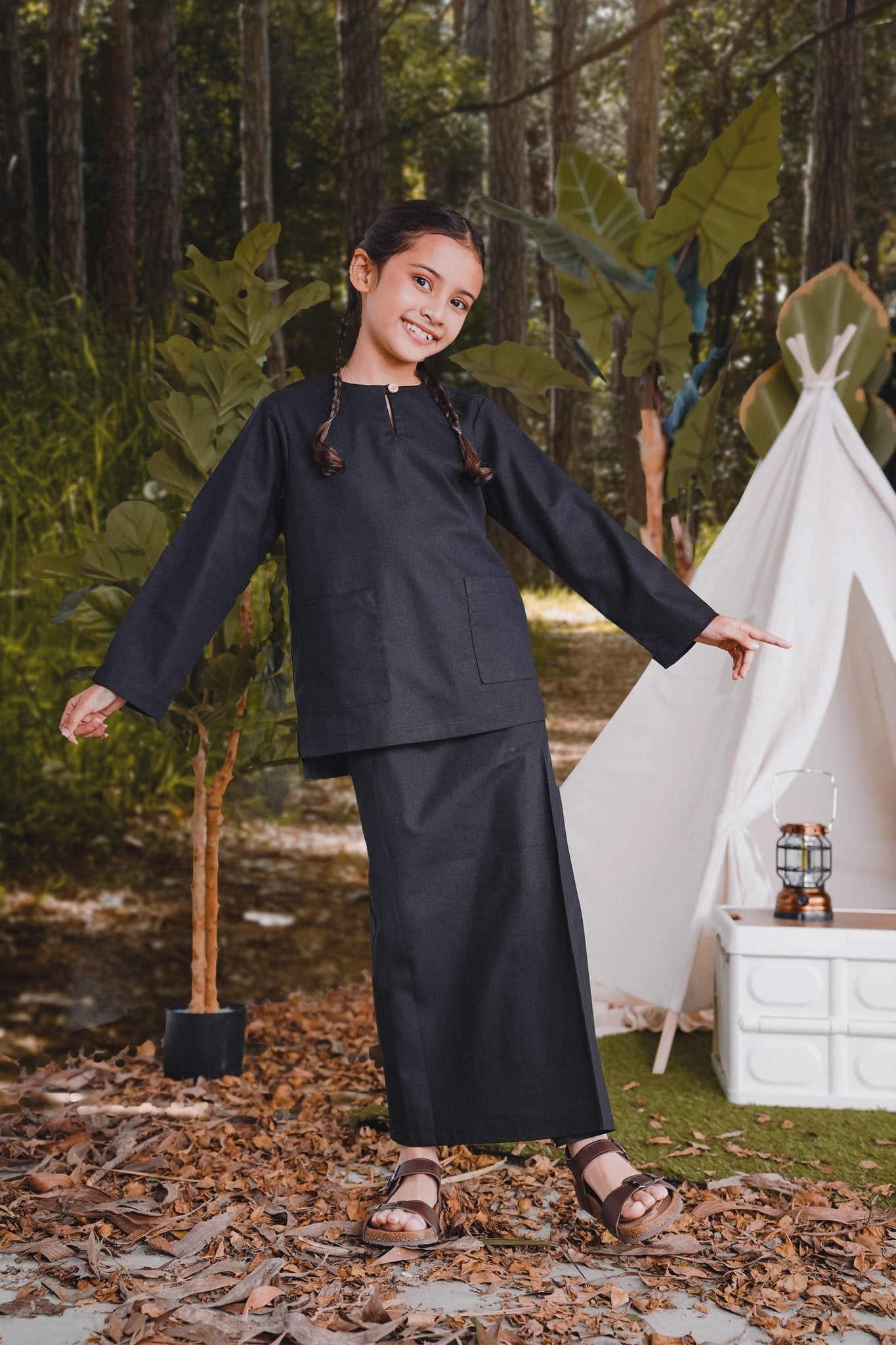 The Rimba Raya Girl Kurung Top Black
