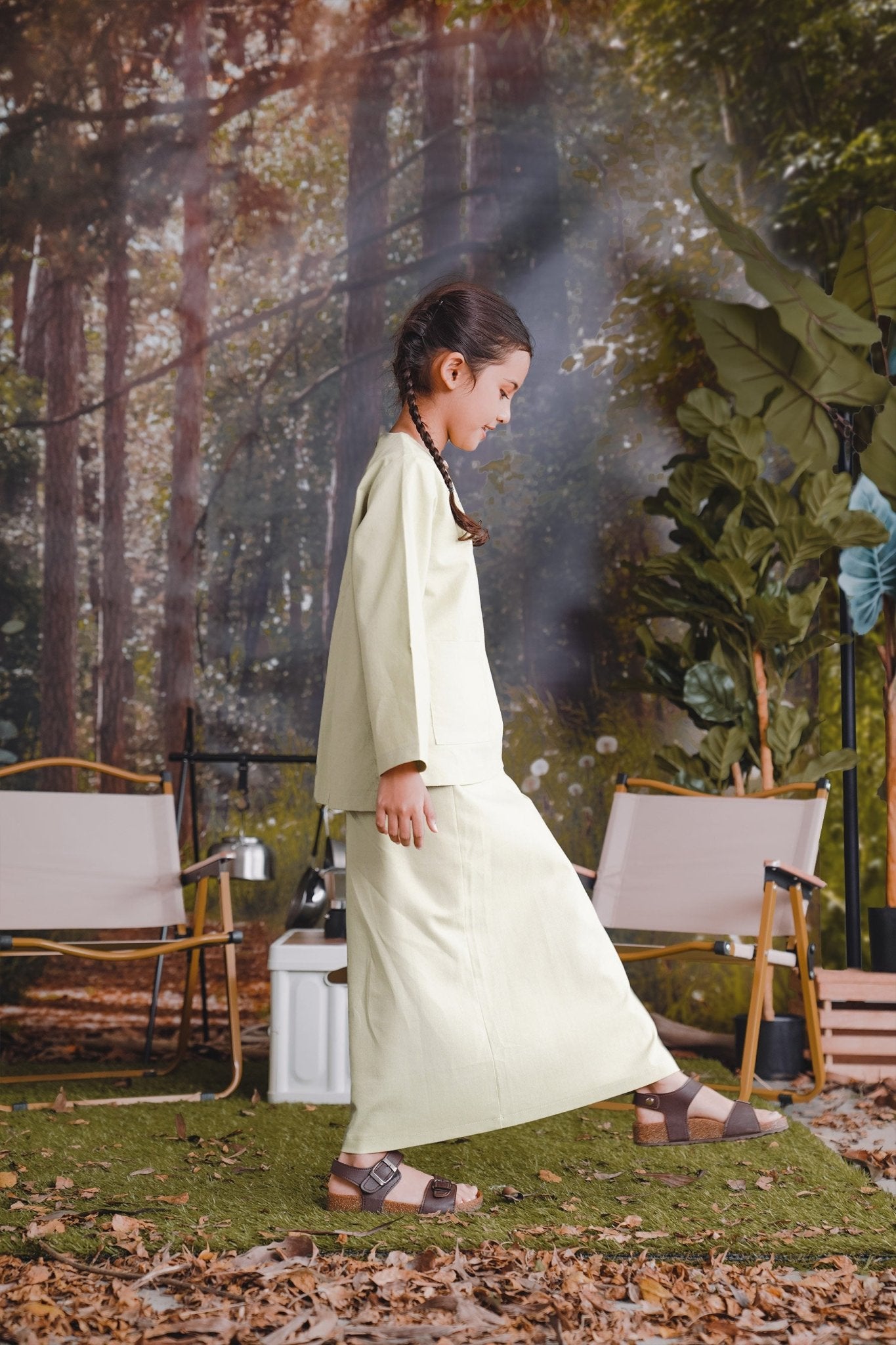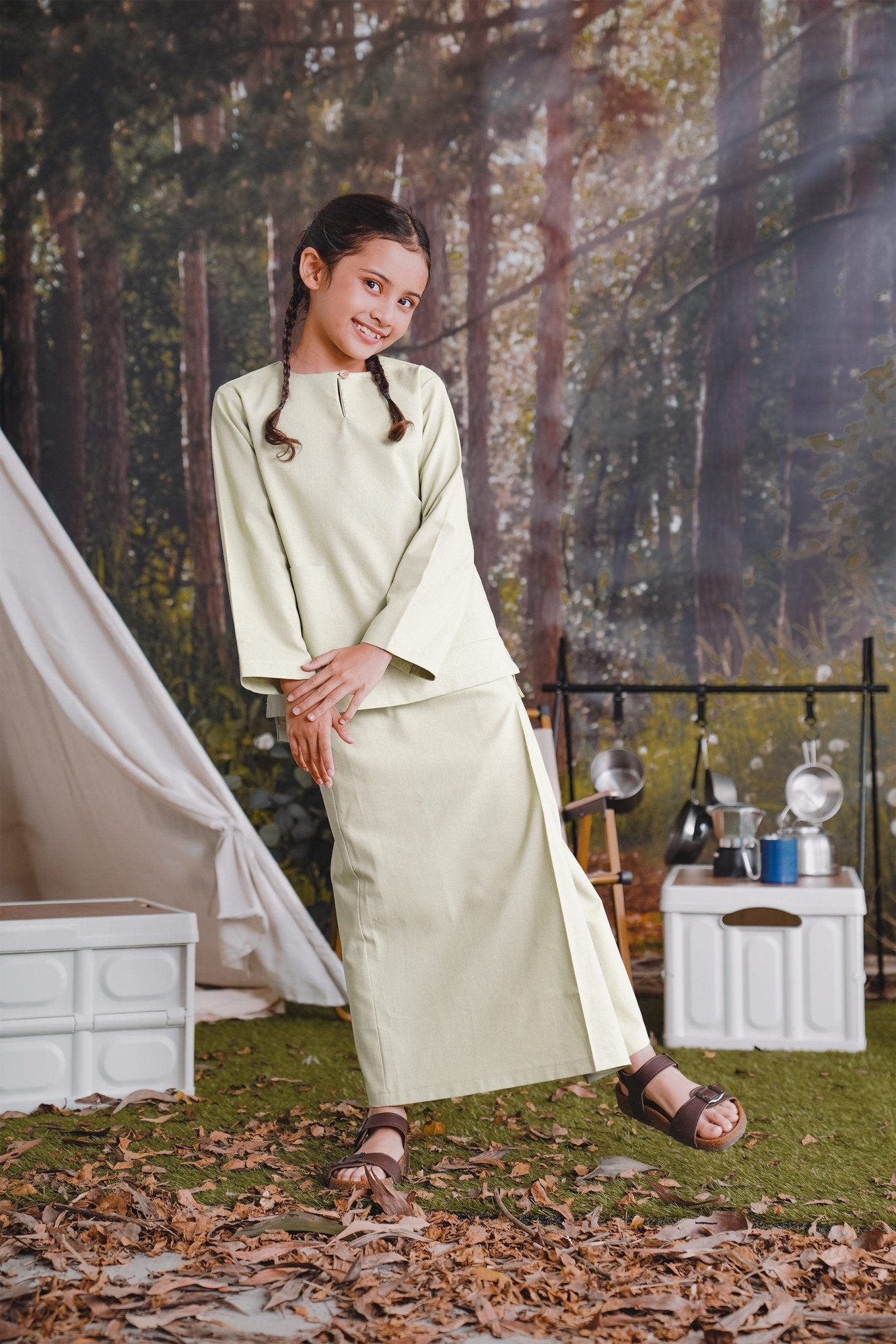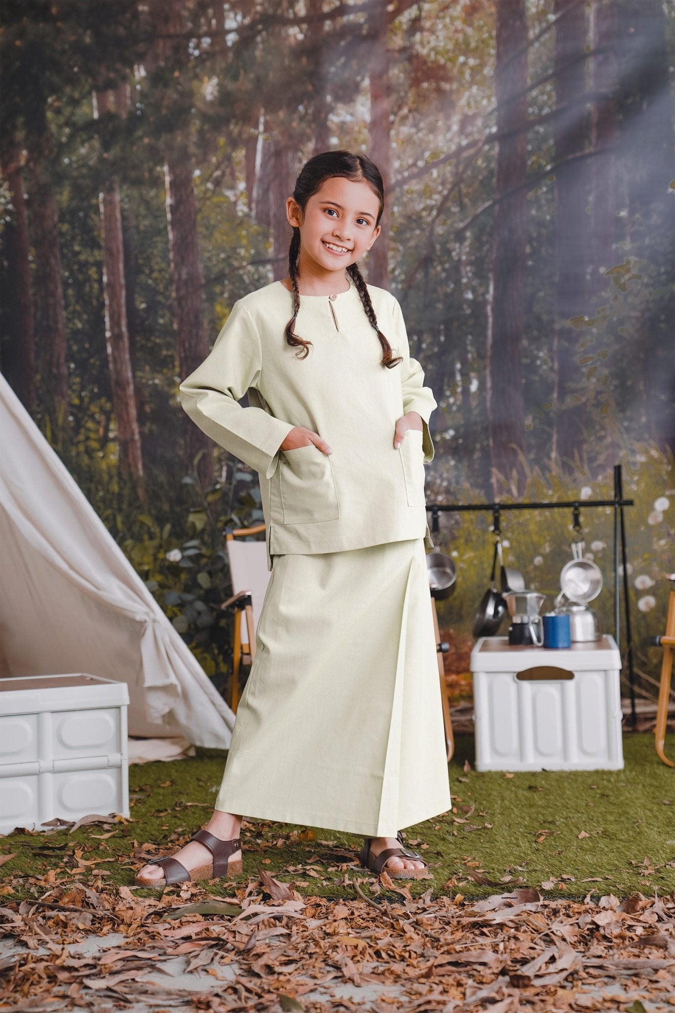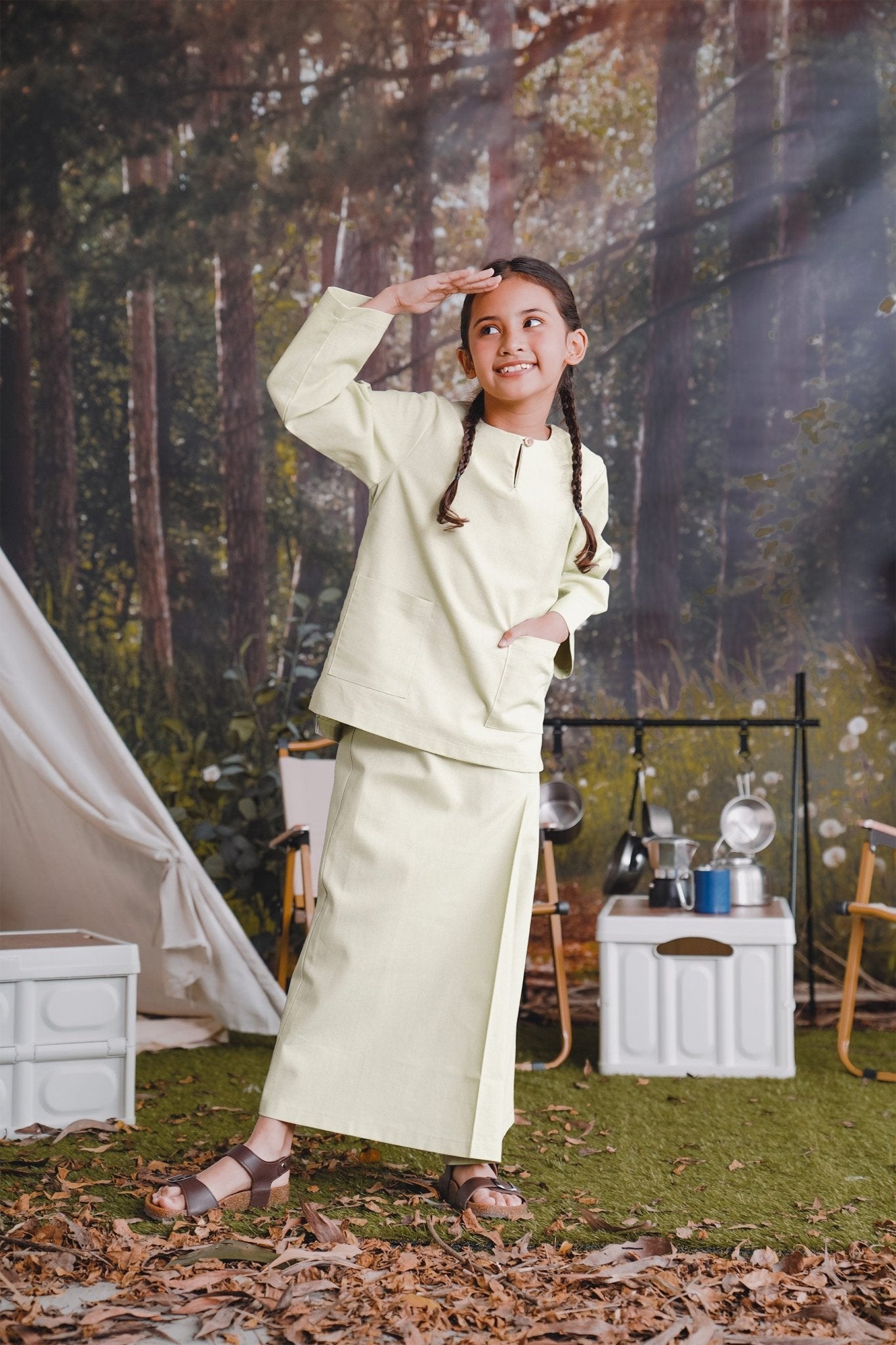 The Rimba Raya Girl Kurung Top Matcha Green