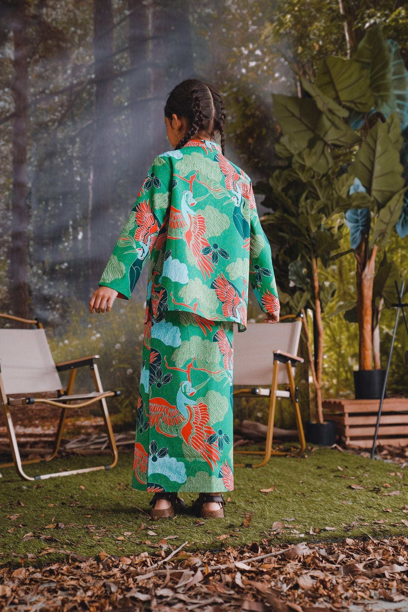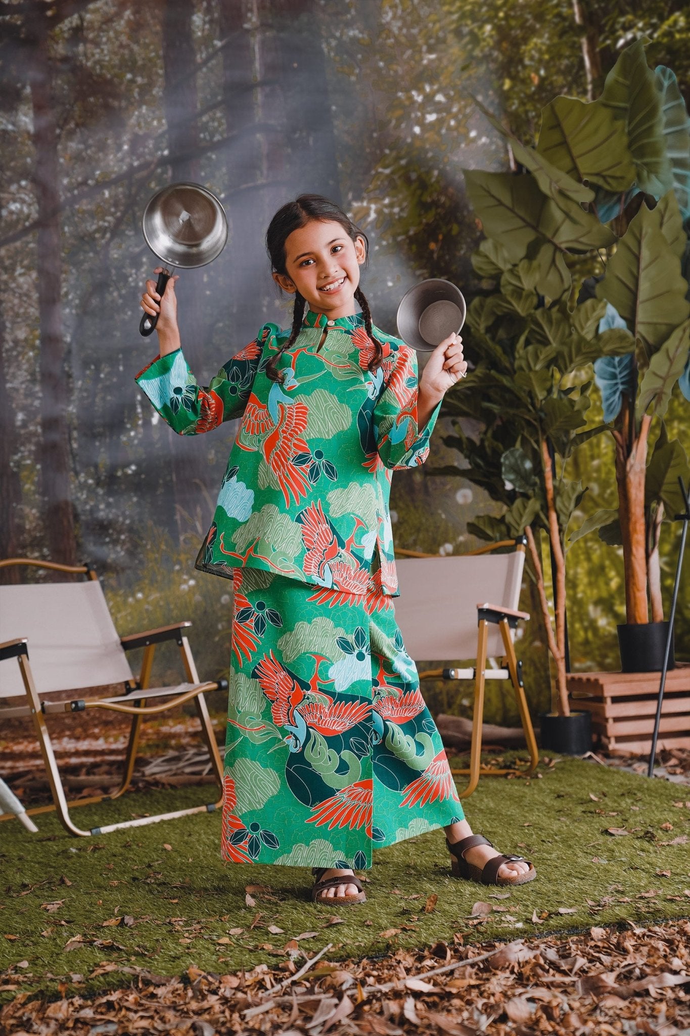 The Rimba Raya Girl Mandarin Collar Kurung Top Rimba Print