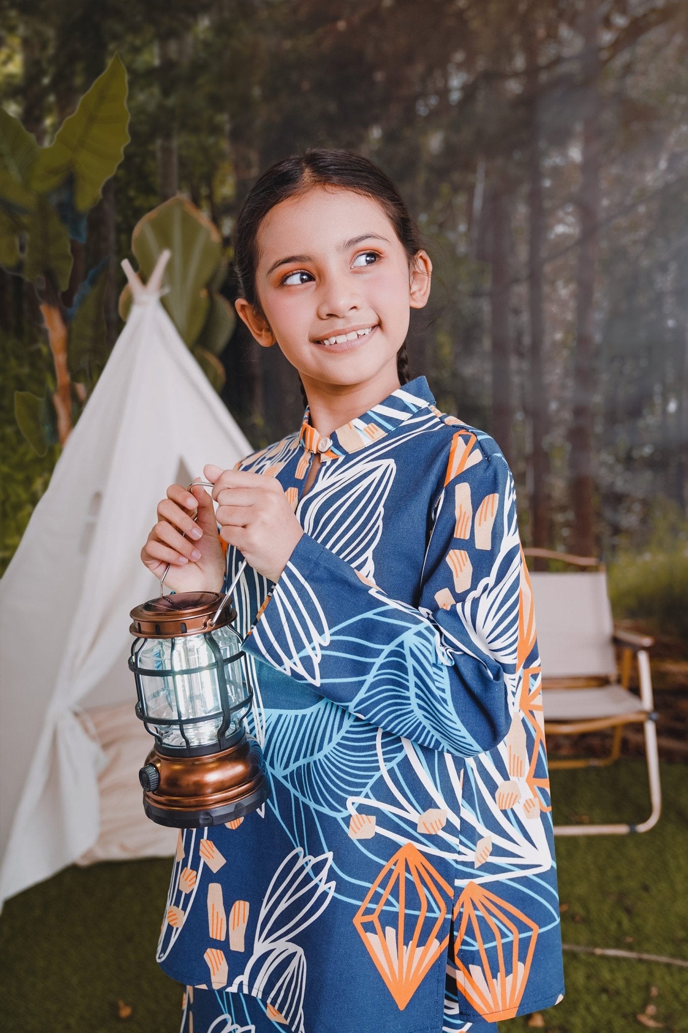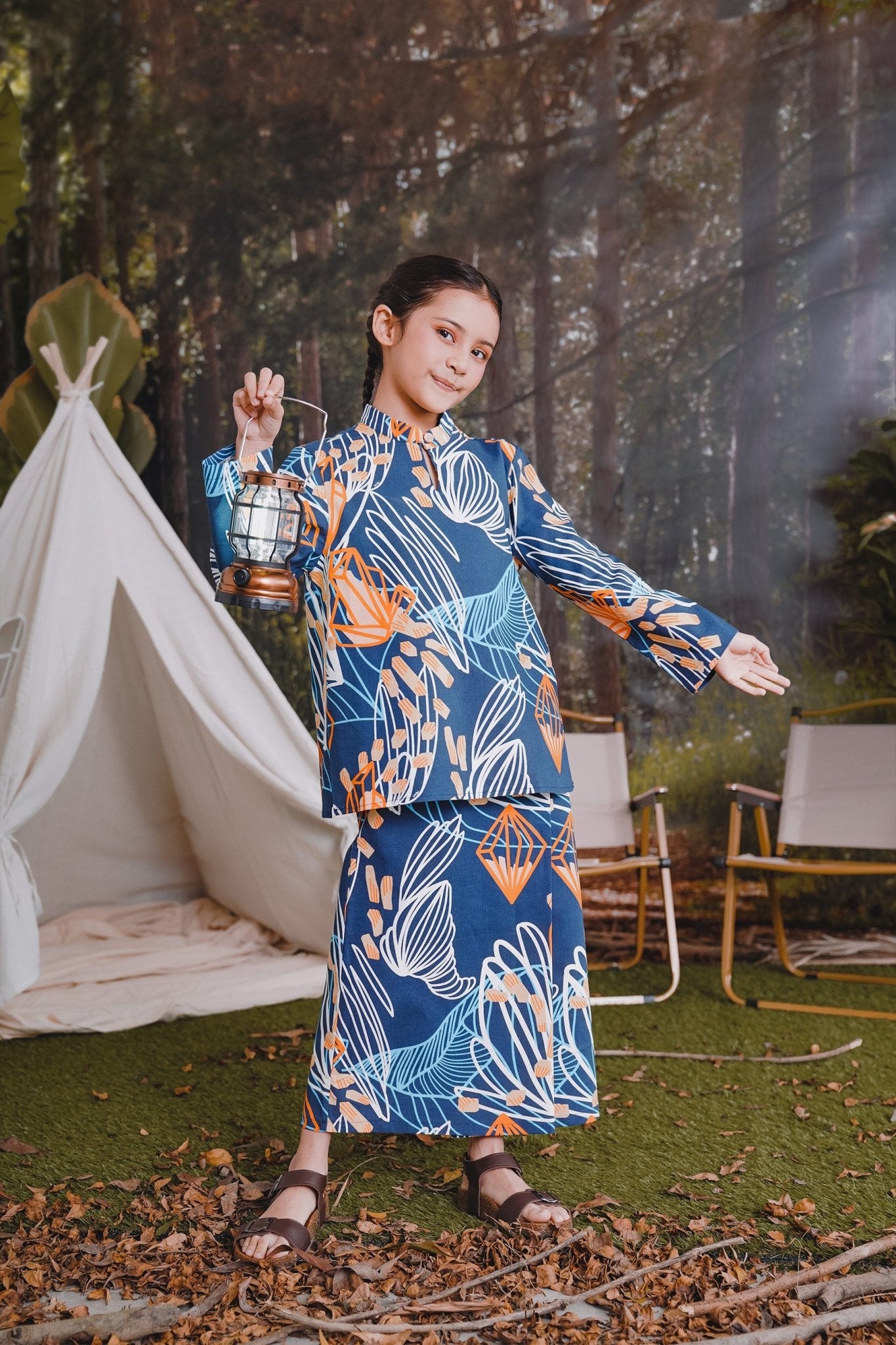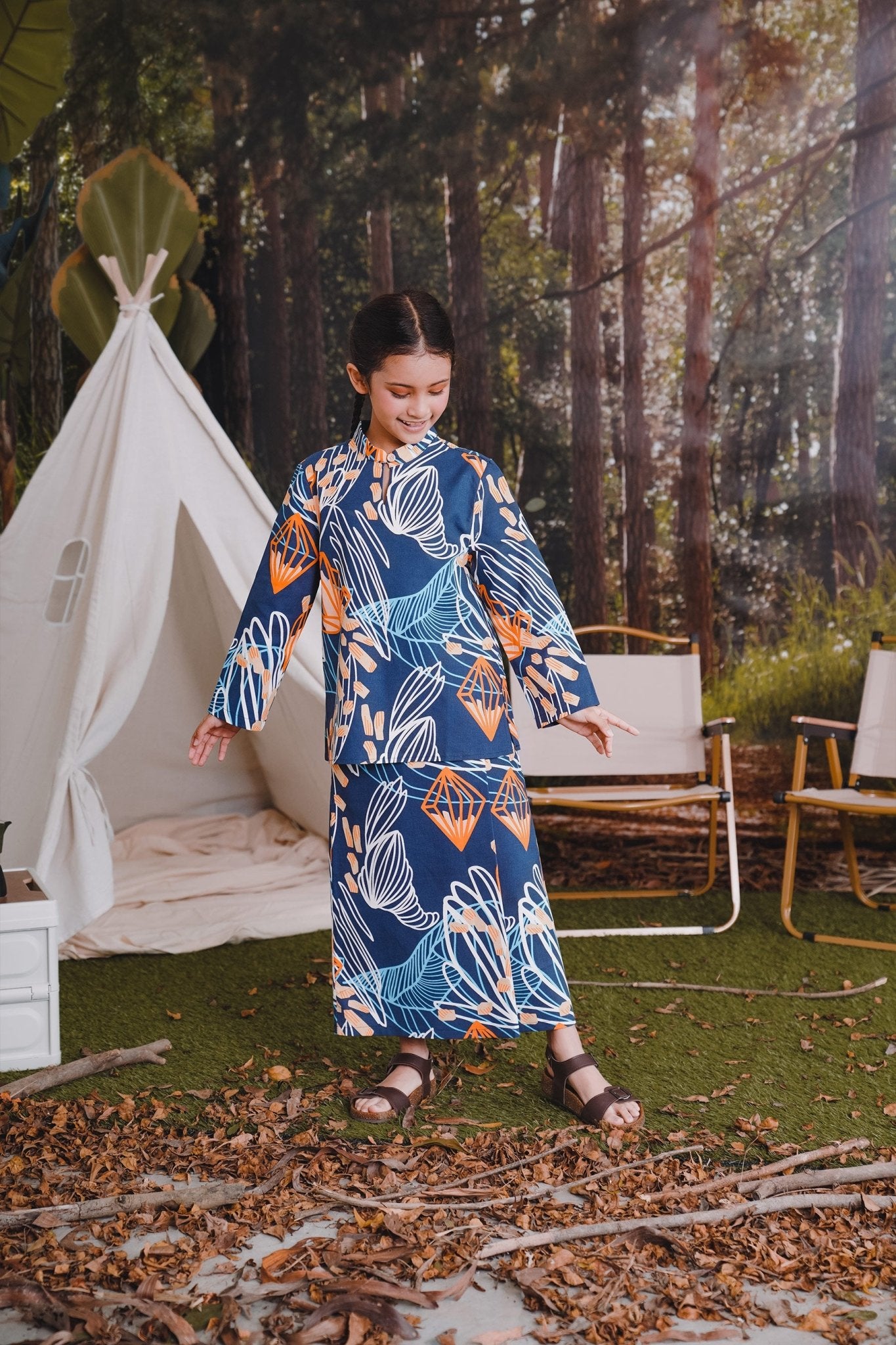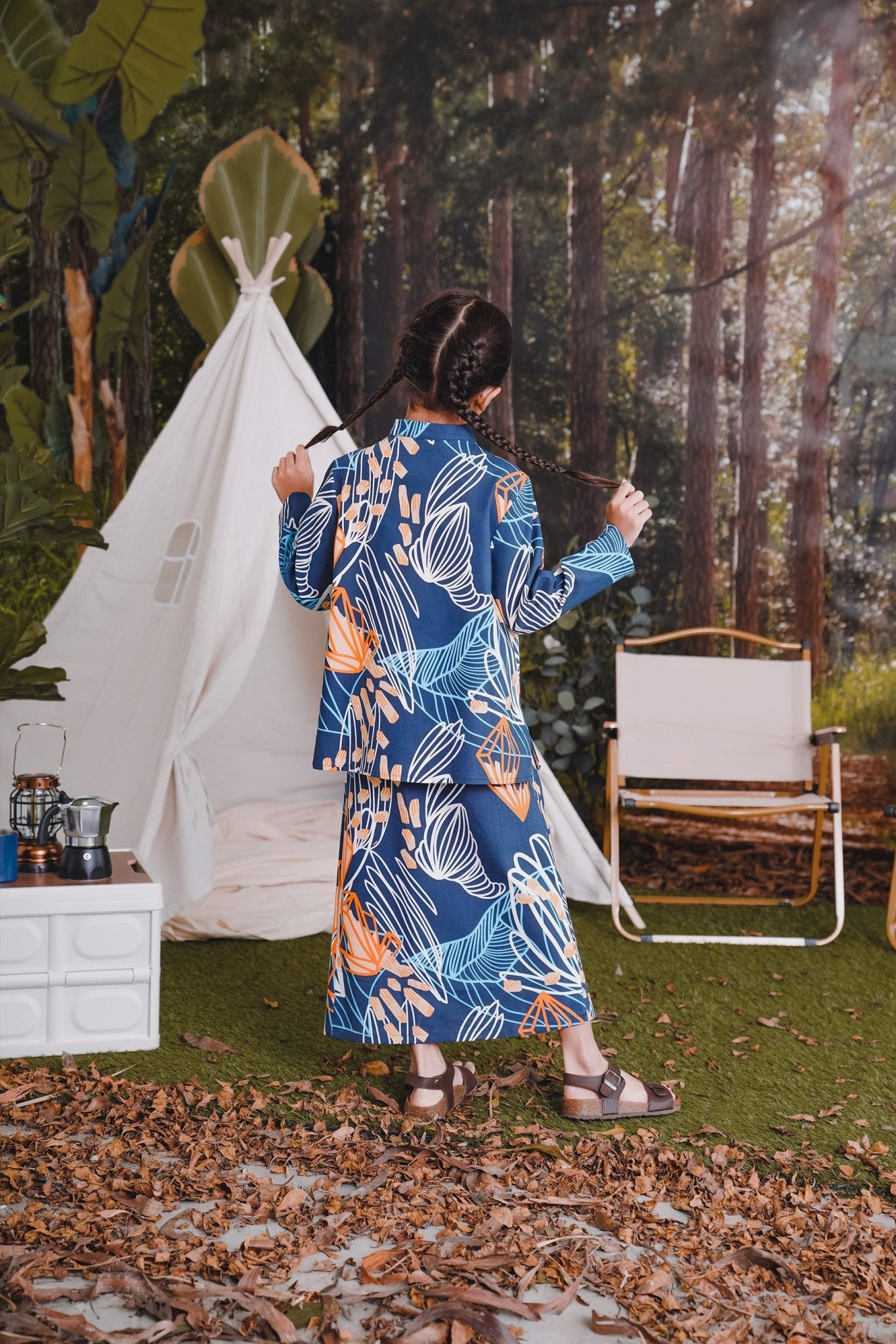 The Rimba Raya Girl Mandarin Collar Kurung Top Senja Print