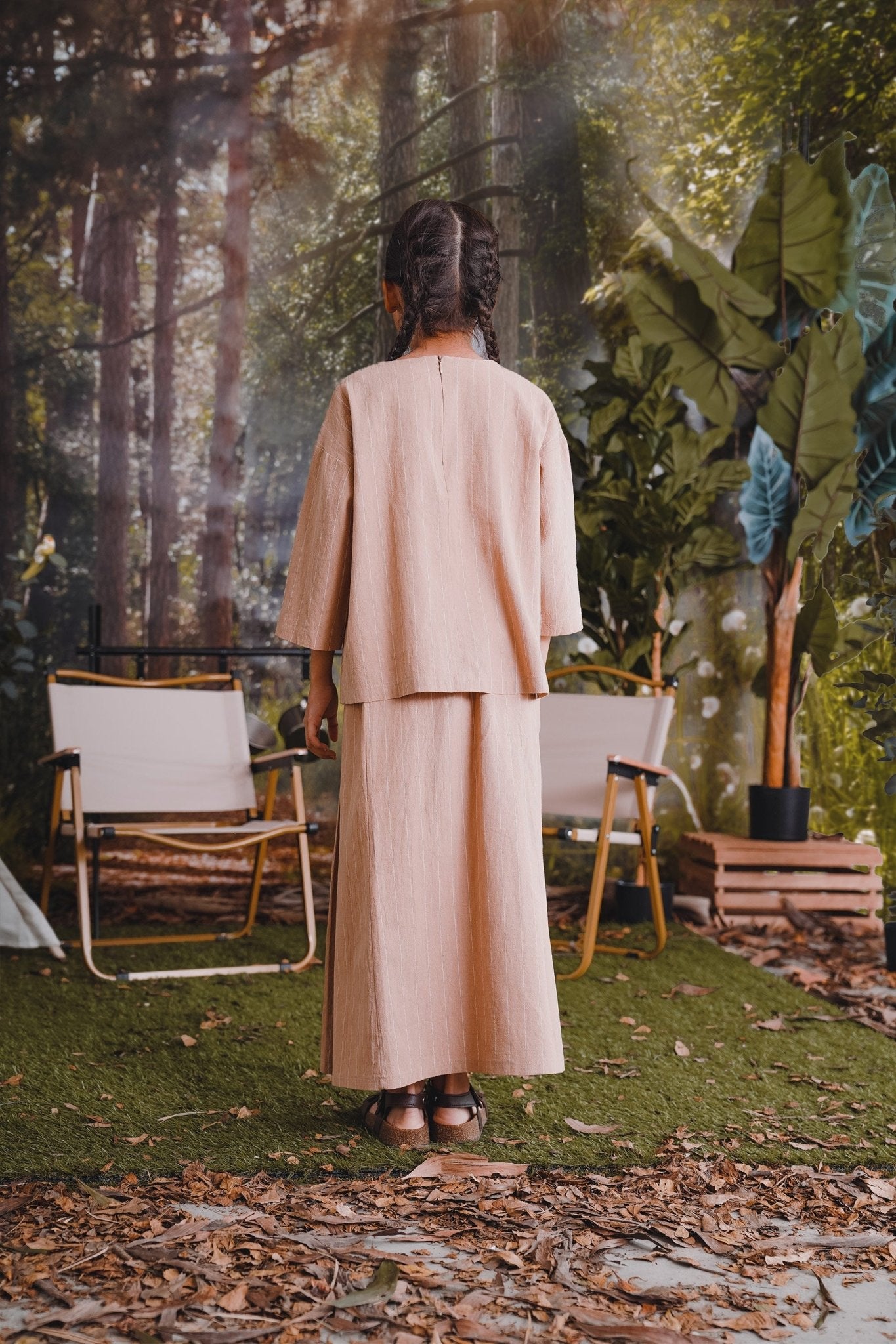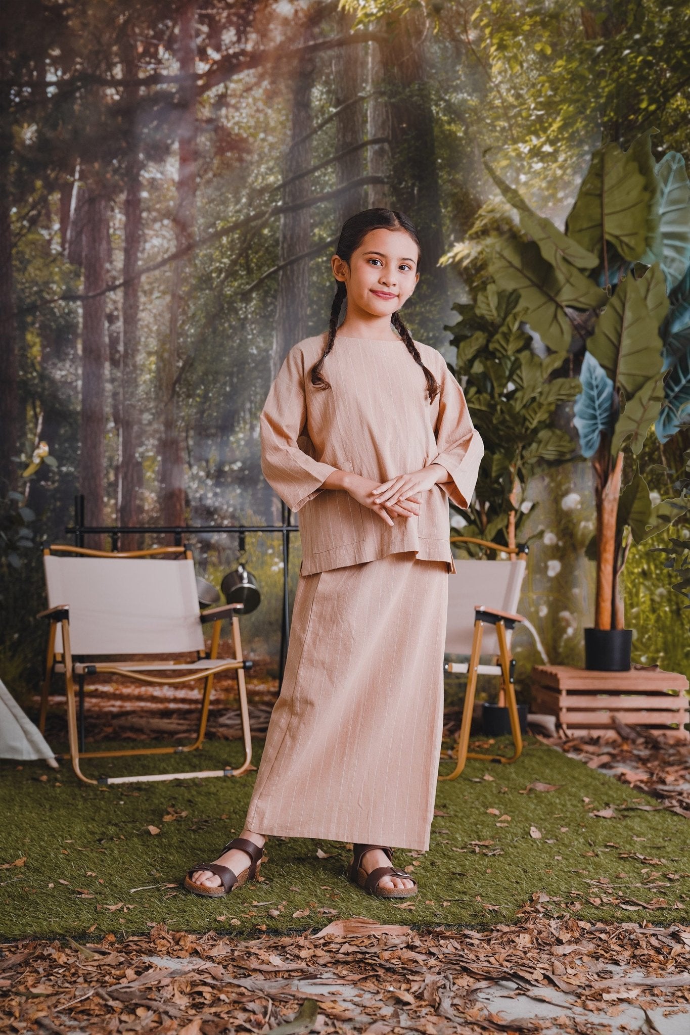 The Rimba Raya Girl Pair Pockets Boxy Blouse Caramel Stripes