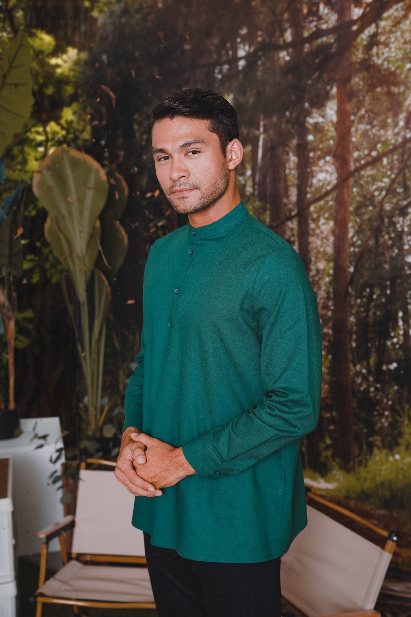 The Rimba Raya Men Collar Kurta Dark Green