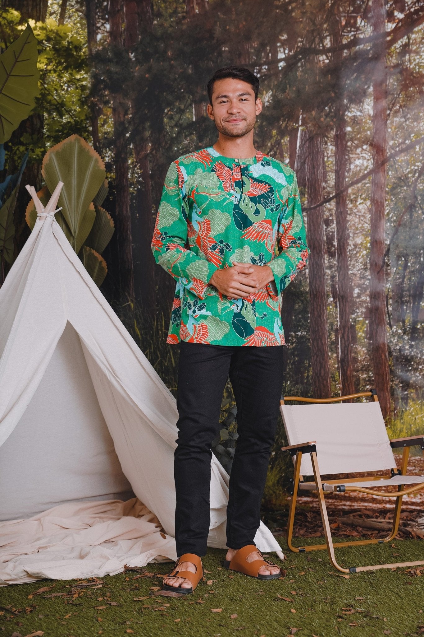 The Rimba Raya Men Modern Teluk Belanga Top Rimba Print