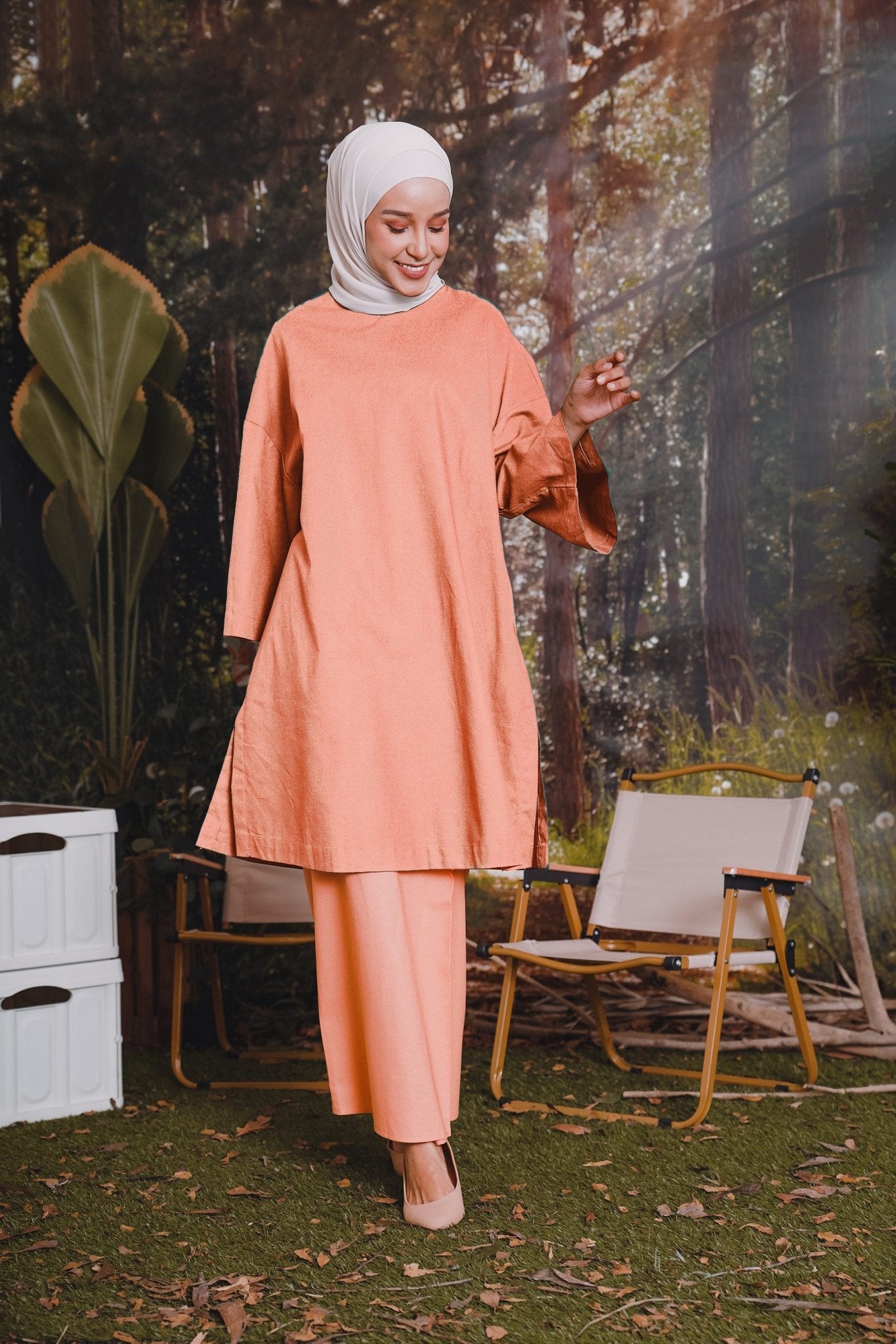 The Rimba Raya Women Long Kurung Blouse Salmon
