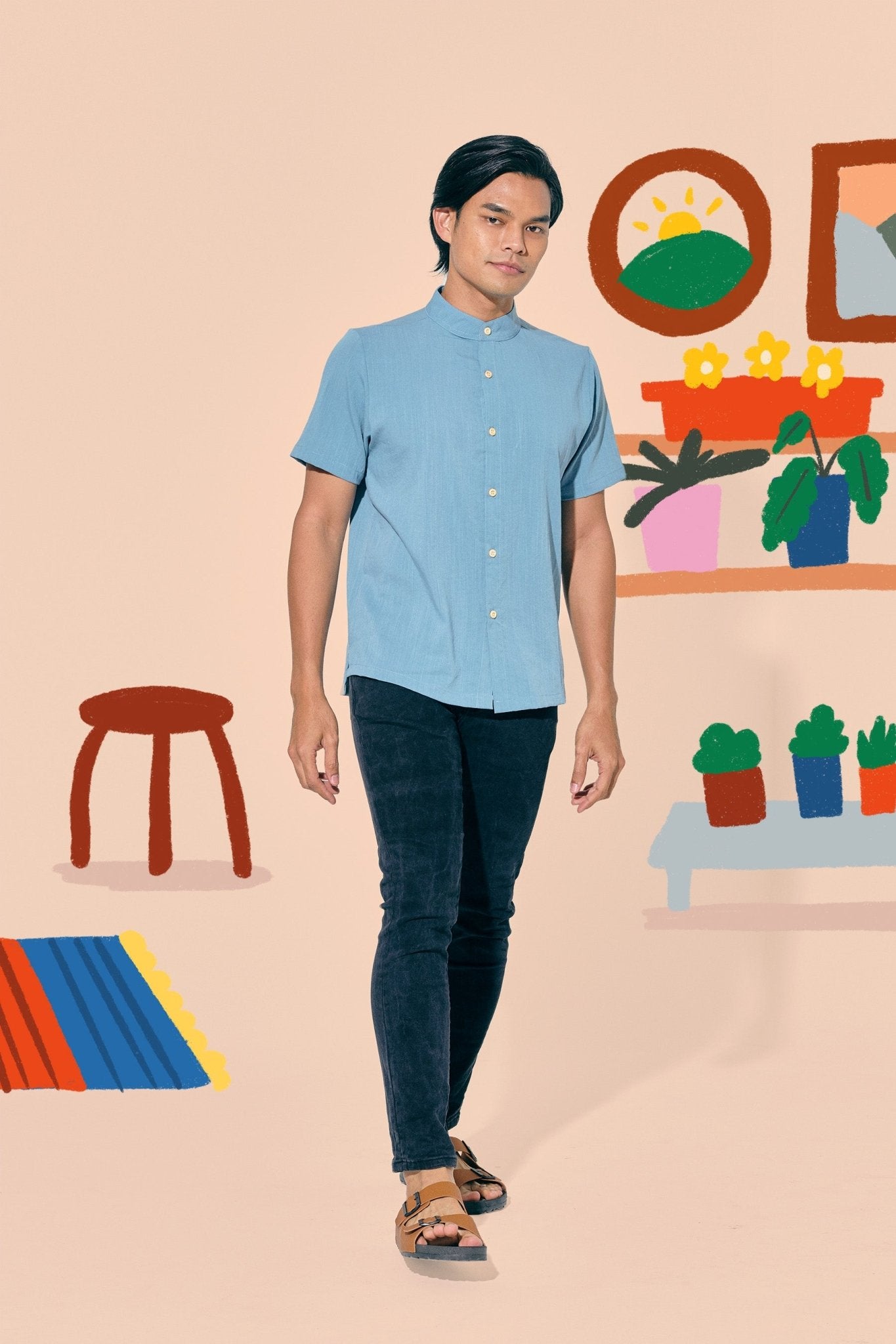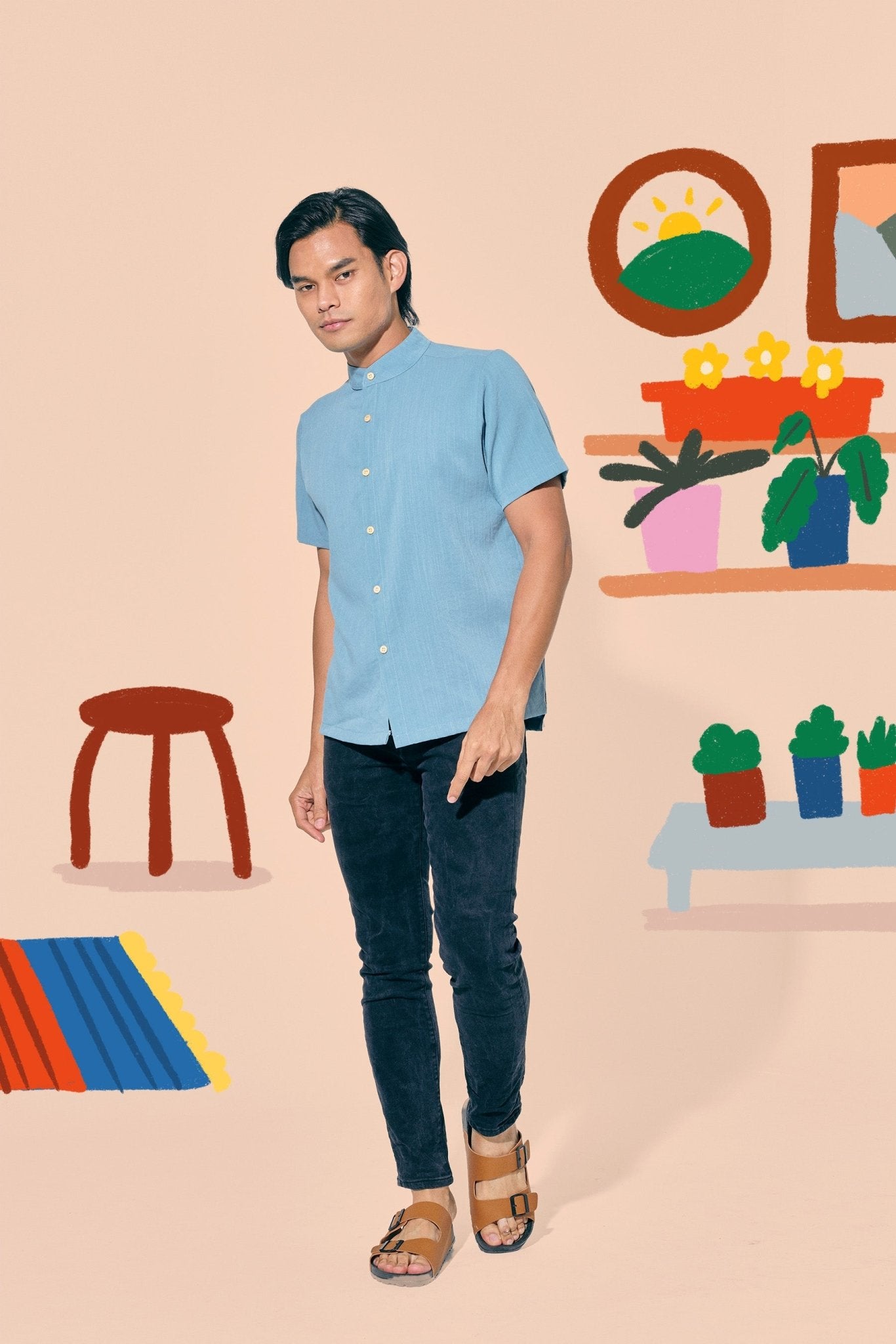 The Ruma Riang Men Short Sleeves Shirt Blue