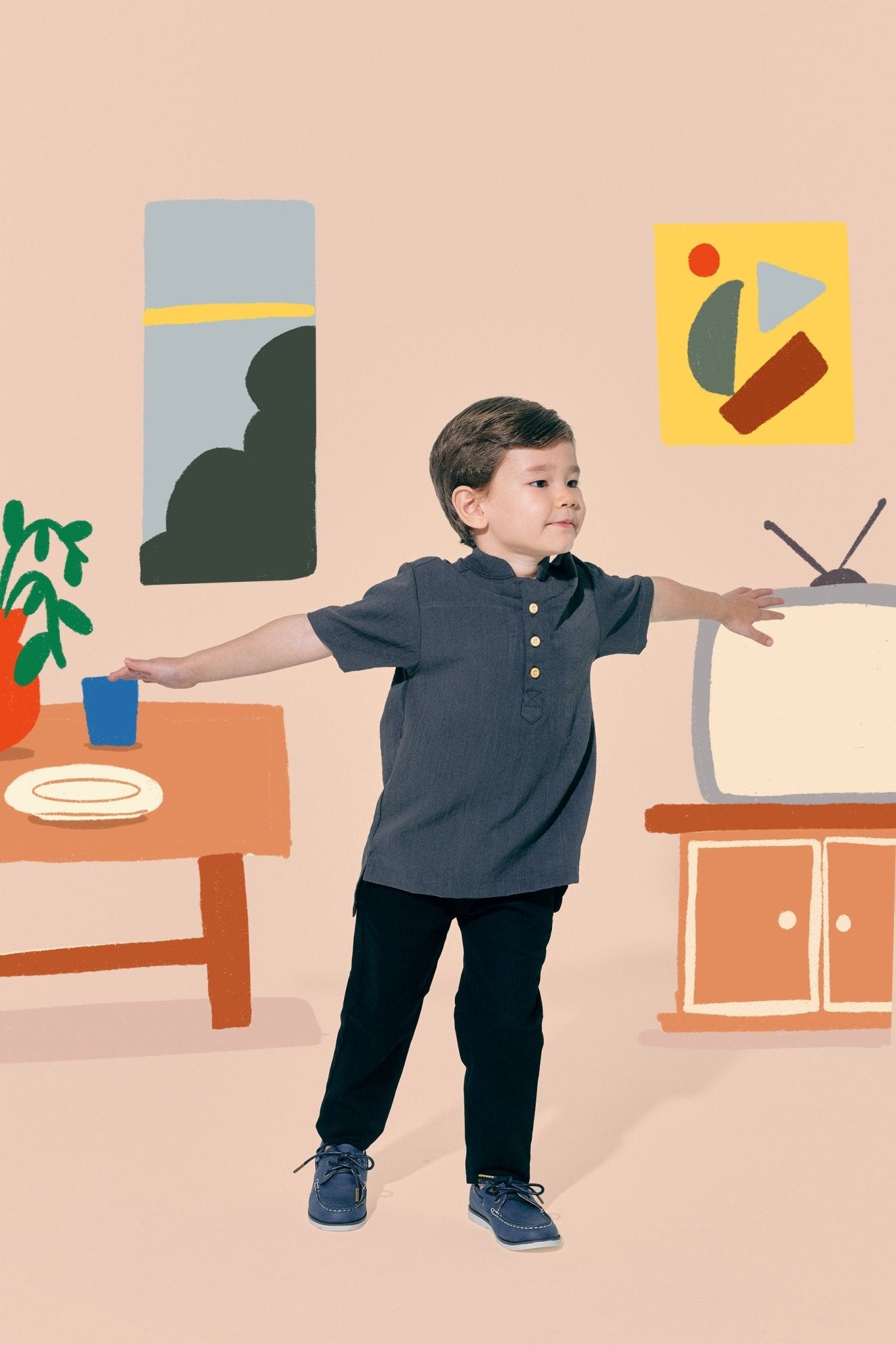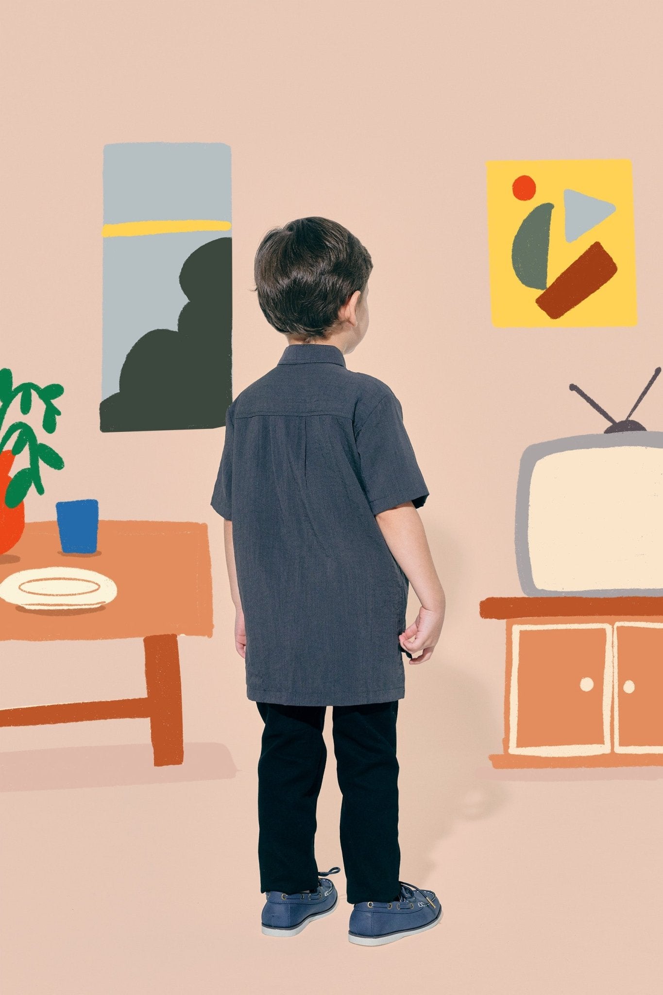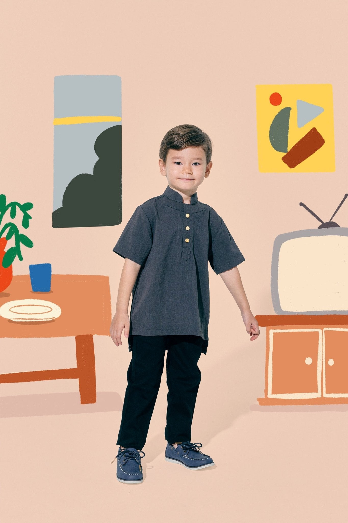 The Ruma Riang Modern Short Sleeves Shirt Dark Grey