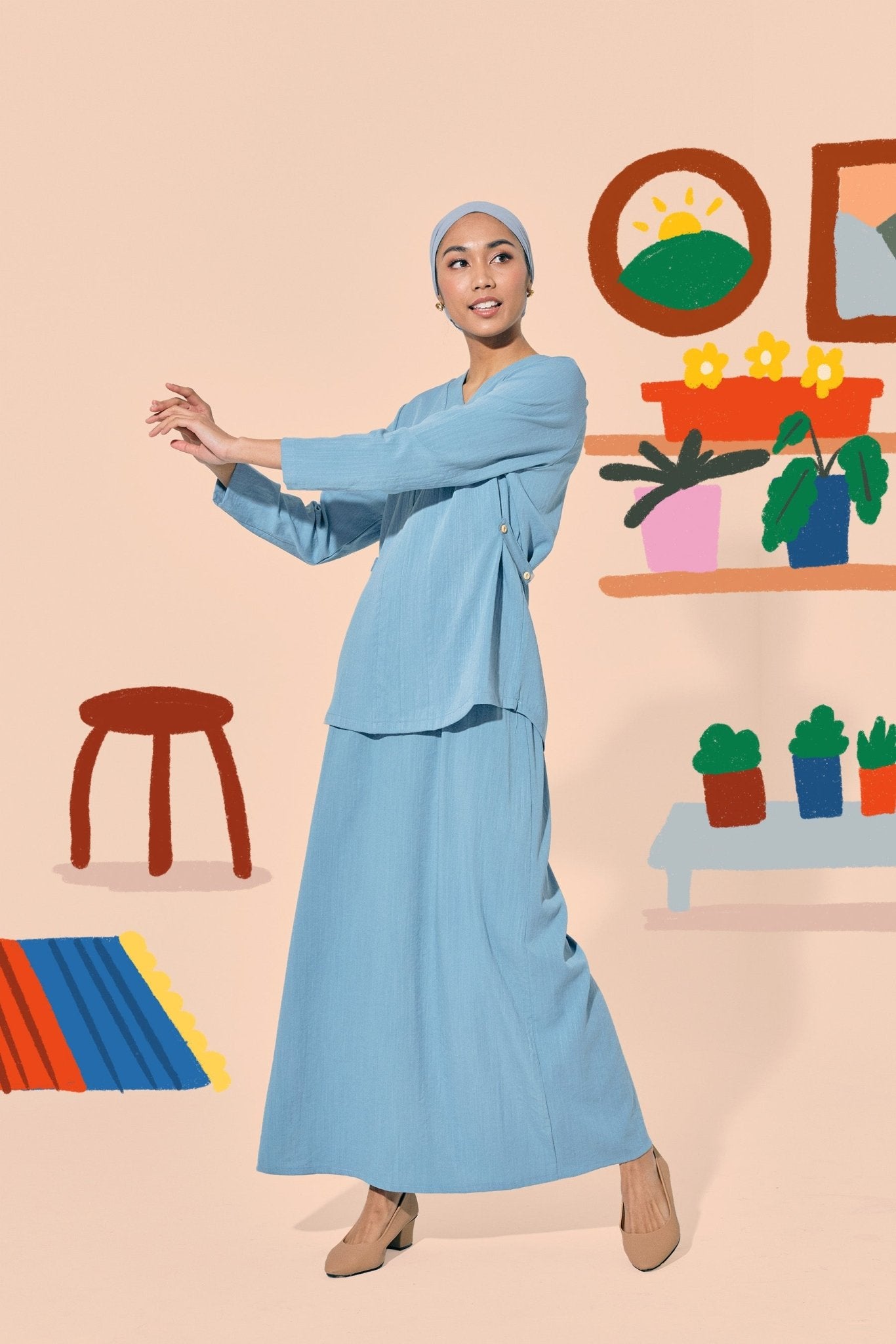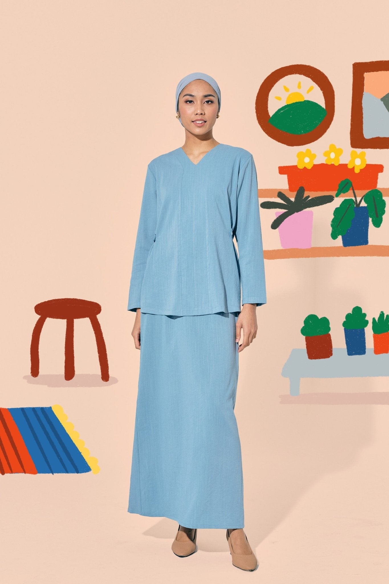 The Ruma Riang Women Kebaya Top Blue