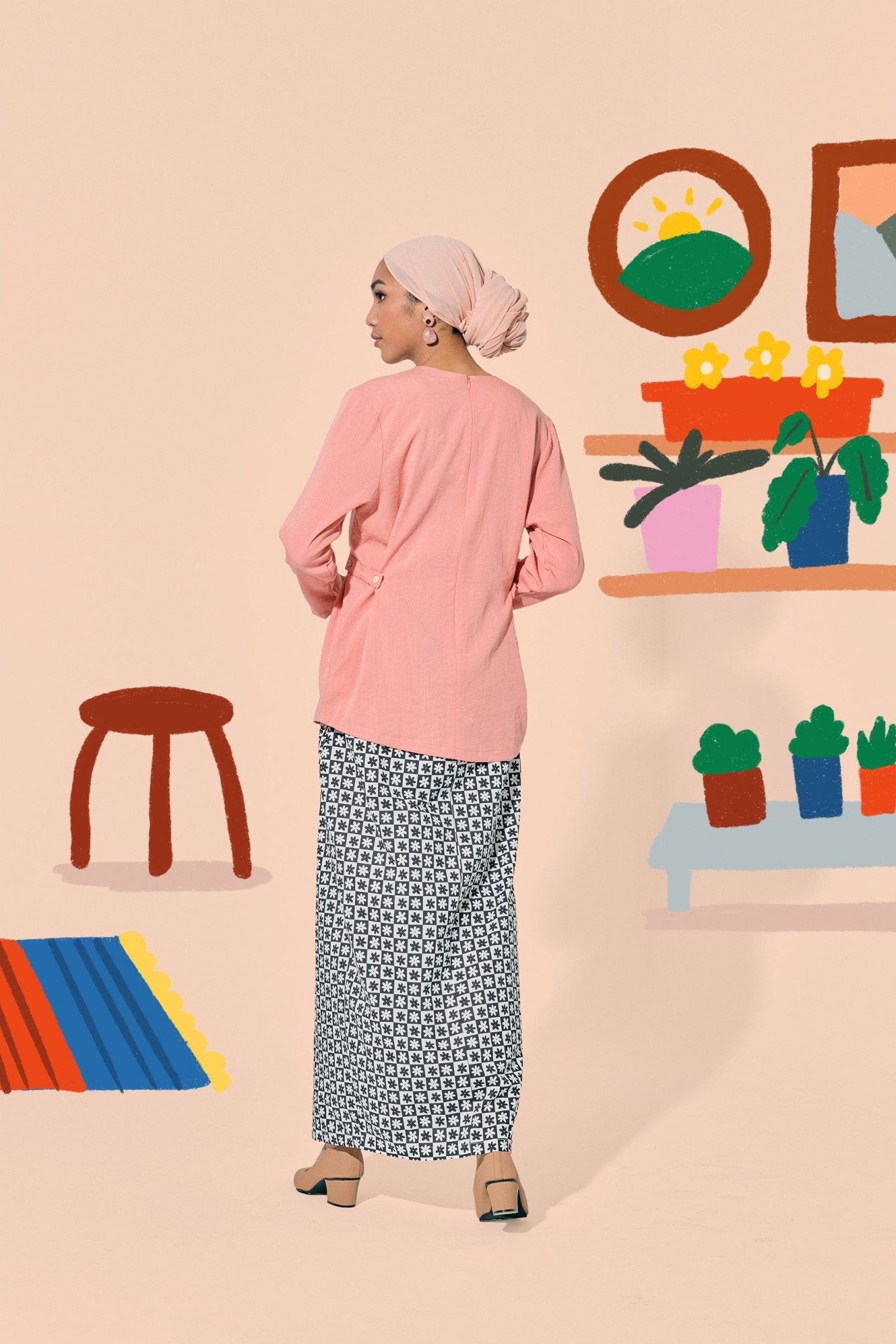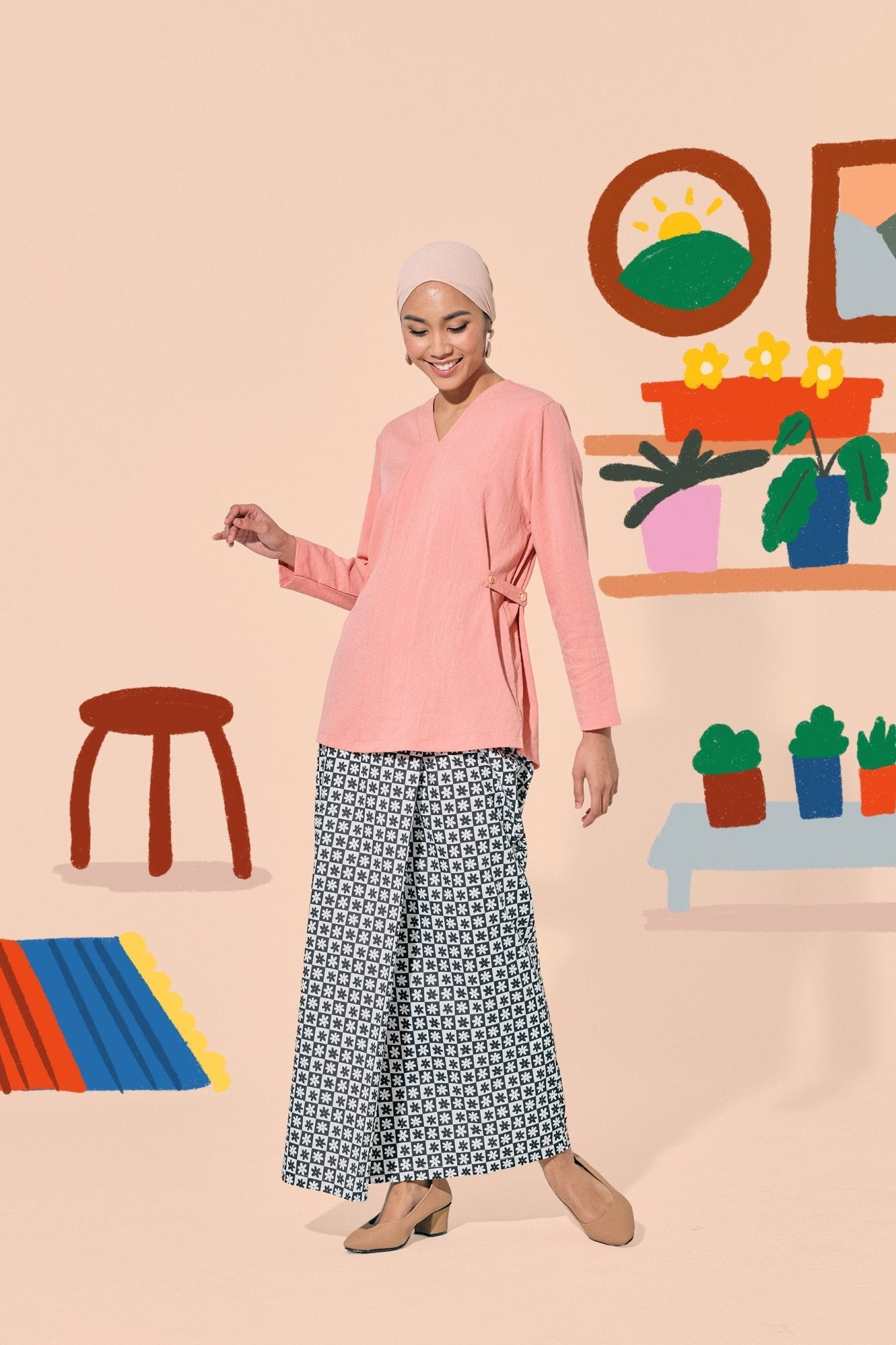 The Ruma Riang Women Kebaya Top Salmon