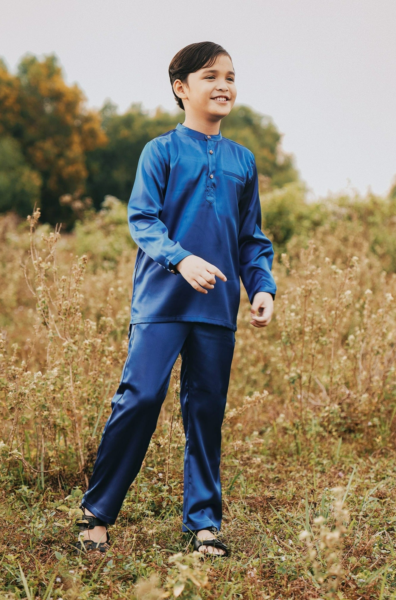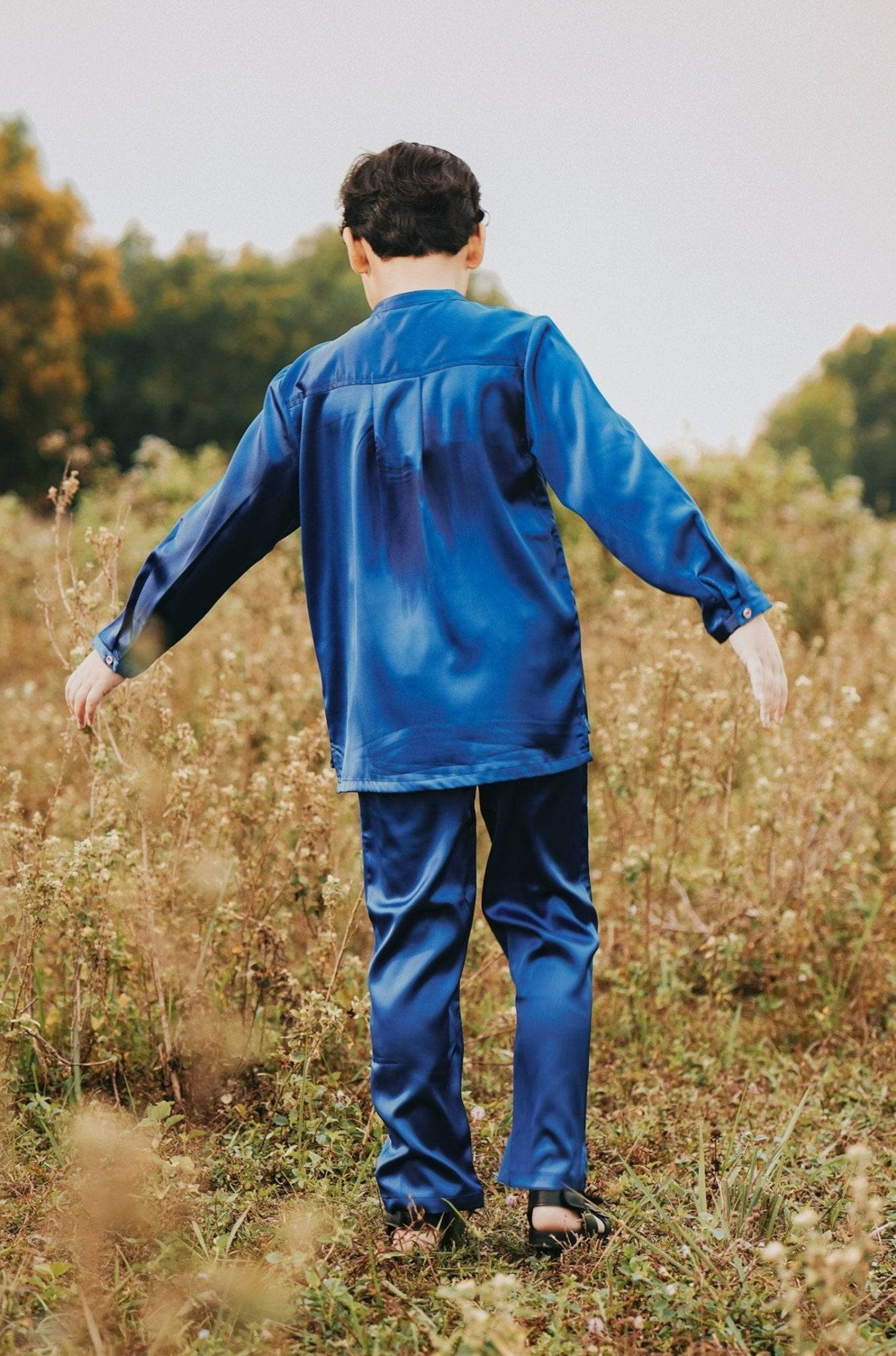 The Shawwal Collection Boy Baju Melayu Set Royal Blue Satin