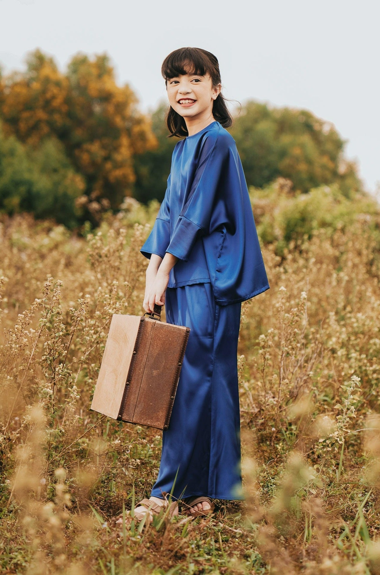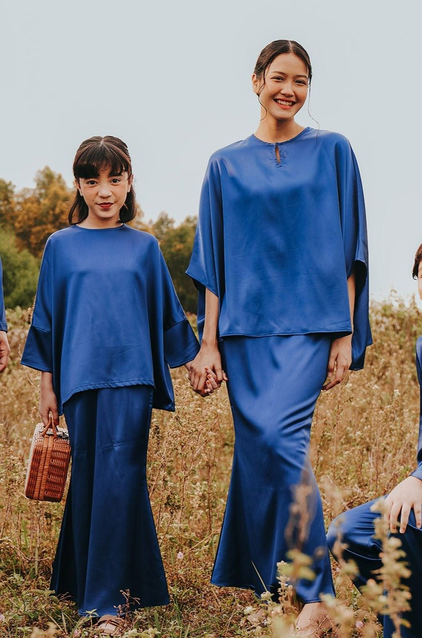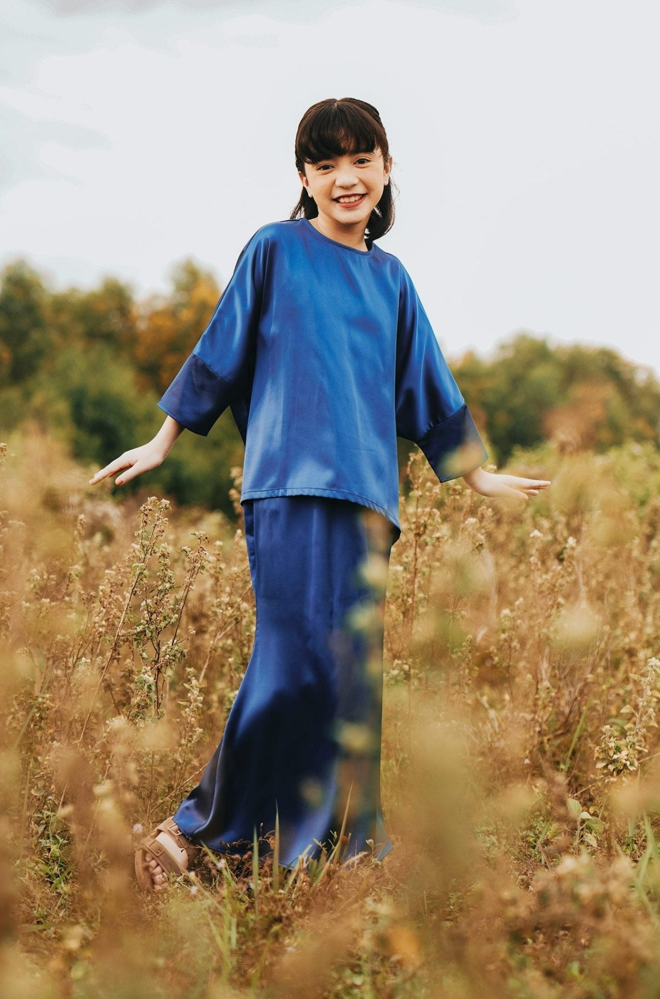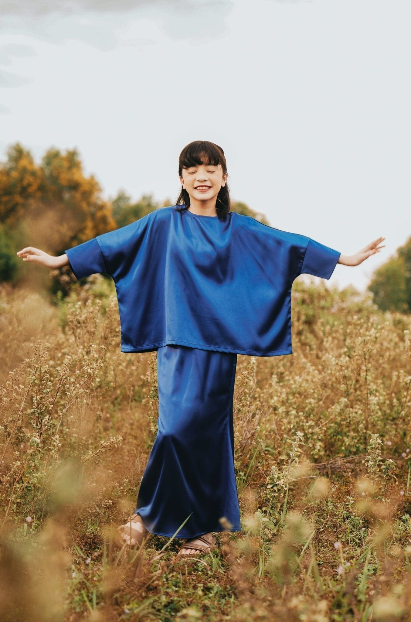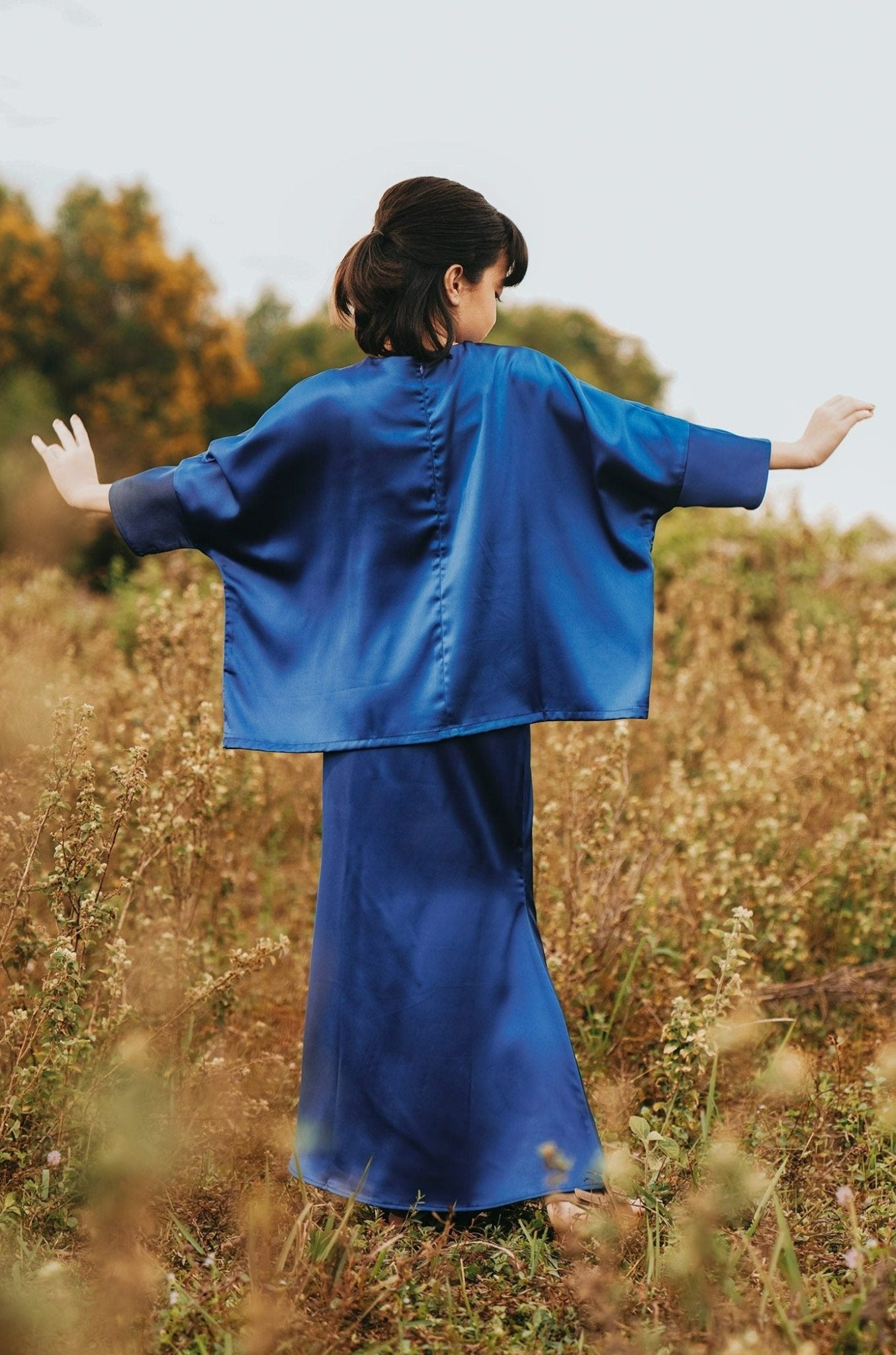 The Shawwal Collection Girl Kaftan Set Royal Blue Satin