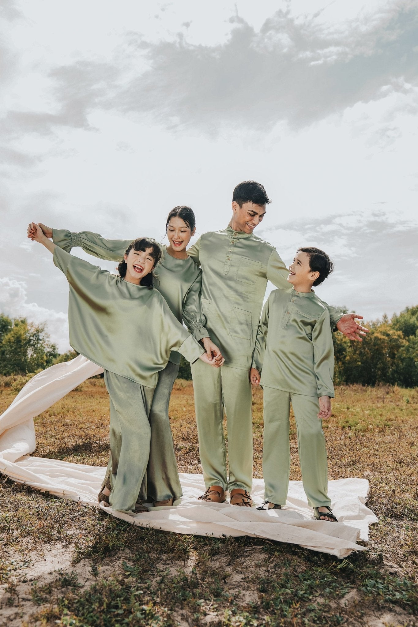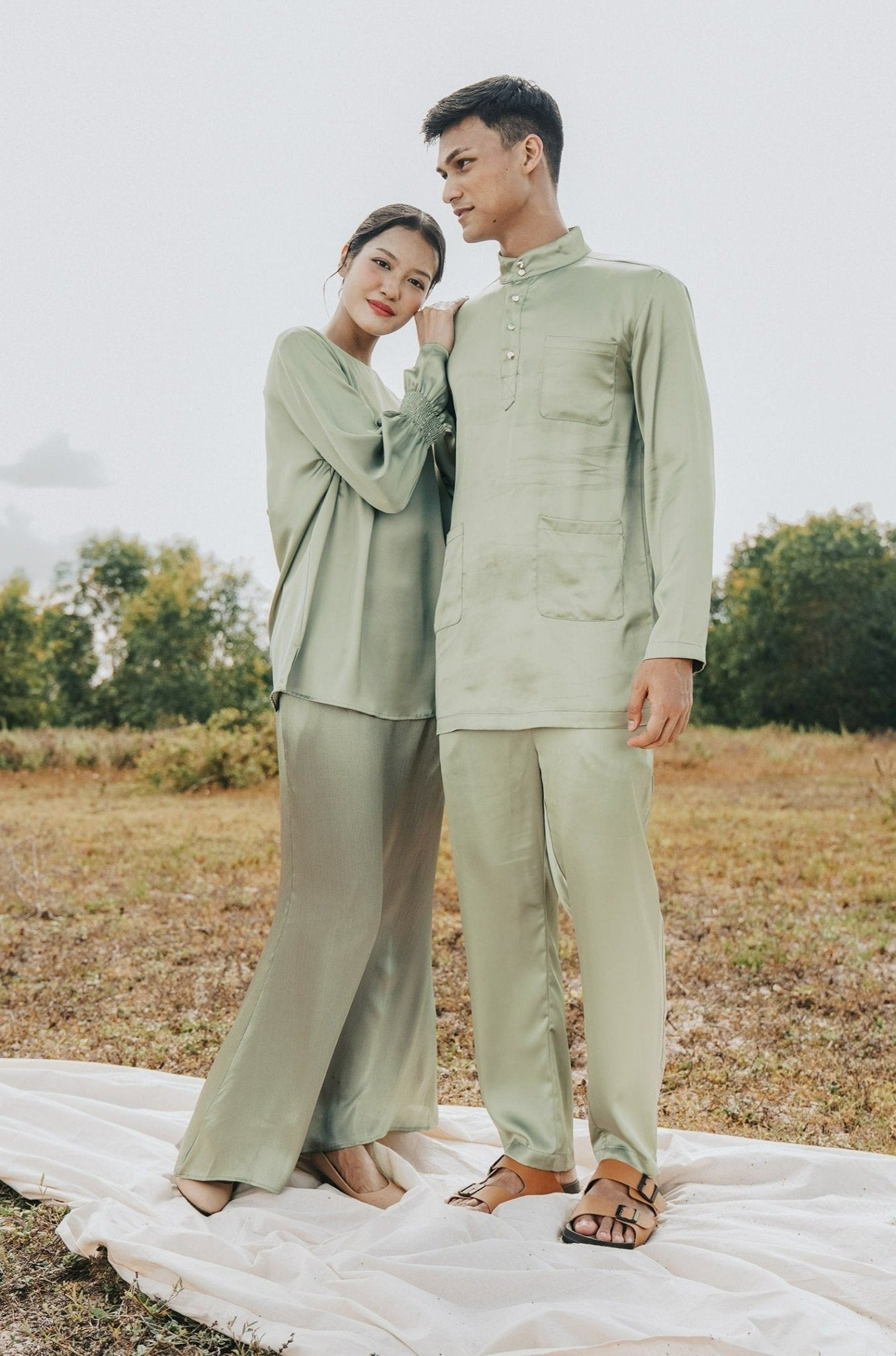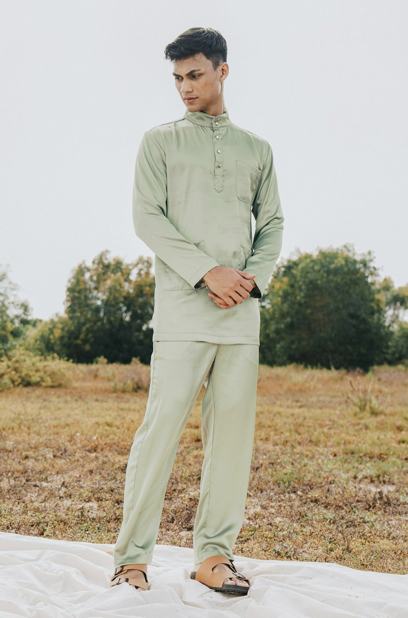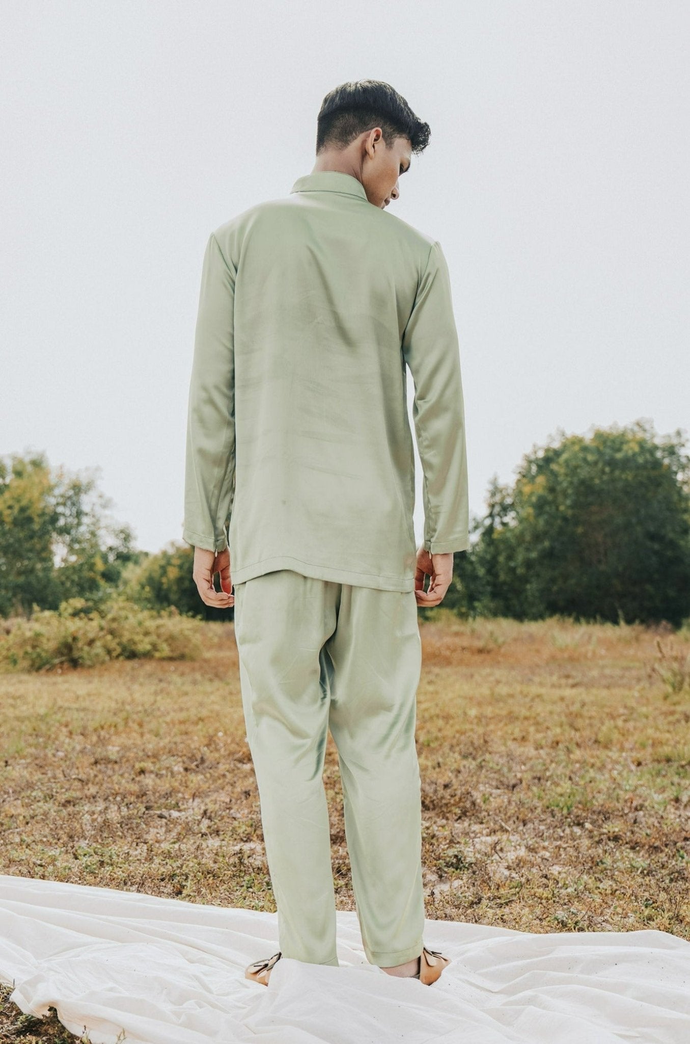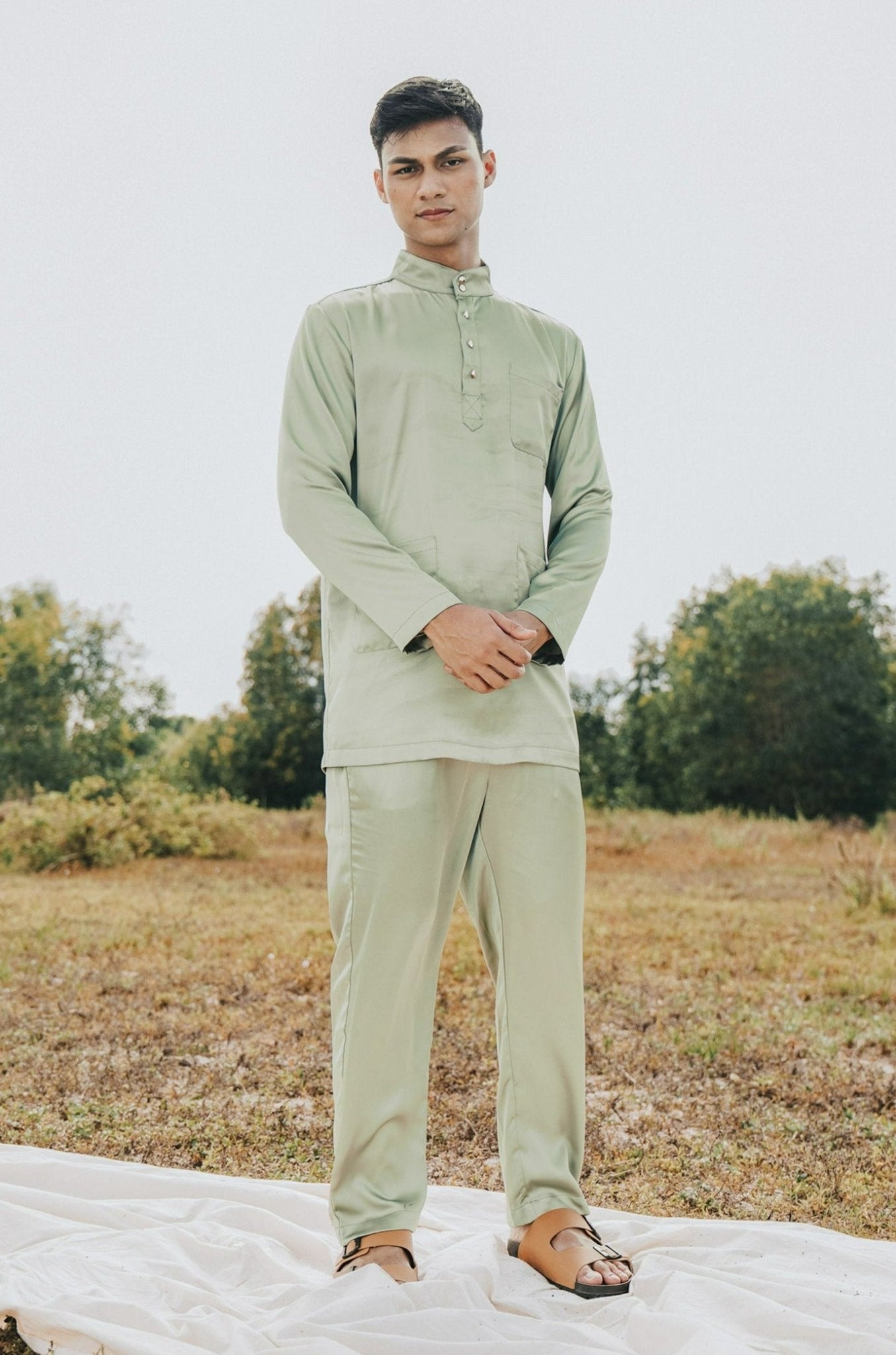 The Shawwal Collection Men Baju Melayu Set Matcha Green Satin