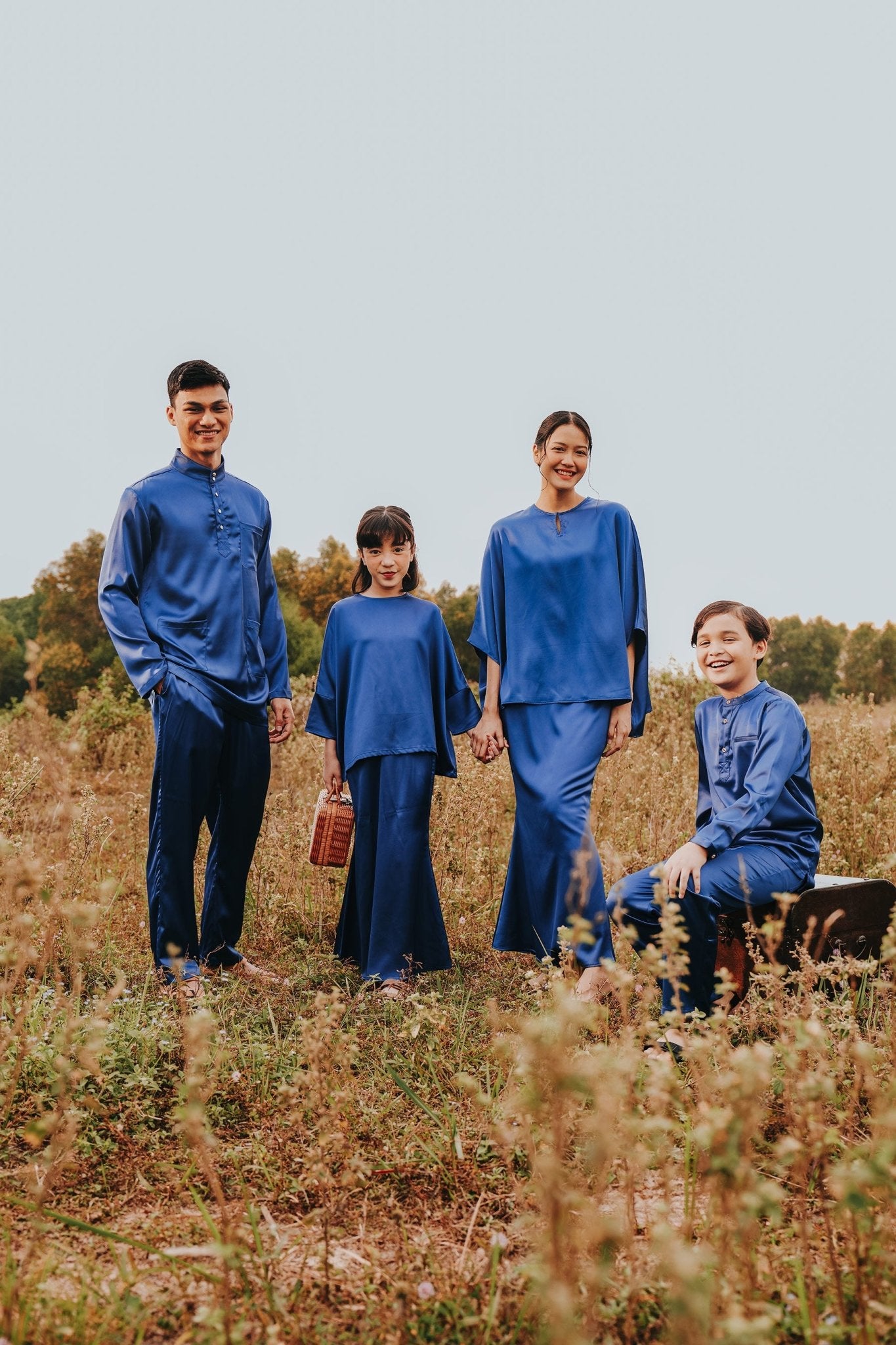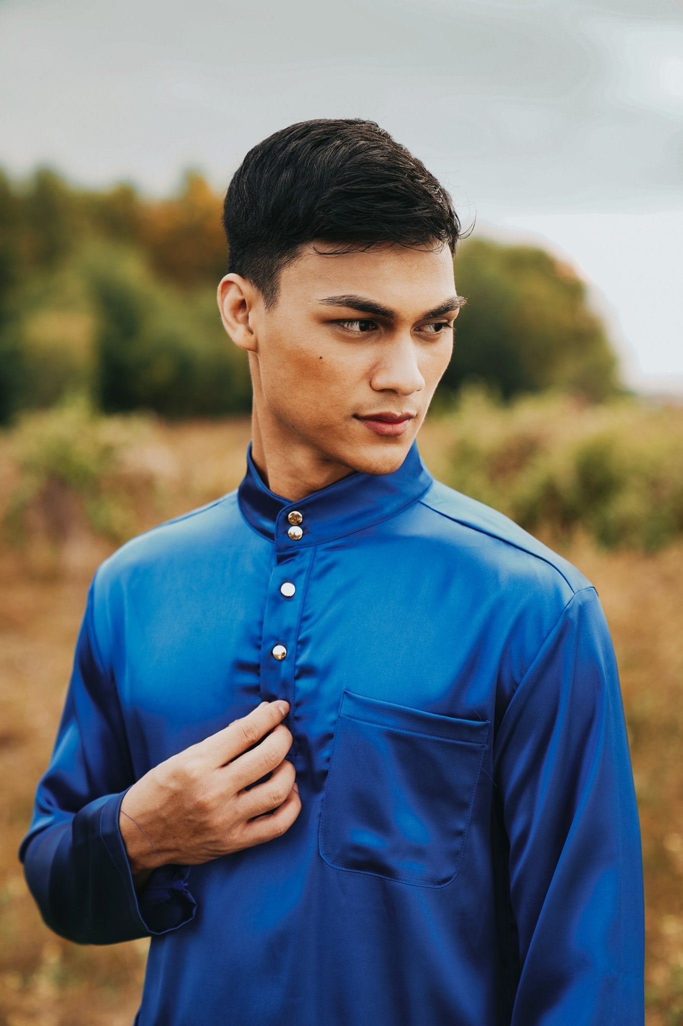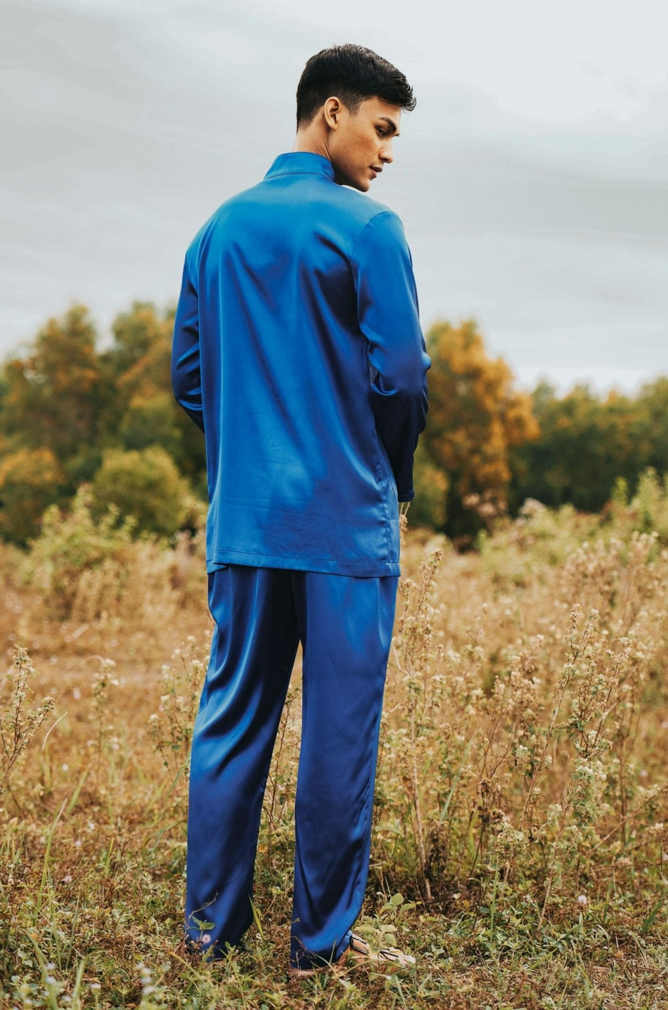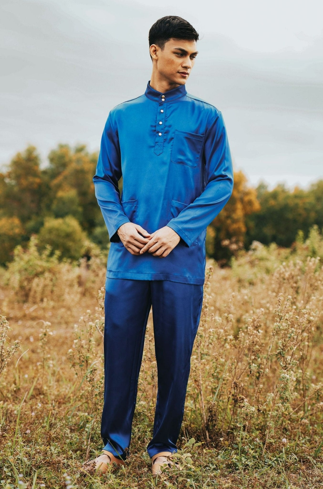 The Shawwal Collection Men Baju Melayu Set Royal Blue Satin