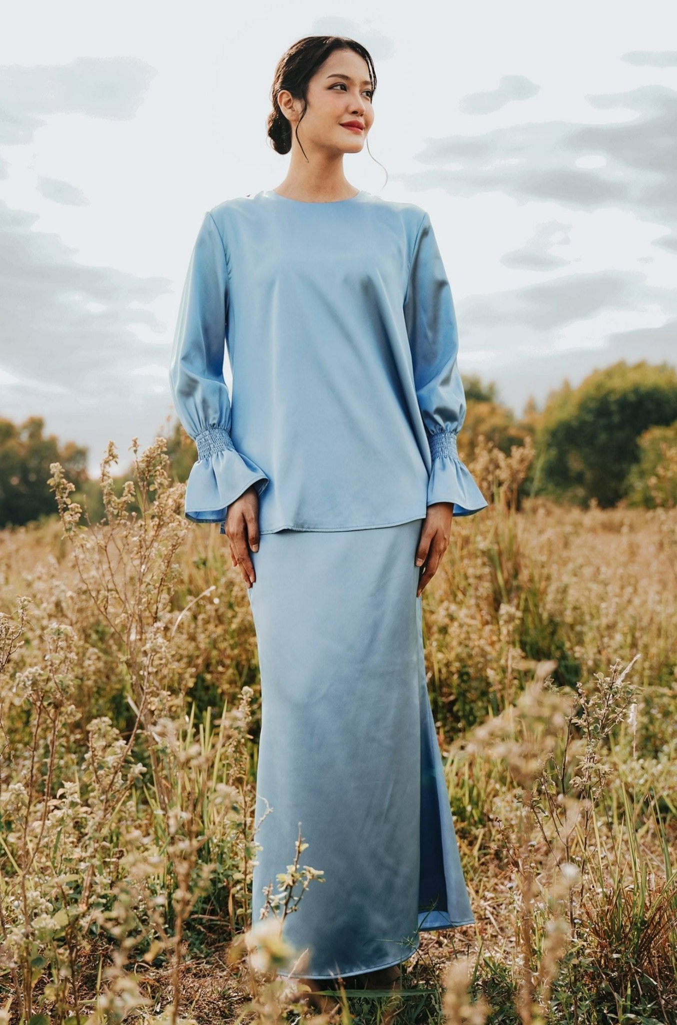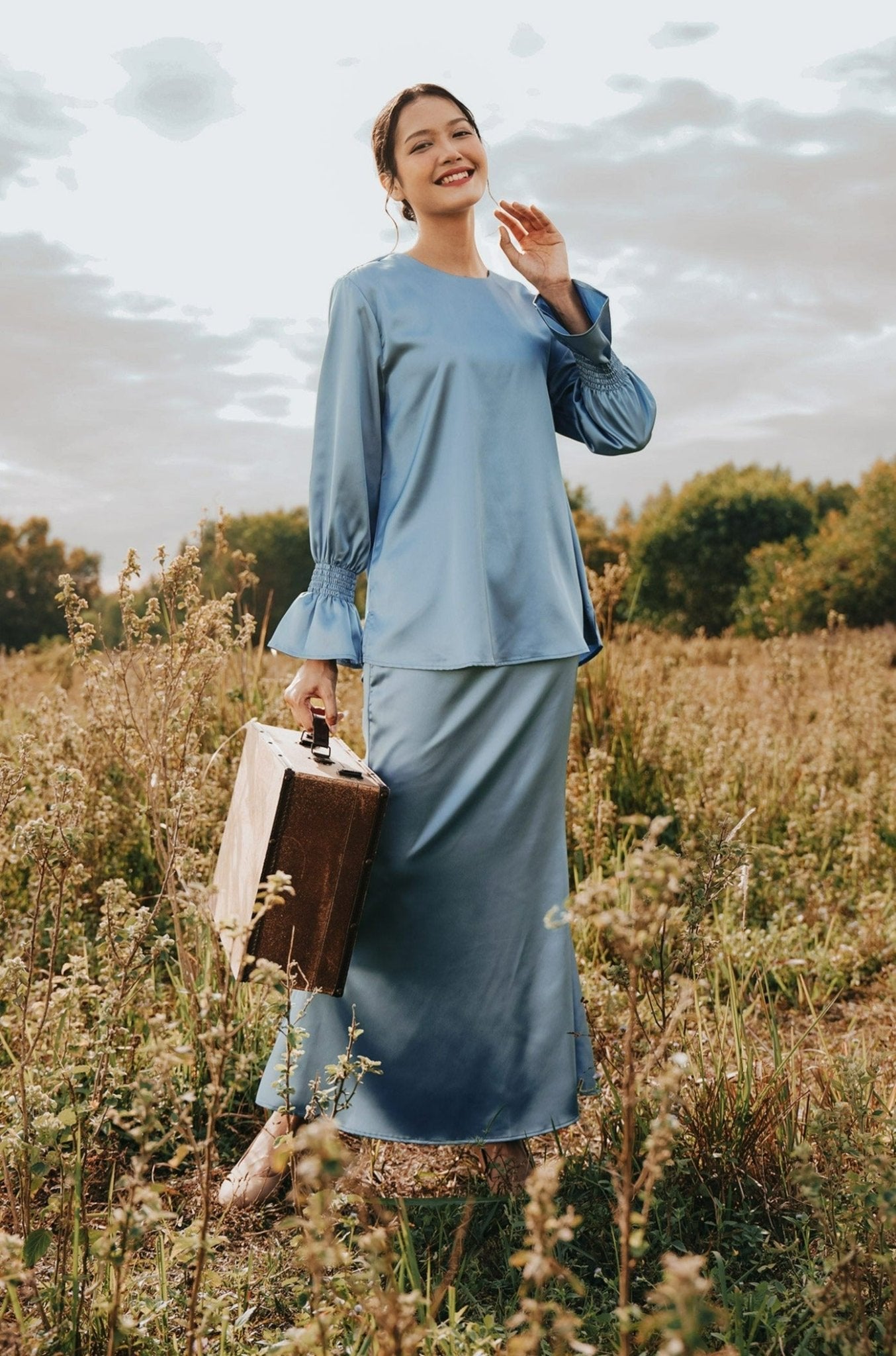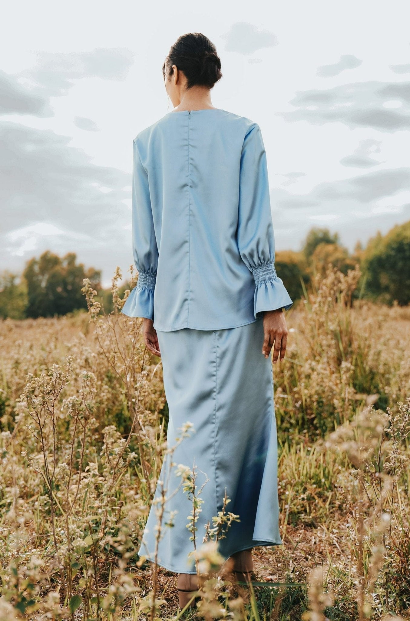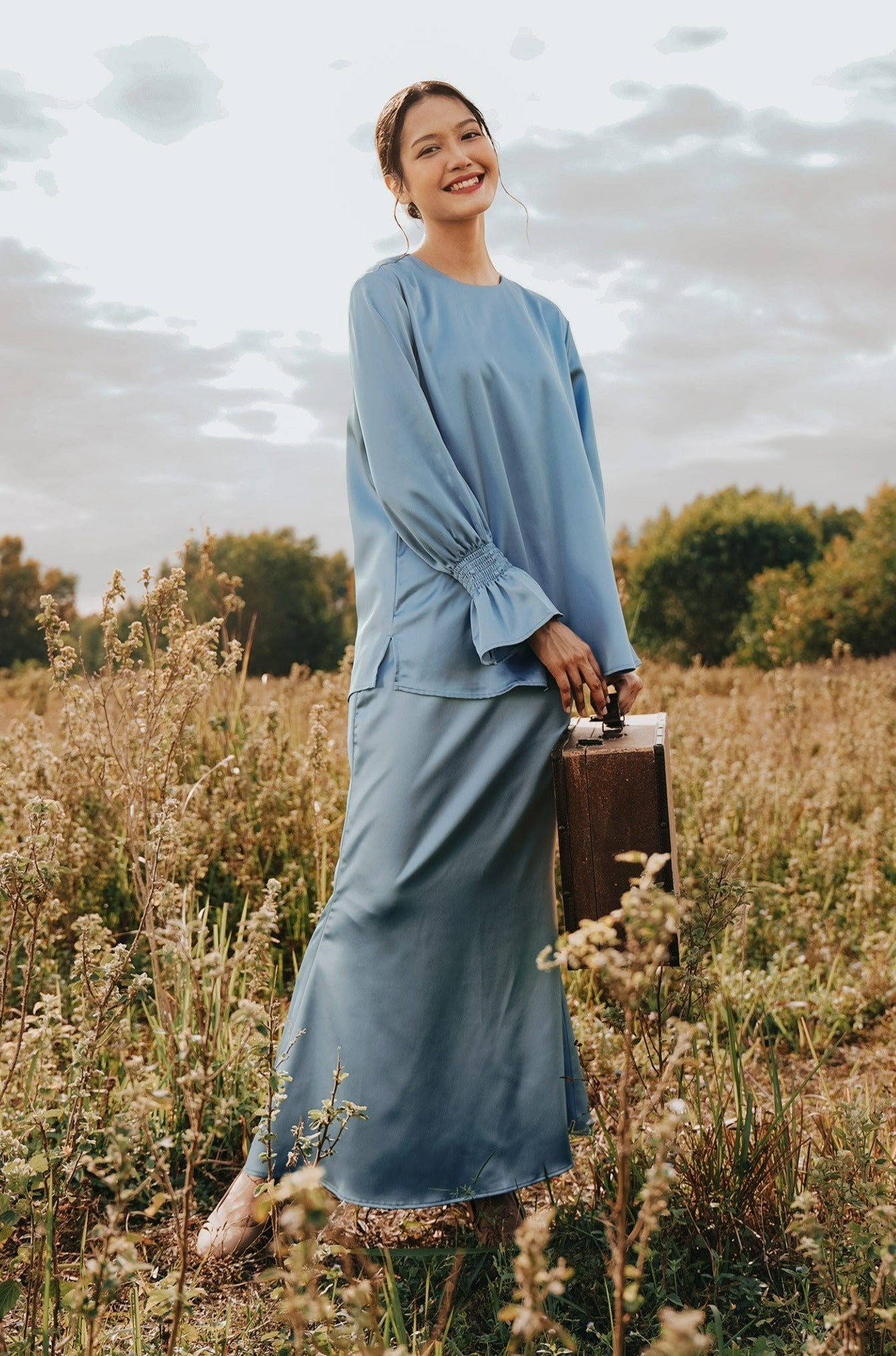 The Shawwal Collection Women Mermaid Skirt Pigeon Blue Satin