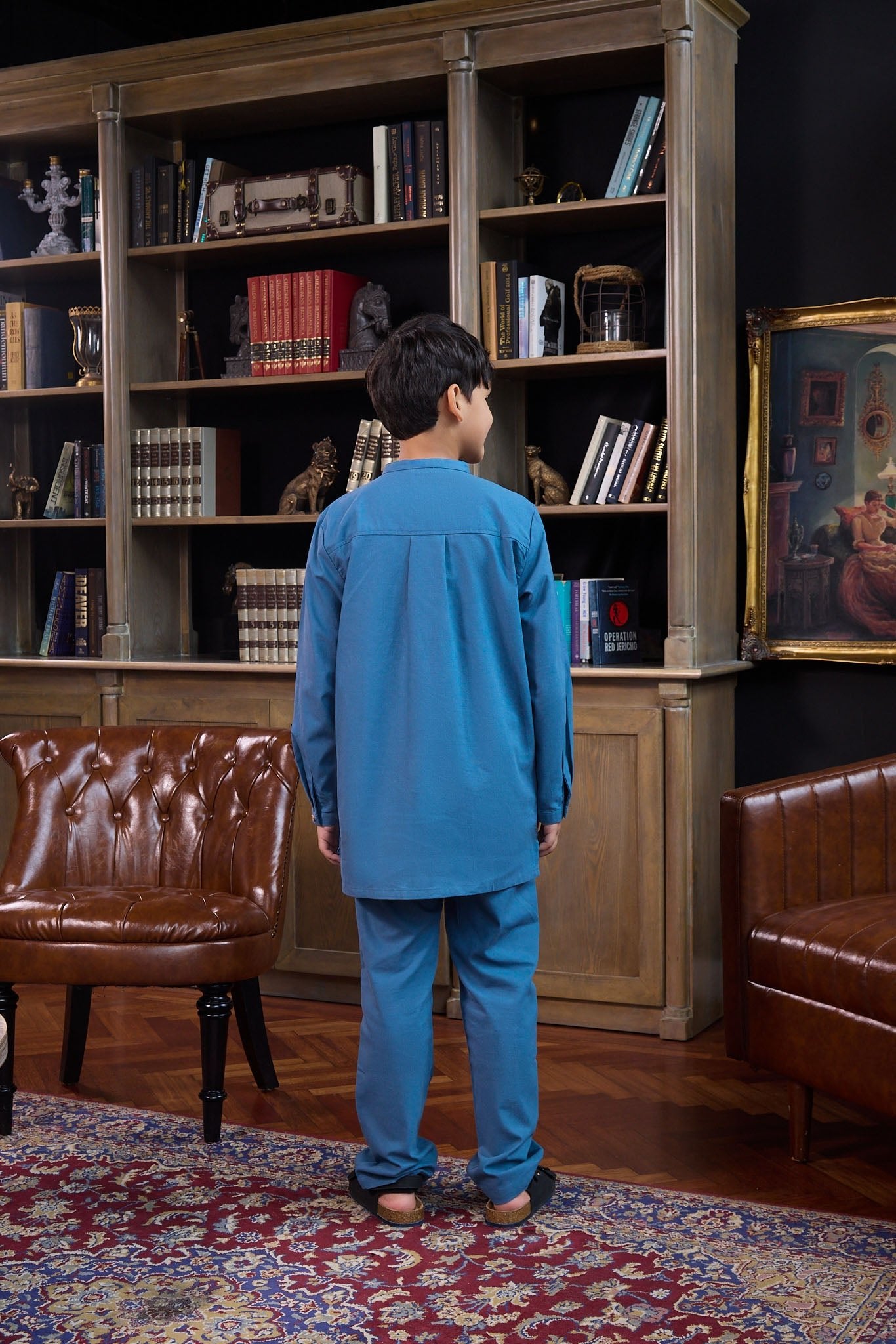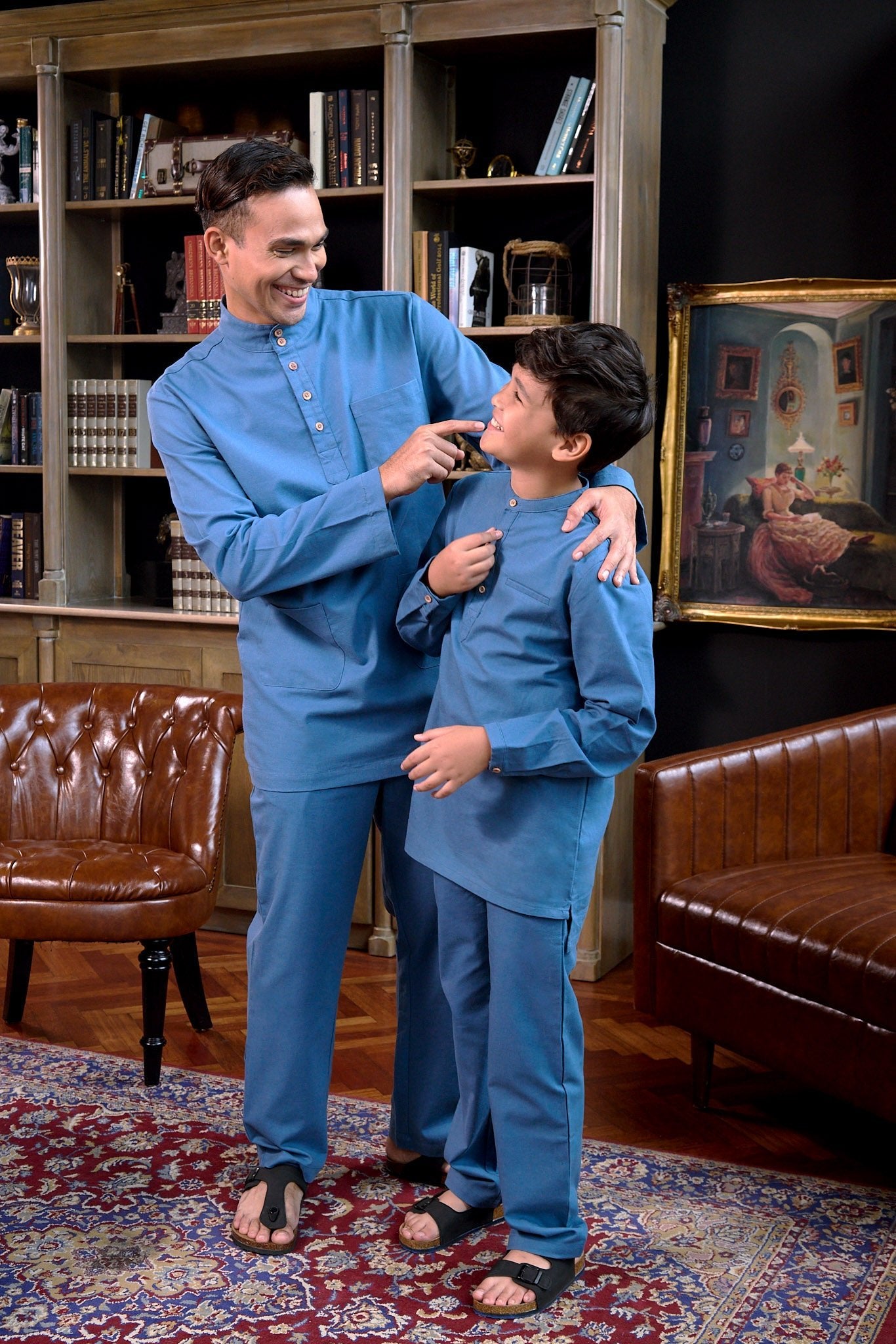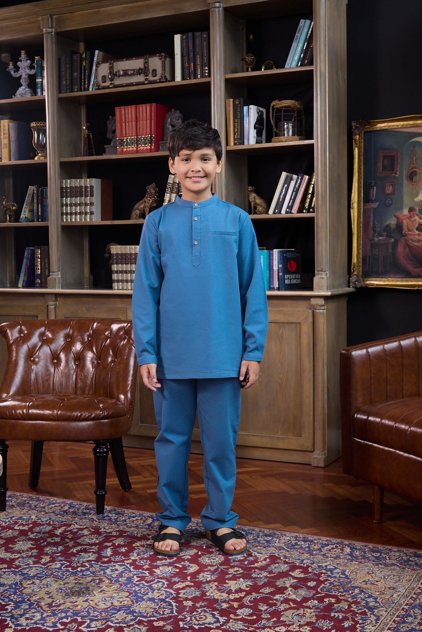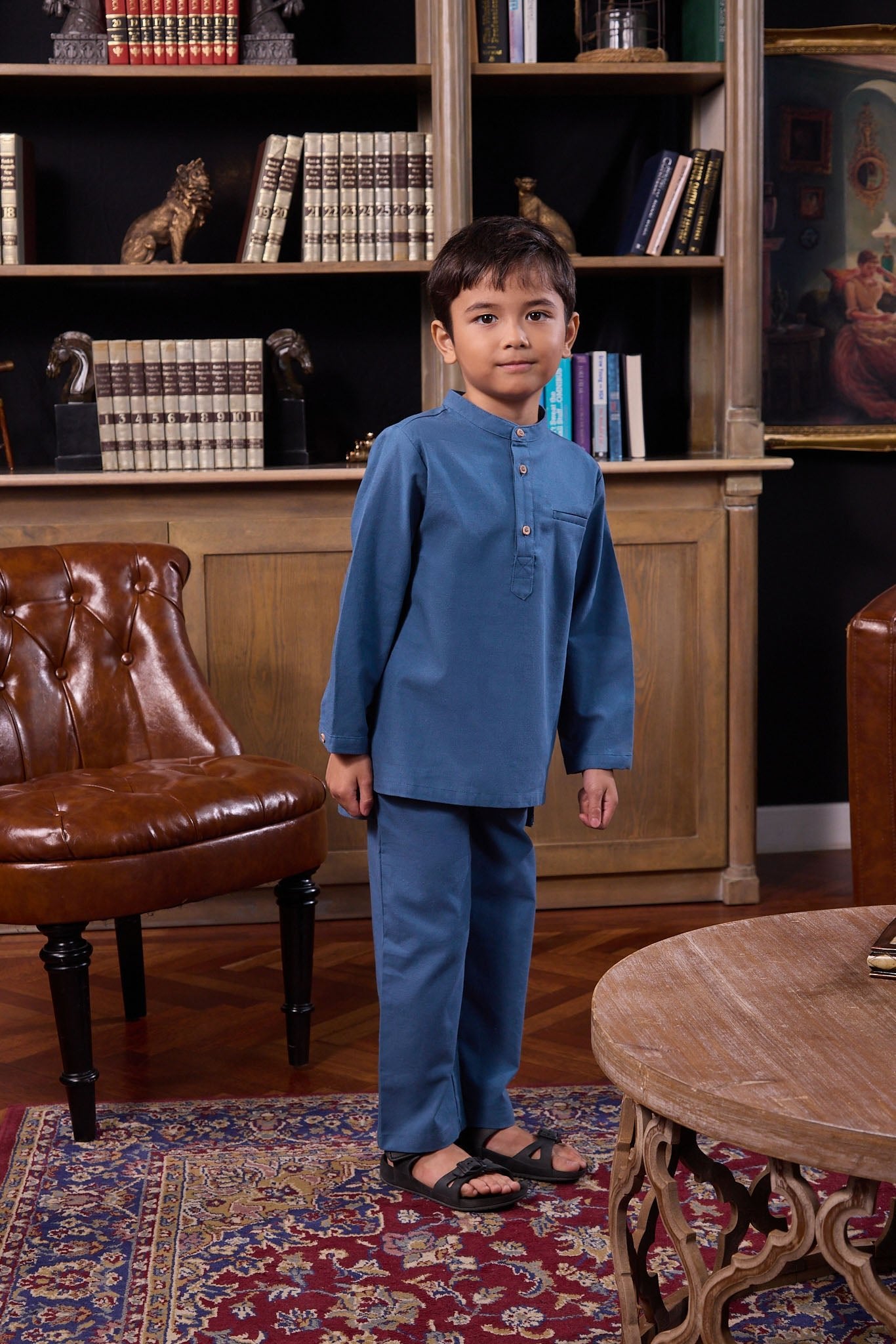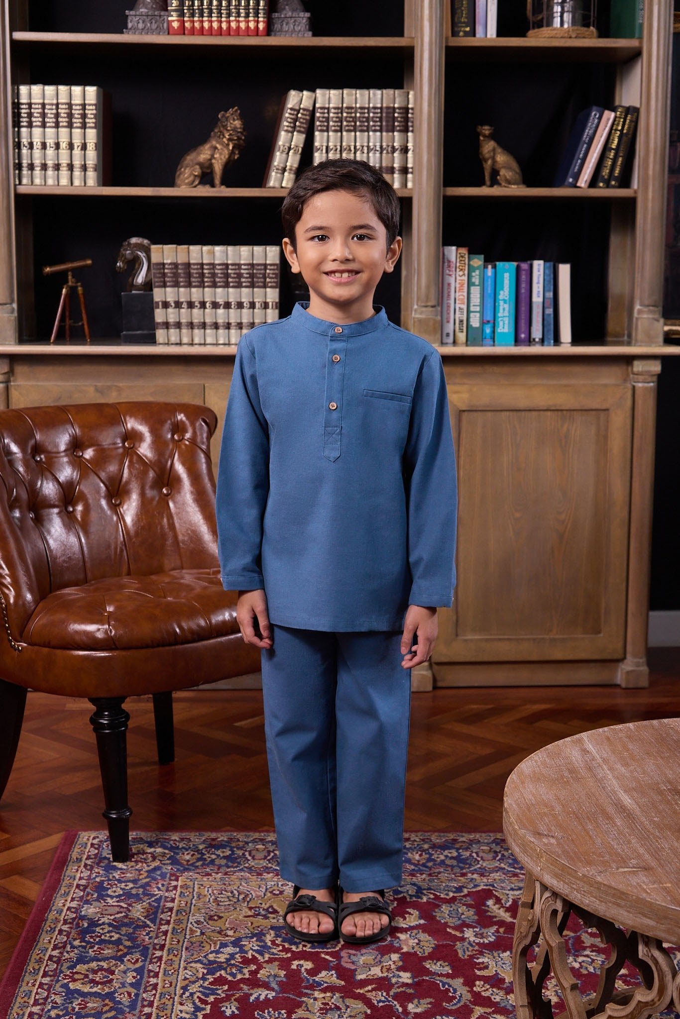The Warisan Raya Boy Baju Melayu Set Steel Blue
