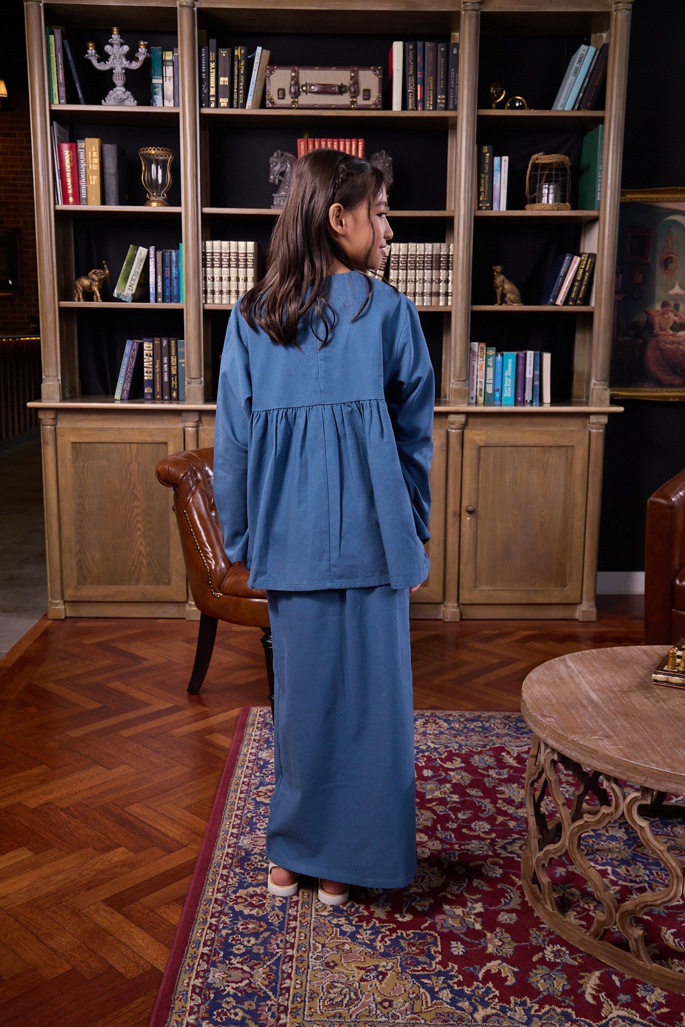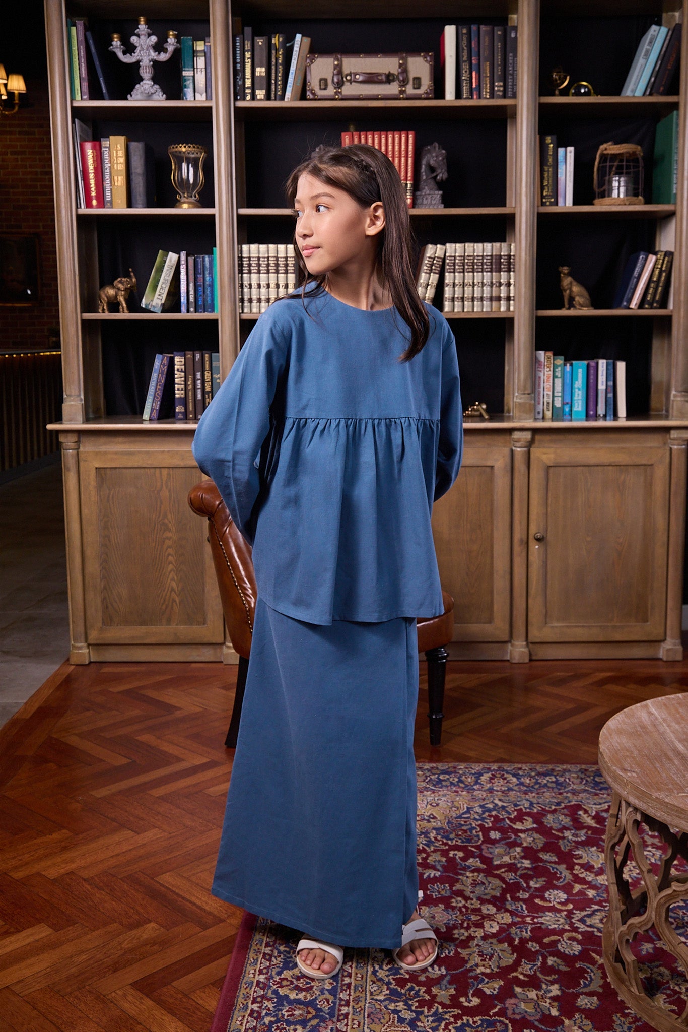 The Warisan Raya Girl Classic Skirt Steel Blue