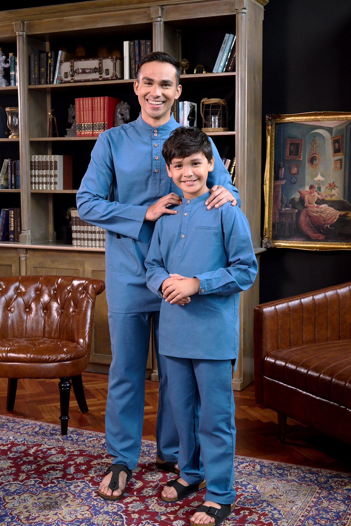 The Warisan Raya Men Baju Melayu Set Steel Blue
