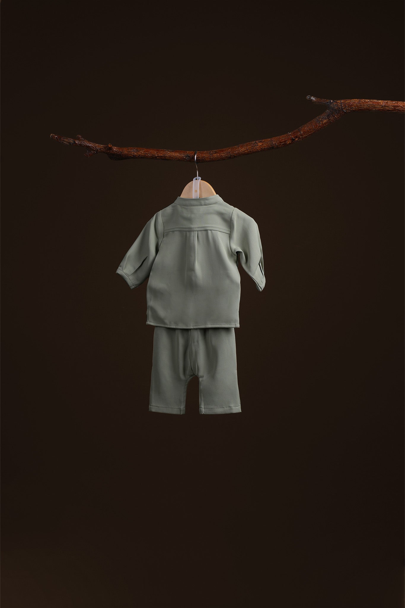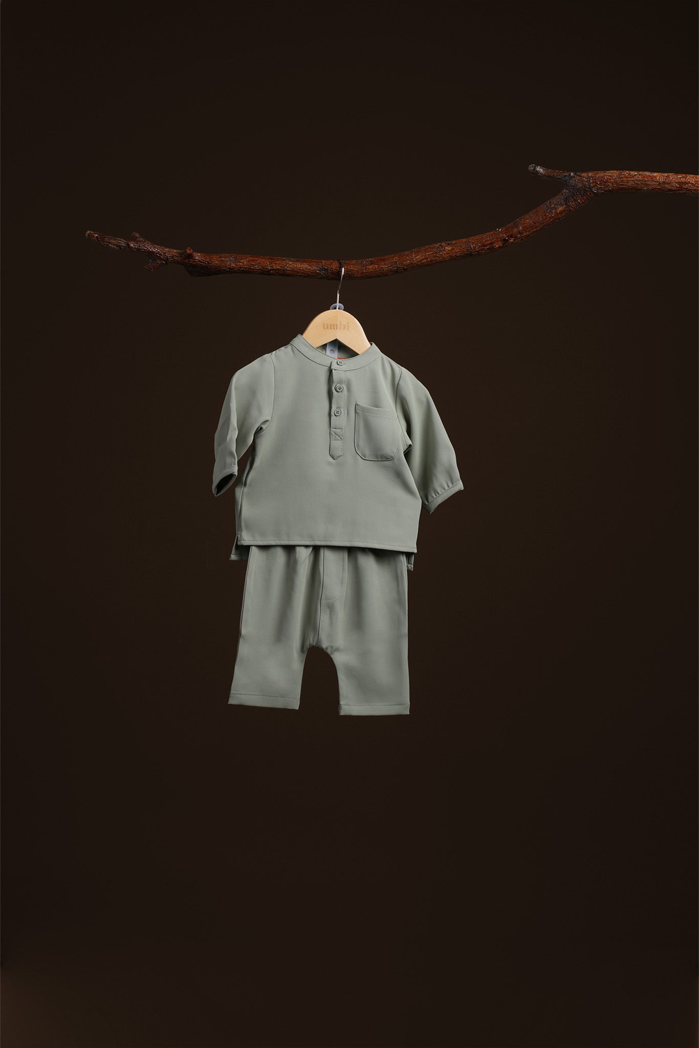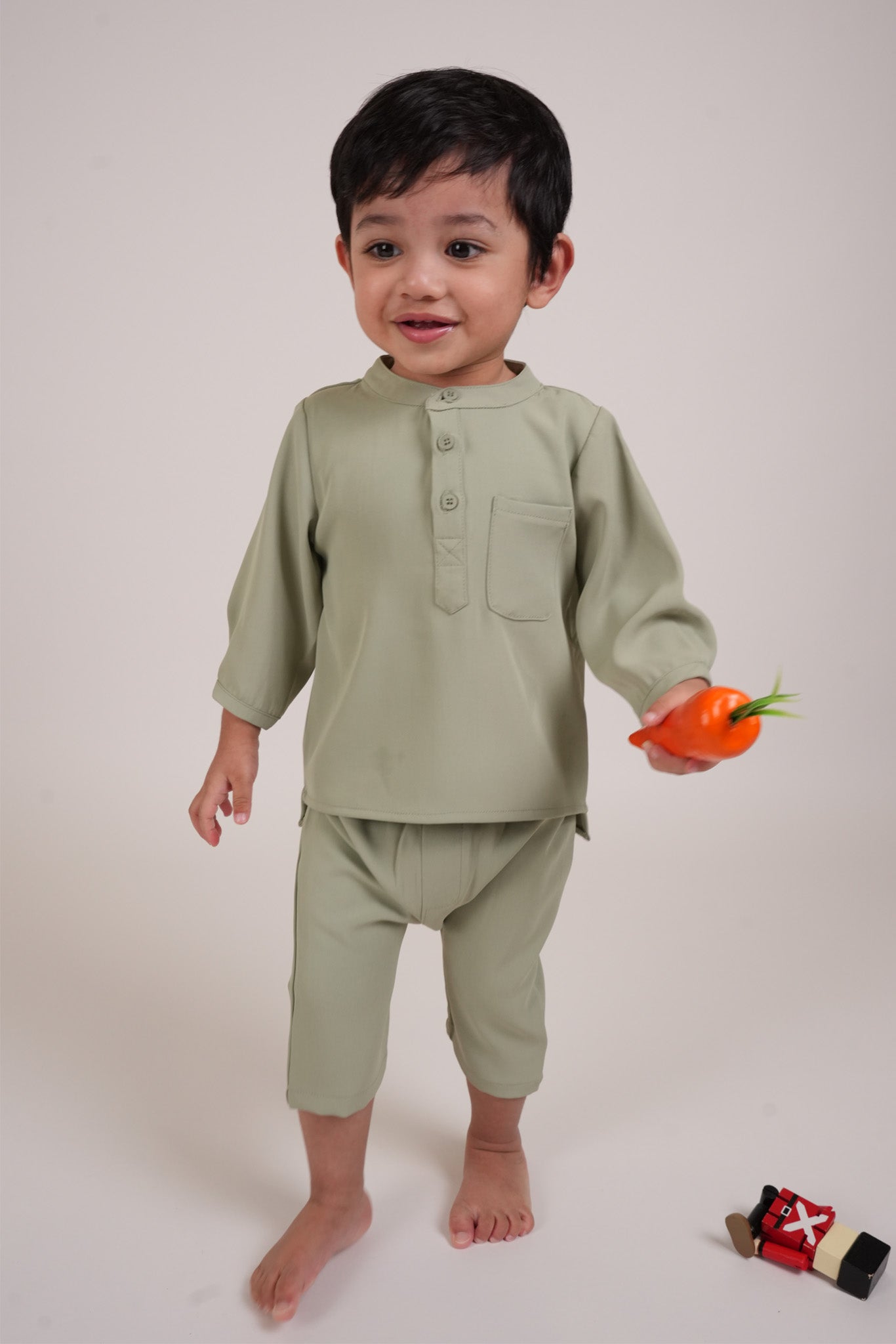 The Warisan Raya Baby Baju Melayu Set Sage Green