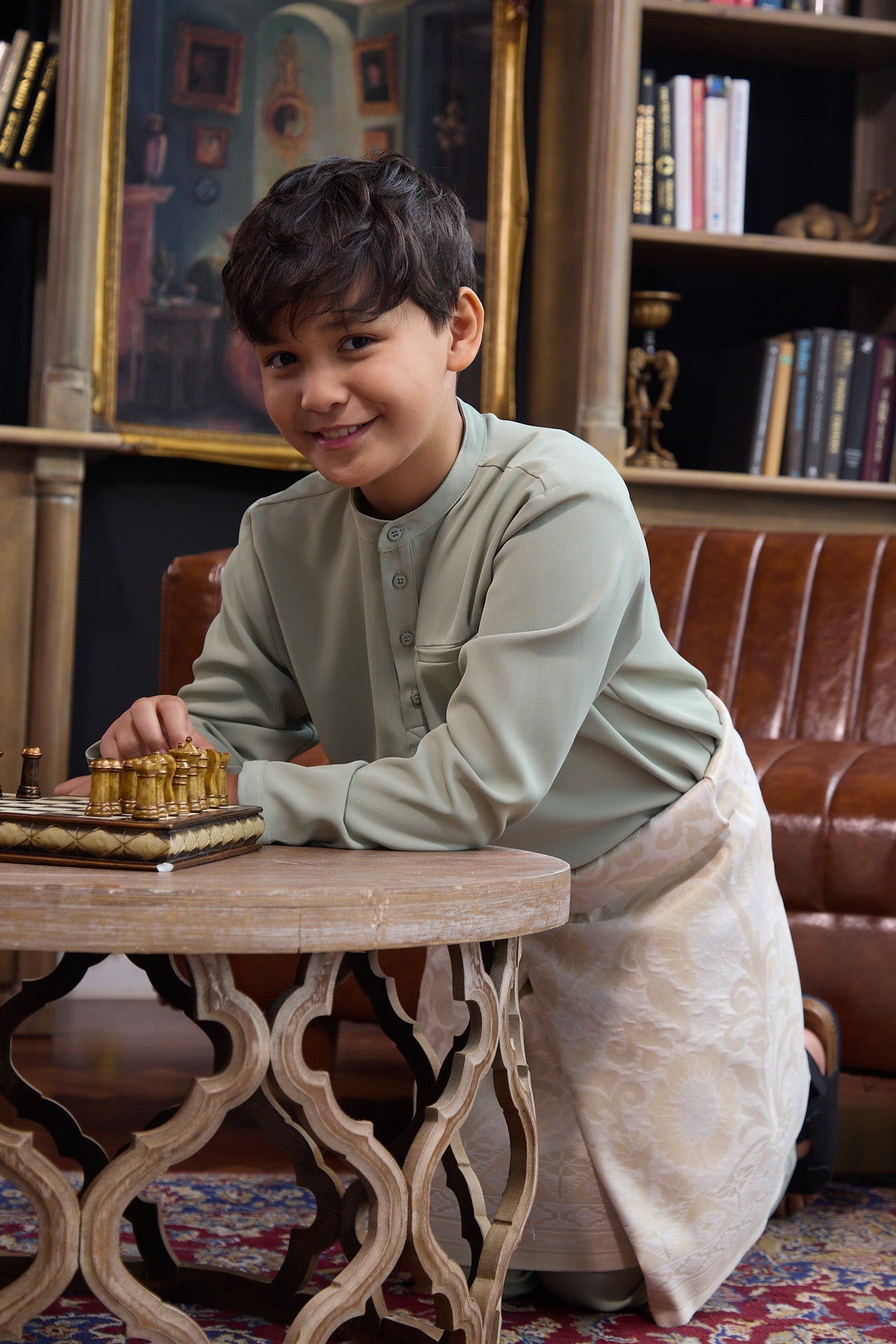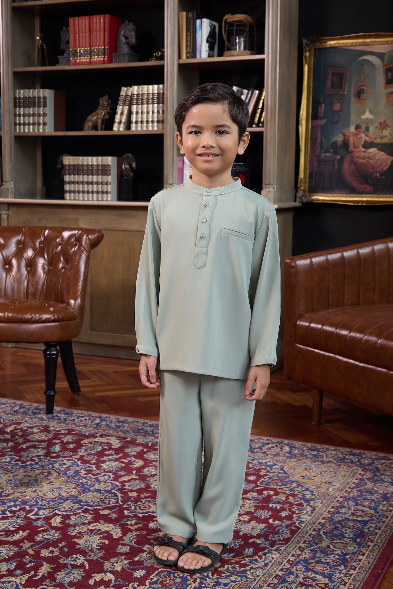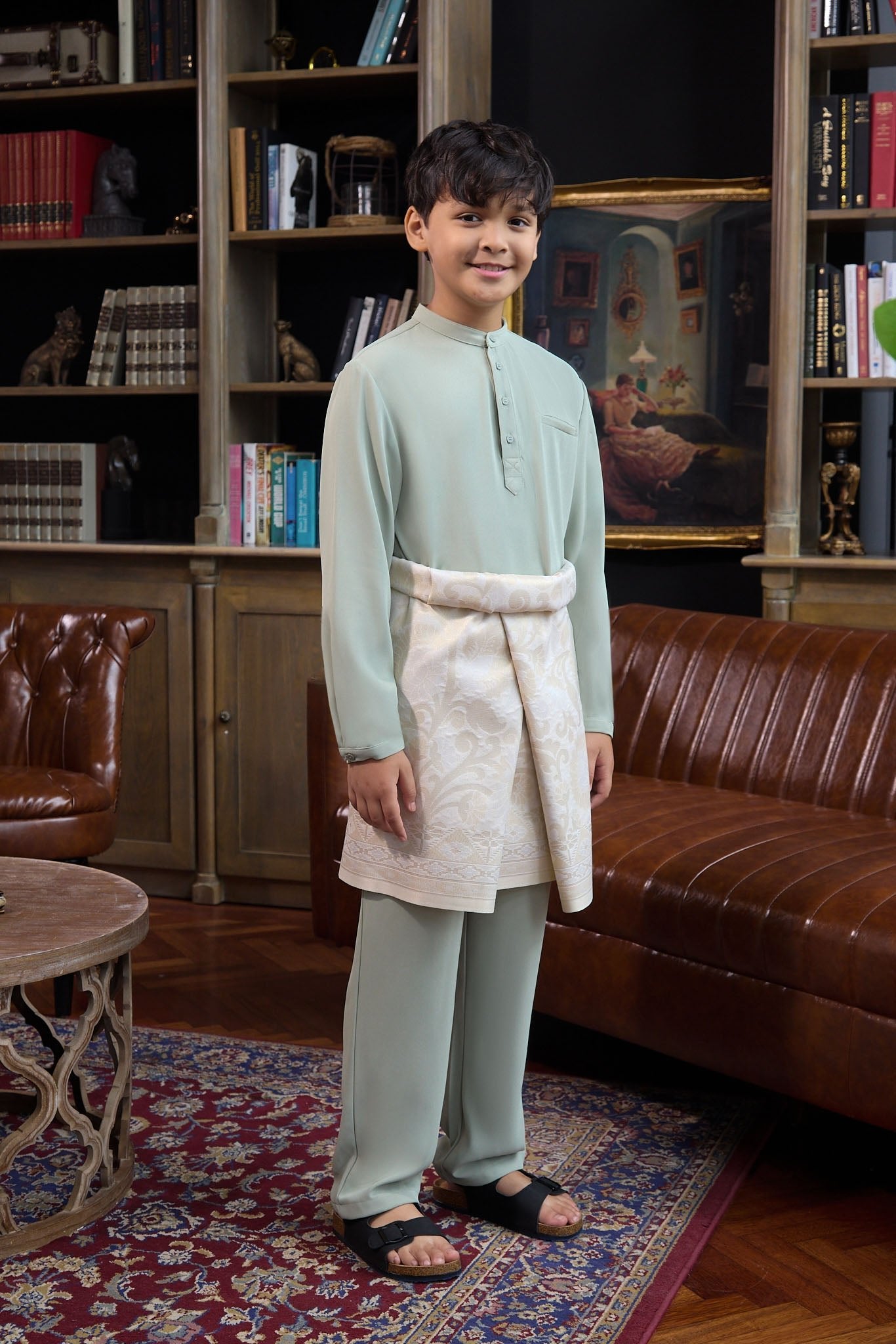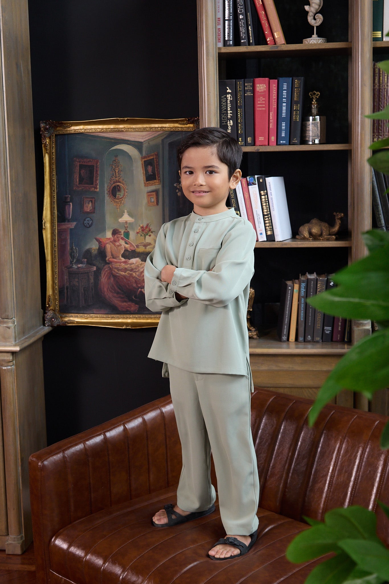 The Warisan Raya Boy Baju Melayu Set Sage Green
