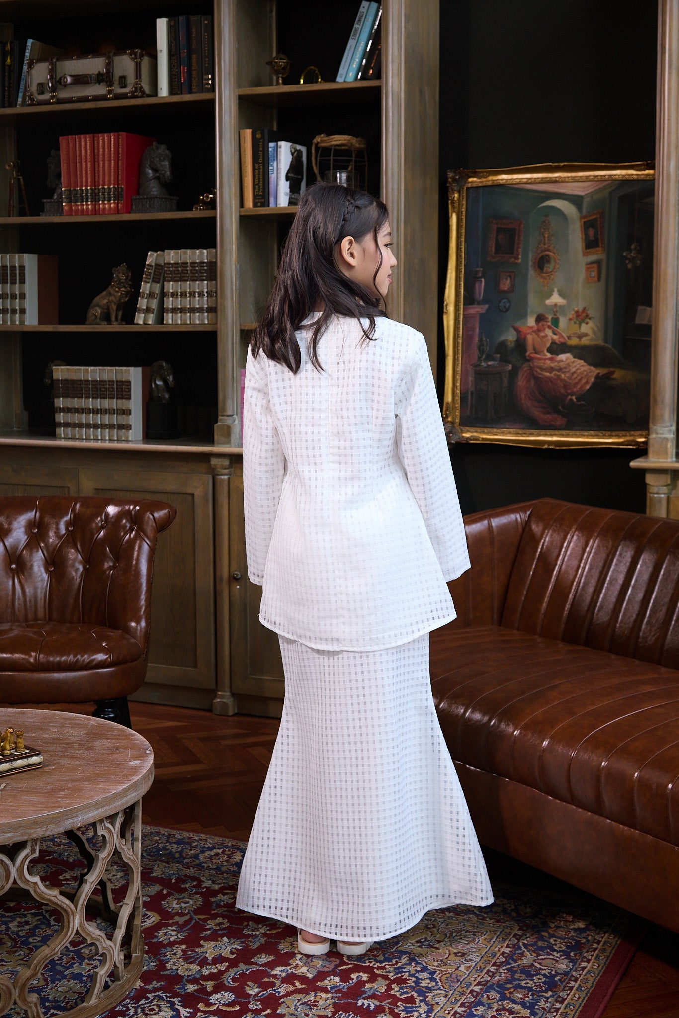 The Warisan Raya Girl Fitted Kurung Set Checked White