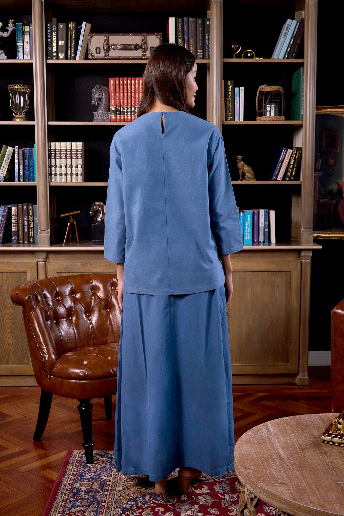 The Warisan Raya Women Folded Skirt Steel Blue