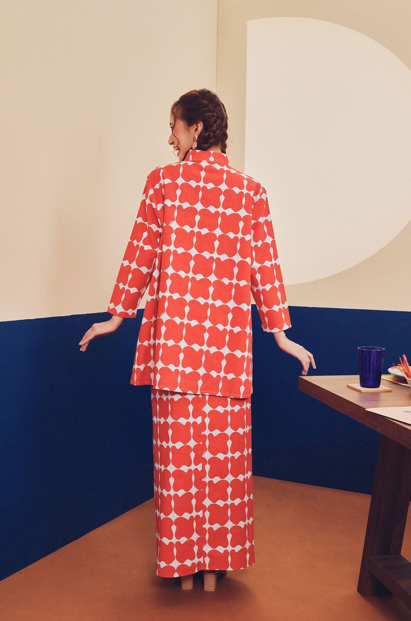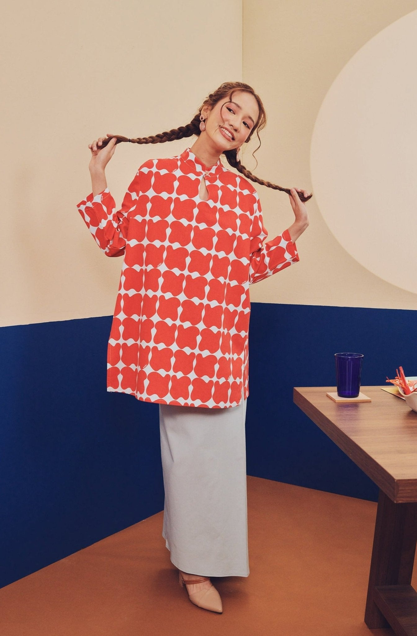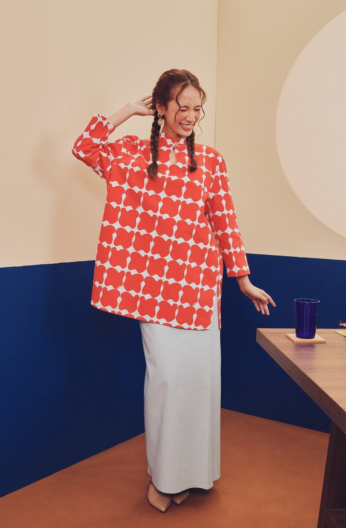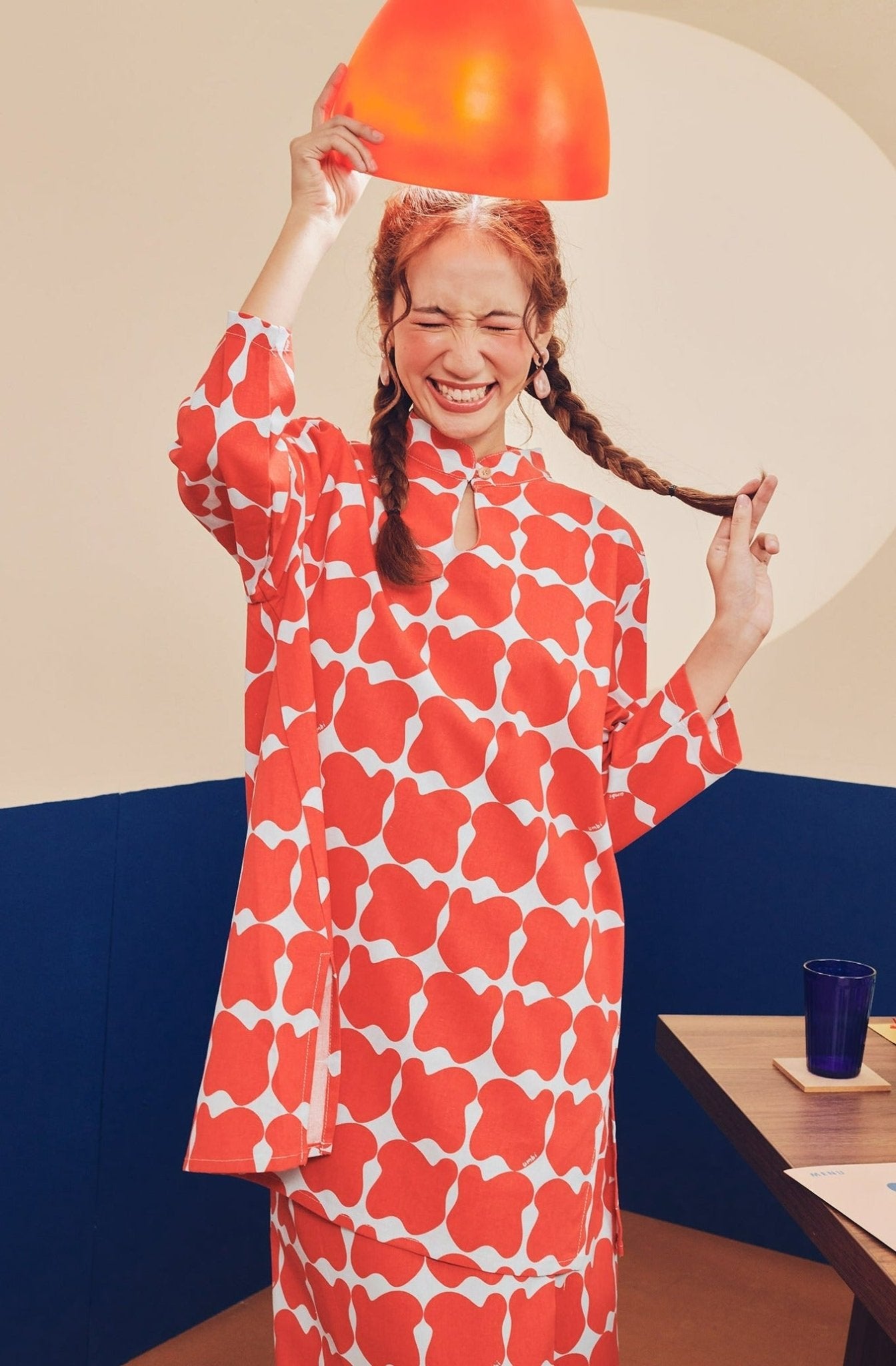 Women Mandarin Collar Kurung Blouse Bubblegum Print