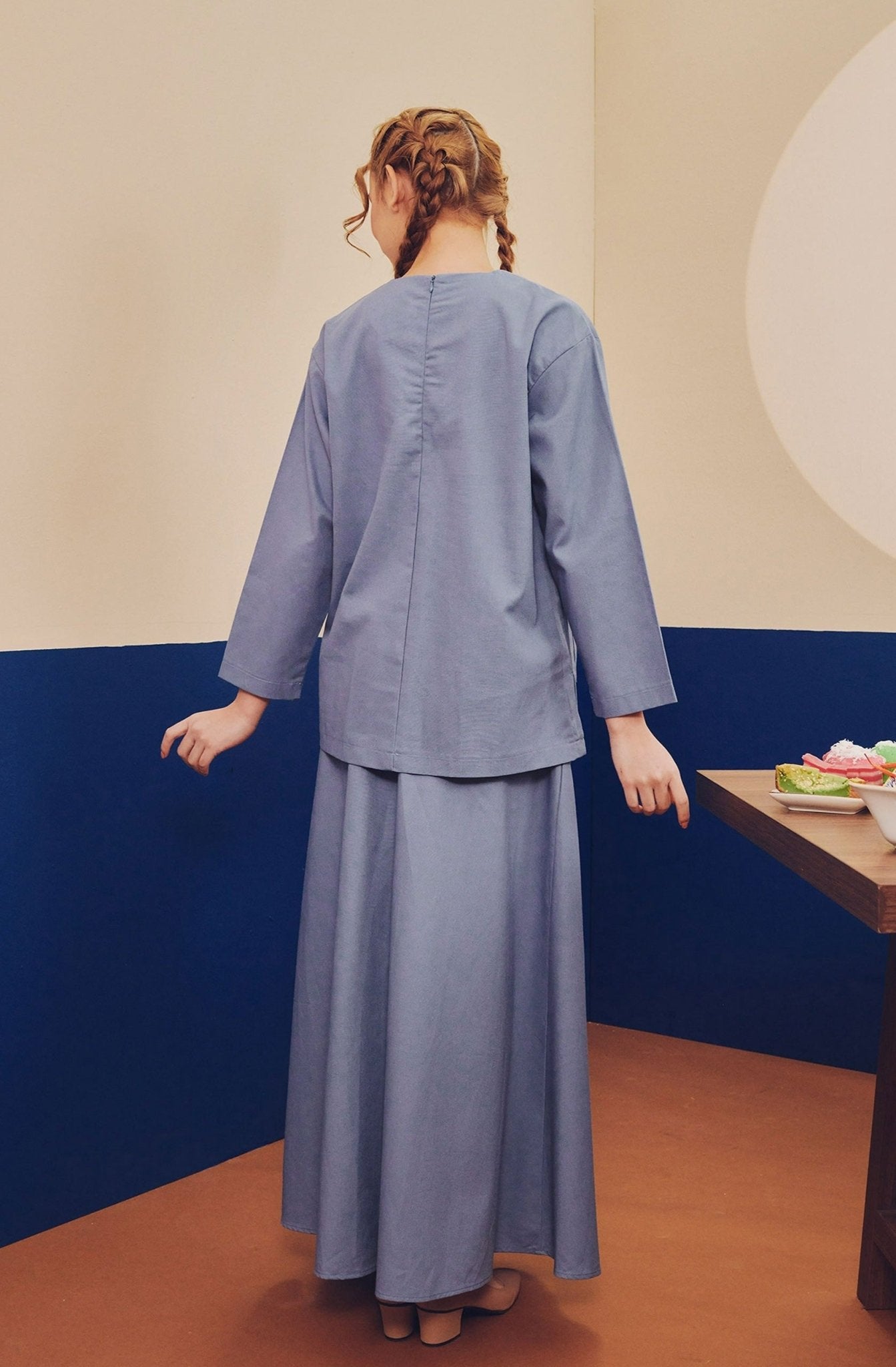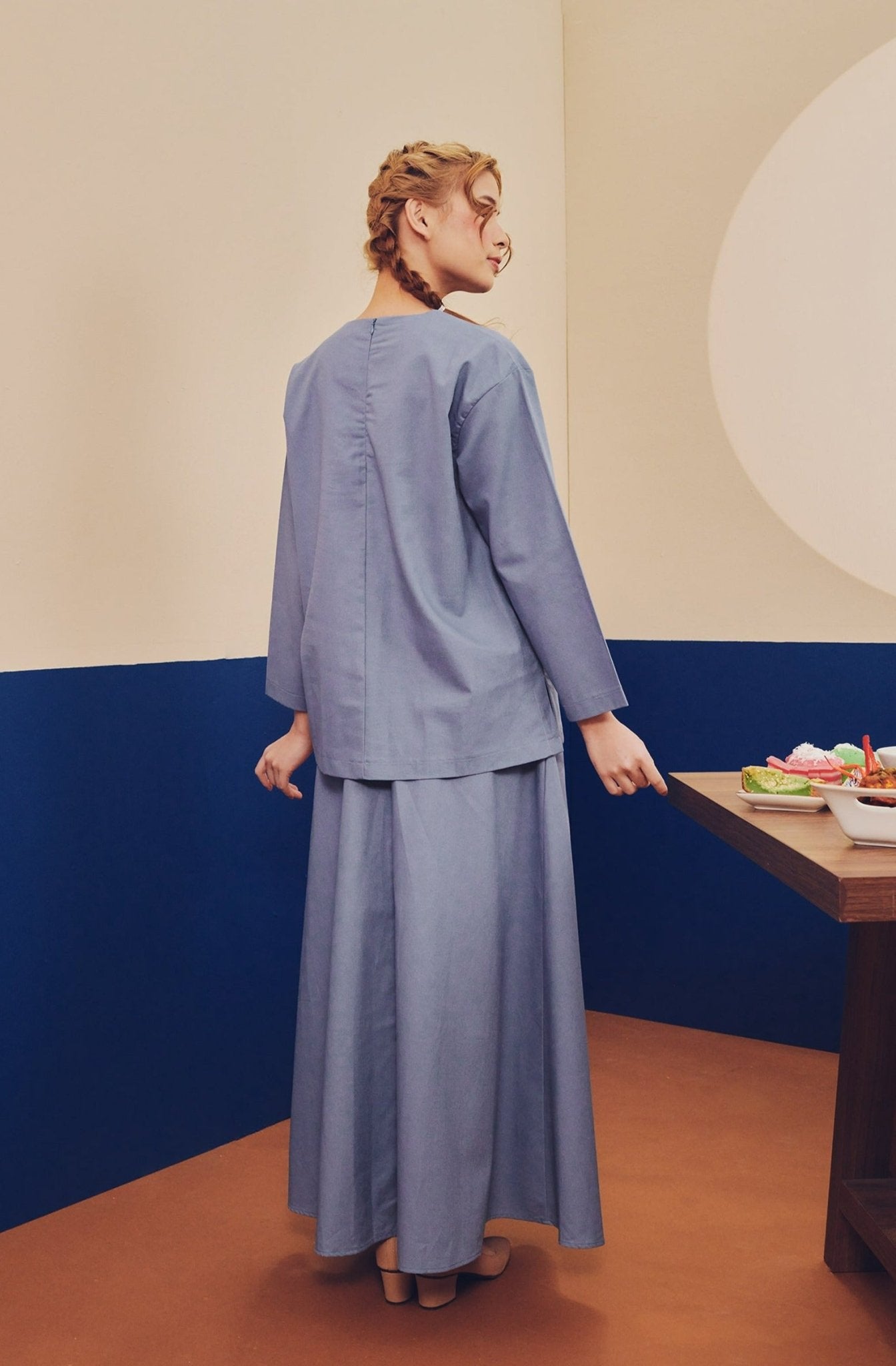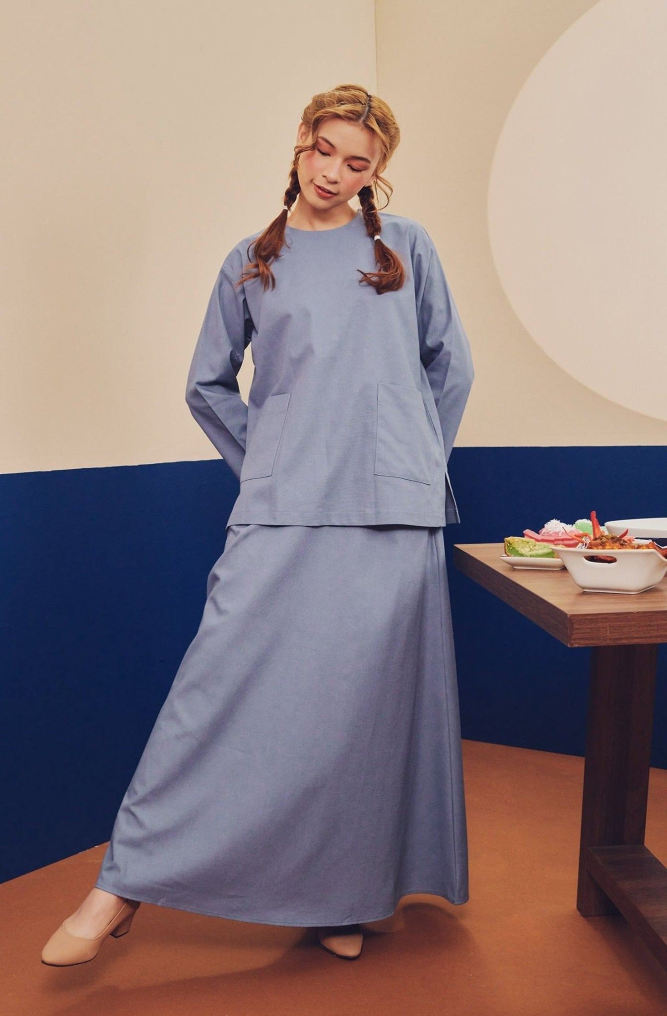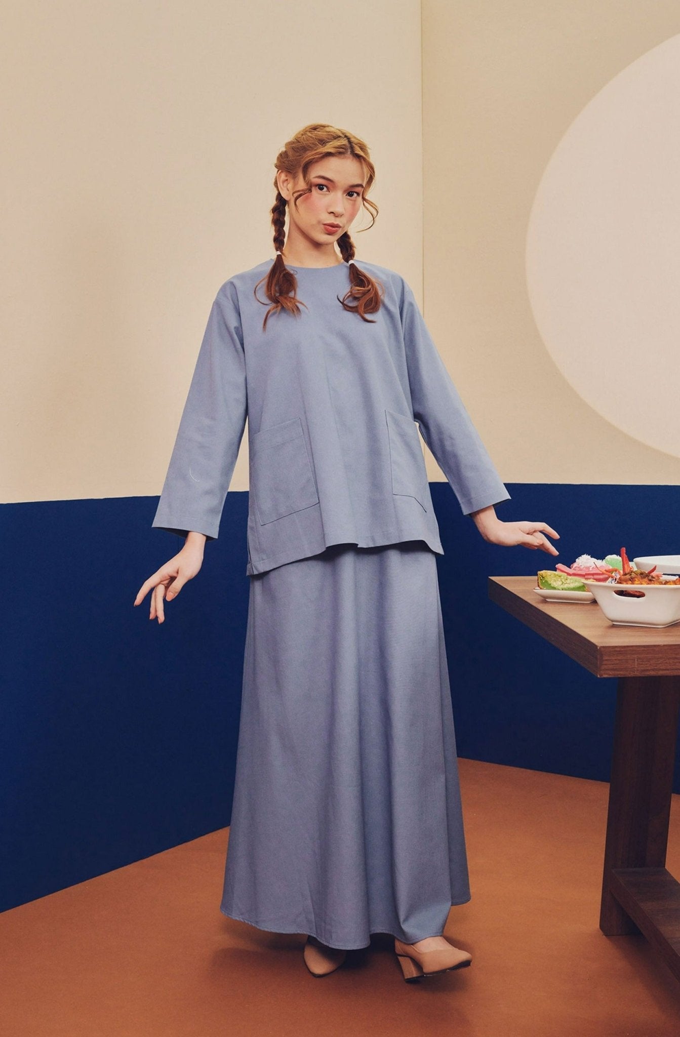 Women Pair Pockets Boxy Blouse Pigeon Blue